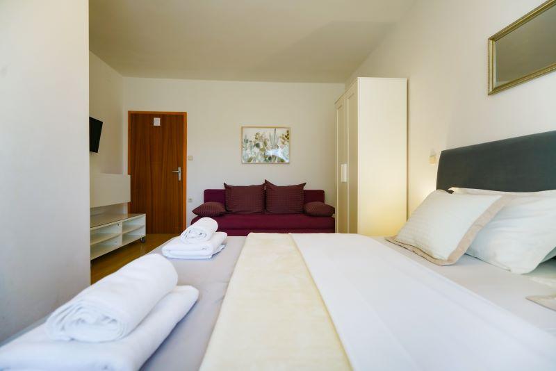 Auf Wunsch des Gastes stellen wir einen Liegeplatz im Meer und einen Parkplatz für einen Anhänger sowie ein Kinderbett oder einen Hochstuhl zur Verfügung. Nach vorheriger Anfrage können wir auch den Transport vom Flughafen zur Anlage oder auf Routen gemäß den Wünschen der Gäste organisieren. Gegen eine zusätzliche Gebühr besteht die Möglichkeit, in der Anlage Wäsche zu waschen. Wir können für Sie eine touristische Schiffsfahrt organisieren, ein Boot mieten und vieles mehr.
