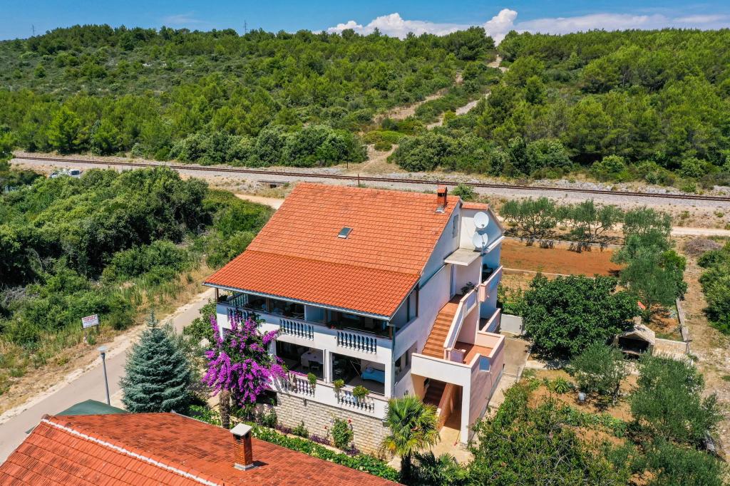 Die Panorama Capo Apartments befinden sich in einem ruhigen Teil von Sukošan. Das Zentrum und der Strand sind in ca. 10-15 Minuten zu Fuß erreichbar. Die Wohneinheiten befinden sich im 2. Stock und können einzeln als 3 separate Apartments oder als ganze Etage genutzt werden. Die Belegung der Unterkunftseinheit ist für maximal 8 Personen vorgesehen und hängt vom jeweiligen Zeitraum ab. Das Apartment A2+2 besteht aus einem Schlafzimmer mit Balkon und WC auf der Ostseite sowie einer Küche, einem Wohnzimmer und einer großen Terrasse auf der Südwestseite mit herrlichem Blick auf Sukošan, das Meer und die Inseln. Das Studio+1 ist für 3 Personen vorgesehen und besteht aus einem Zimmer mit 2 Betten, WC, Küche und einem Teil der Terrasse mit Blick auf das Meer und die Inseln. Das dritte ist ein kleineres Studio-Apartment mit Balkon für zwei Personen, nach Westen ausgerichtet und ideal für romantische Paare. Wenn Sie einen ruhigen Familienurlaub mit Erholung in der Natur und am Meer verbringen möchten, werden Sie sich hier wohlfühlen. Der Gastgeber steht Ihnen bei Bedarf gerne zur Verfügung. Herzlich willkommen, liebe Gäste!