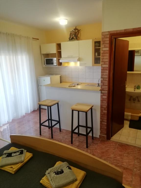 Freundliche Gastgeber, Bilder und Beschreibungen entsprechen die reale Situation. Wohnung sauber, ordentlich, ausgestattet, schöne Terrasse mit Blick auf das Meer, ideal für romantische Abendessen. Für Familien mit Kindern ist es notwendig, mit dem Auto zum Strand zu gehen, aber es ist kein Problem, da lohnen sie alle Strände in der Nähe der Stadt Korn, zu den wilden Stränden in der Umgebung zu erkunden. Warme Empfehlungen für den Urlaub!