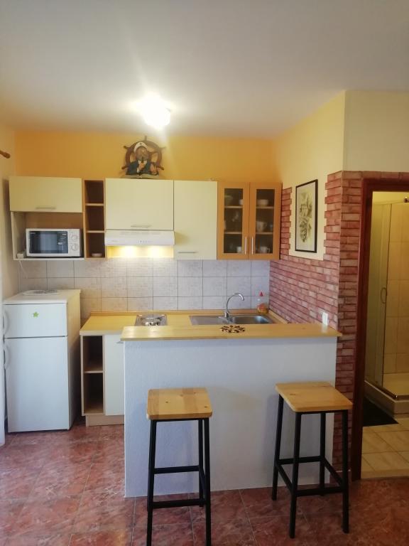 Alles, was Sie von der Unterkunft für einen angenehmen Aufenthalt am Meer brauchen, aber mehr als das ist eine schöne Terrasse mit Blick auf das Meer und die umliegenden Inseln. Wunderbare Natur und Ruhe, so wie es sich die meisten Menschen für einen Urlaub wünschen. Freundliche und zuvorkommende Besitzer, alles in allem ein positiver und angenehmer Urlaub und Aufenthalt in dieser Wohnung.