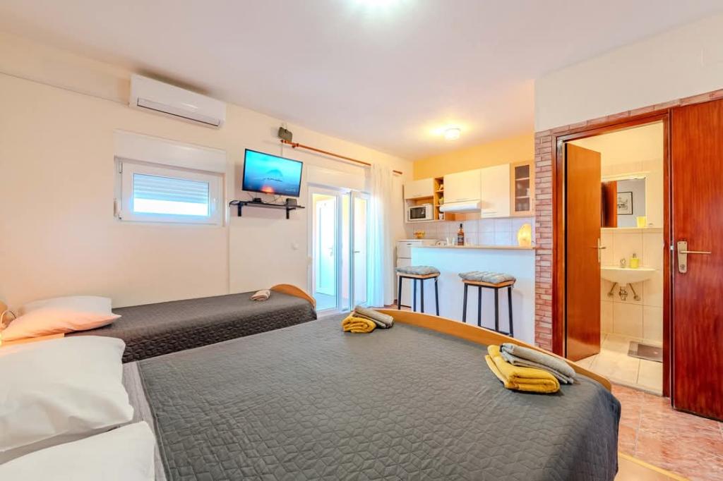 Alle Empfehlungen dieser Apartments vermitteln Ihnen das Gefühl, zu Hause zu sein. Der Ausblick von der Terrasse ist definitiv einer der schönsten, den wir je hatten – er bietet Ruhe und Frieden. Die Apartments sind sehr gepflegt und verfügen über alles, was man für einen perfekten Urlaub braucht. Und die Gastgeber Marin und Renata sind großherzige Menschen voller Liebe und Verständnis. Wir kommen auf jeden Fall wieder und können es jedem wärmstens empfehlen, der einen Traumurlaub sucht.