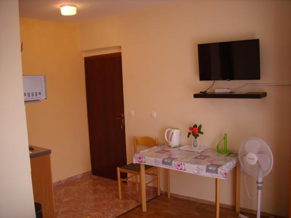 Verbrachte fantastische acht Tage mit seiner Frau. Die Gastgeber sind sehr herzlich. Die Wohnung ist sauber und ordentlich. Hausgemachtes Gemüse aus dem Garten. Etwas weiter vom Zentrum und vom Strand entfernt, aber es wird durch Stille und Nachtfrieden ersetzt. Vorschlag - Klimaanlage in die Wohneinheit und eine neue Matratze einführen (ich bin etwas schwerer, damit es härter passt). Ich empfehle sowohl für Paare als auch für Familien mit Kindern.