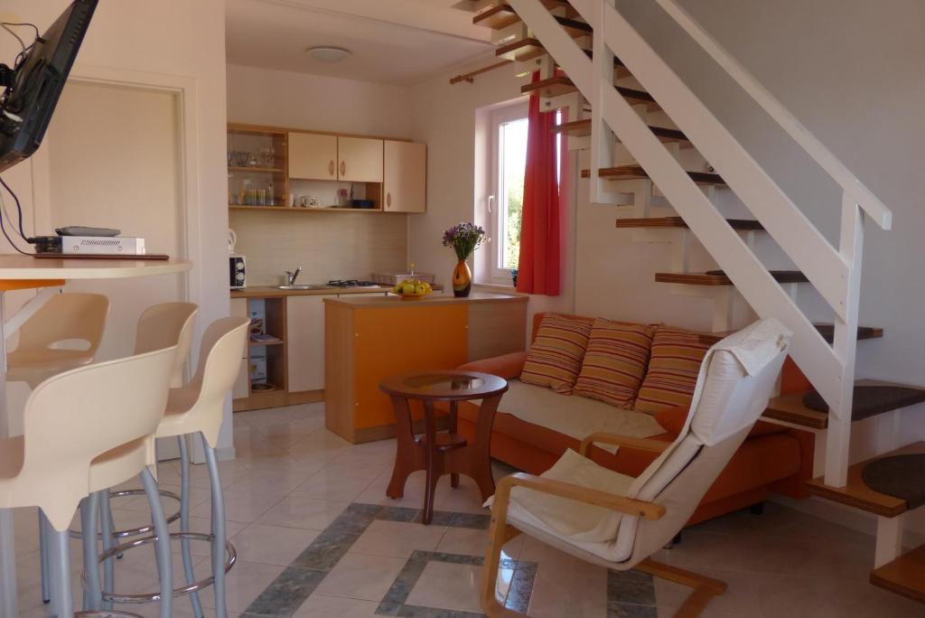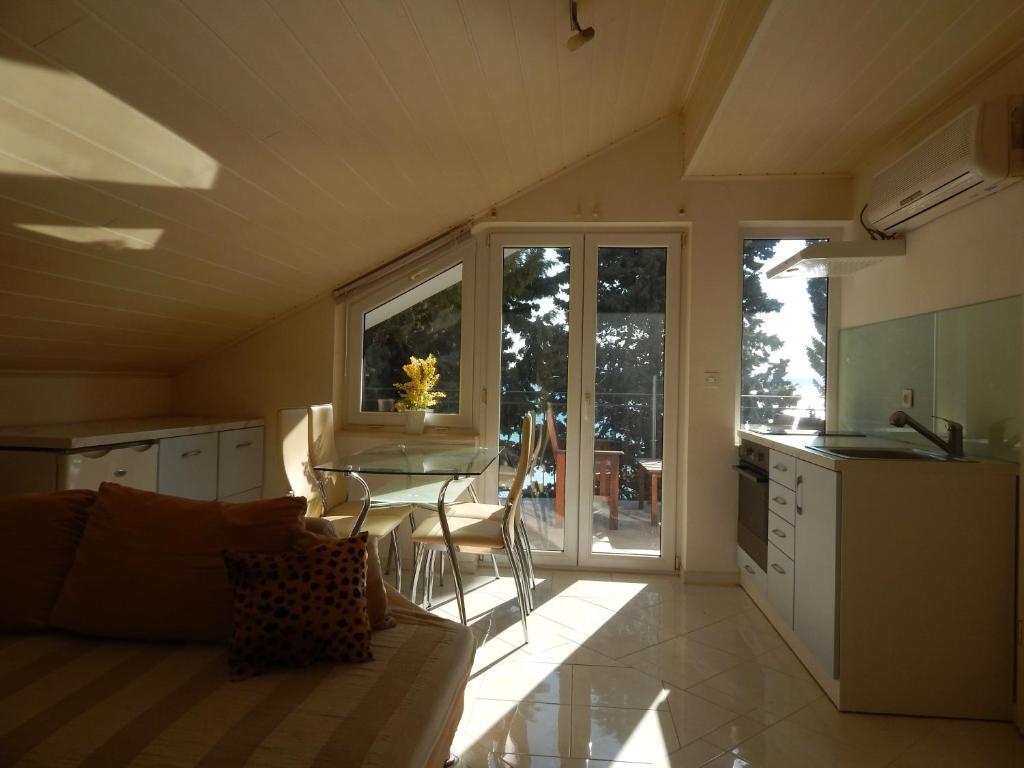 Die Apartments liegen direkt am Strand, nur 7 Meter vom Meer entfernt. Zwischen dem Haus und dem Strand verläuft eine ruhige Promenade, die autofrei ist. Alle Terrassen bieten einen direkten Meerblick.