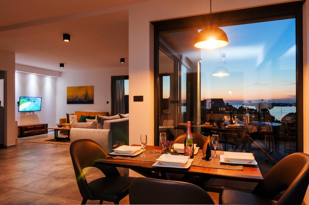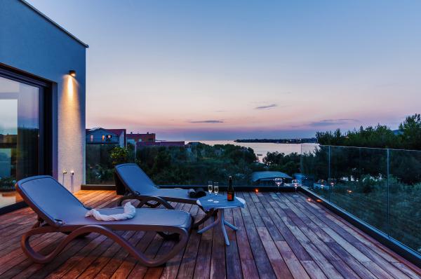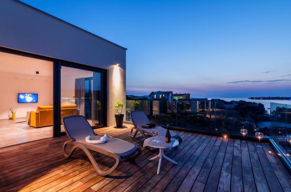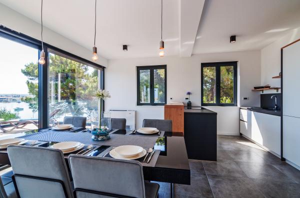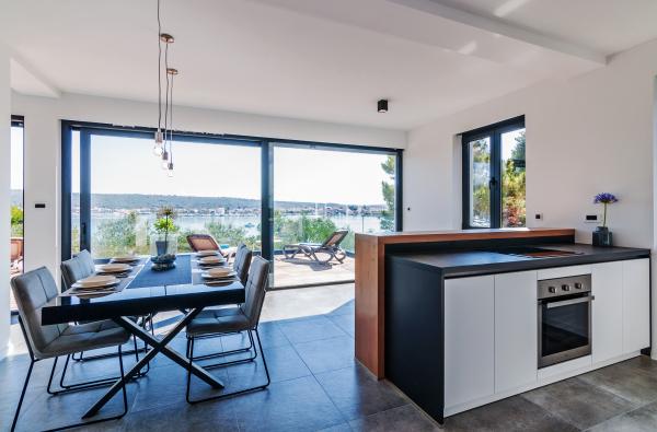 Vila Punta Aqua ist luxuriös in einem modernen und funktionalen Stil eingerichtet, ideal zum Genießen im Schatten und im Meer mit einem schönen sandigen Boden. Es ist nur ein paar Meter vom Strand entfernt. Es ist auf 3 Etagen verteilt. m Erdgeschoss befindet sich eine Dreizimmerwohnung mit 3 Badezimmern und einer zusätzlichen Toilette und einer großen Terrasse von 35m2. Auf der ersten Etage befindet sich ein Apartment mit 2 Schlafzimmern, 2 Bädern und einem zusätzlichen WC. Der große Balkon von 37m2 ist ideal zum Entspannen und um den schönen Meerblick zu genießen. Auf der zweiten Etage befindet sich eine luxuriöse Wohnung mit einem Schlafzimmer mit einem Badezimmer und einem zusätzlichen WC. Die Wohnung verfügt über einen wunderschönen geräumigen Balkon mit Meerblick. Diese Villa ist ideal zum Entspannen und Genießen in einem wunderschönen Meerblick.