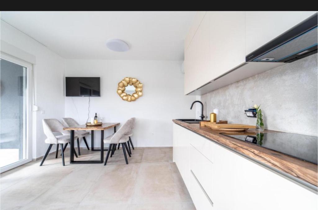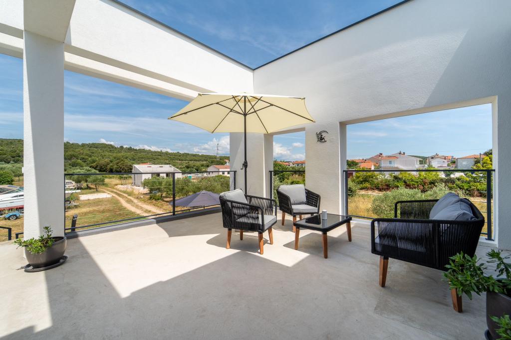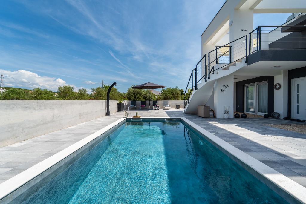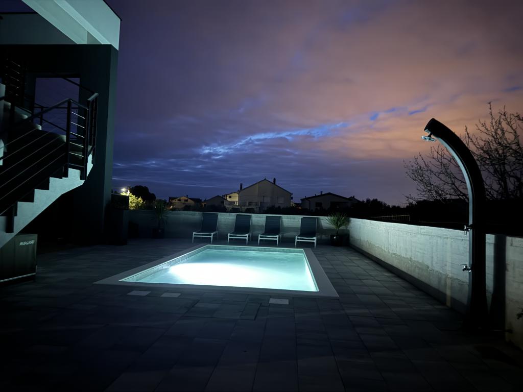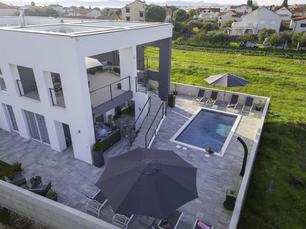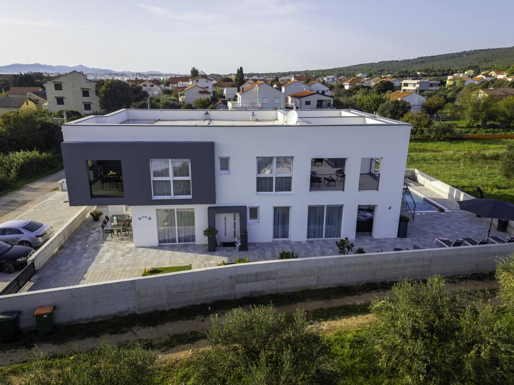 Dieses schöne Haus zur Miete befindet sich in der ruhigen und malerischen Umgebung von Sukošan und ist ideal für Familien und Paare, die einen Urlaub verbringen möchten. Das Apartment bietet geräumige und helle Zimmer, ein modern eingerichtetes Wohnzimmer, eine voll ausgestattete Küche sowie einen komfortablen Balkon und eine große Terrasse mit Blick in die Natur. Darüber hinaus bieten wir unseren Gästen, die in der Saison I für die Saison 2026 kommen, einen beheizten Swimmingpool. Wir möchten unseren lieben Gästen noch mehr Entspannung bieten - deshalb freuen wir uns, Ihnen mitteilen zu können, dass wir jetzt eine Massagewanne (Jacuzzi) anbieten! In der Nähe befinden sich Strände, Restaurants und Geschäfte, sodass dieser Ort ideal ist, um lokale Sehenswürdigkeiten zu erkunden. Alle notwendigen Annehmlichkeiten für einen angenehmen Aufenthalt sind vorhanden, darunter WLAN, Klimaanlage und Parkplatz. Kommen Sie und genießen Sie einen unvergesslichen Urlaub!