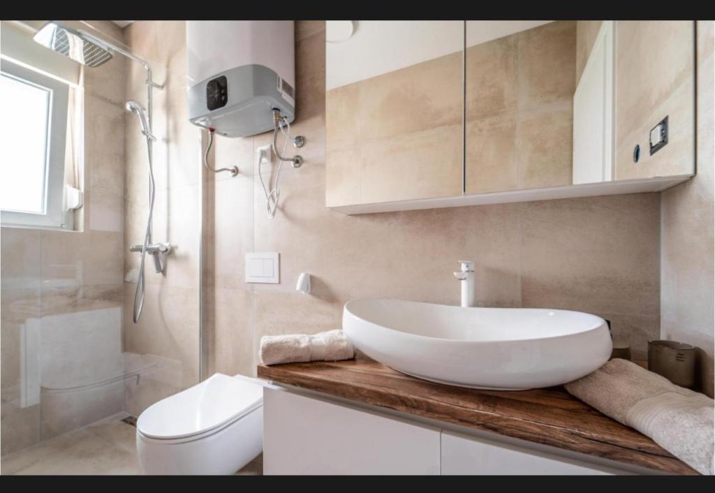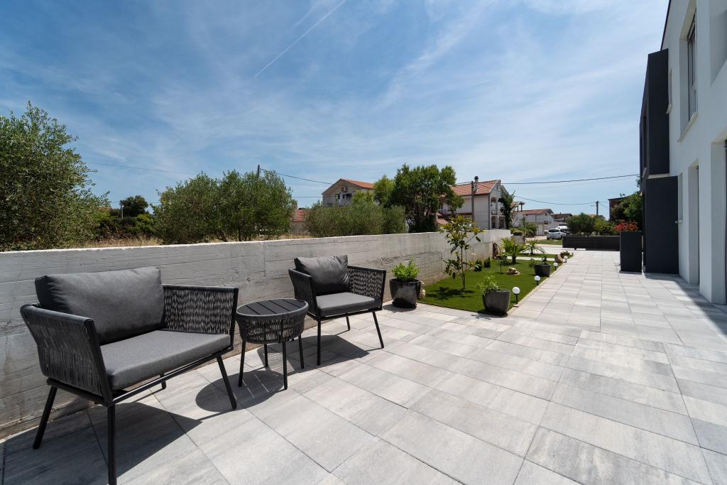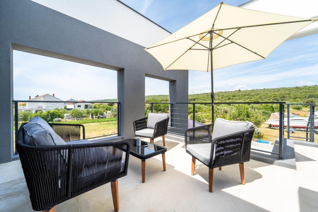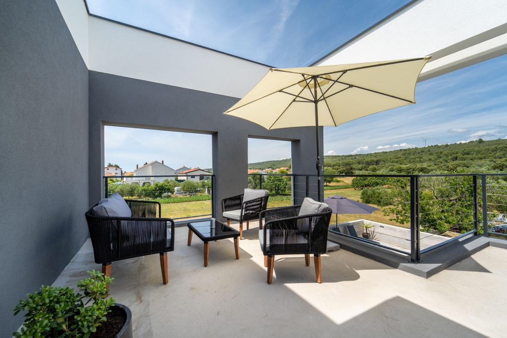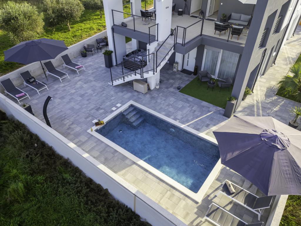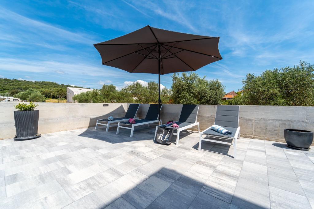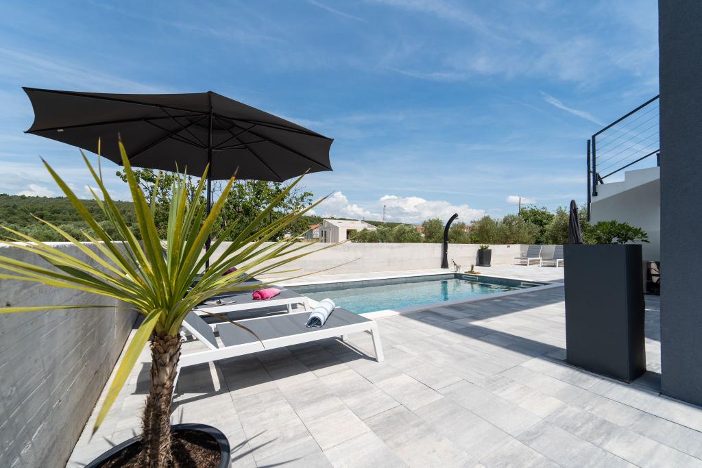 Dieses schöne Haus zur Miete befindet sich in der ruhigen und malerischen Umgebung von Sukošan und ist ideal für Familien und Paare, die einen Urlaub verbringen möchten. Das Apartment bietet geräumige und helle Zimmer, ein modern eingerichtetes Wohnzimmer, eine voll ausgestattete Küche sowie einen komfortablen Balkon und eine große Terrasse mit Blick in die Natur. Darüber hinaus bieten wir unseren Gästen, die in der Saison I für die Saison 2026 kommen, einen beheizten Swimmingpool. Wir möchten unseren lieben Gästen noch mehr Entspannung bieten - deshalb freuen wir uns, Ihnen mitteilen zu können, dass wir jetzt eine Massagewanne (Jacuzzi) anbieten! In der Nähe befinden sich Strände, Restaurants und Geschäfte, sodass dieser Ort ideal ist, um lokale Sehenswürdigkeiten zu erkunden. Alle notwendigen Annehmlichkeiten für einen angenehmen Aufenthalt sind vorhanden, darunter WLAN, Klimaanlage und Parkplatz. Kommen Sie und genießen Sie einen unvergesslichen Urlaub!
