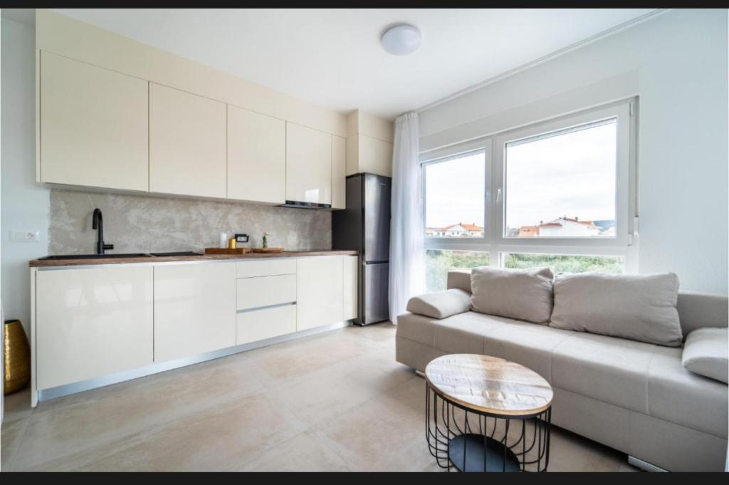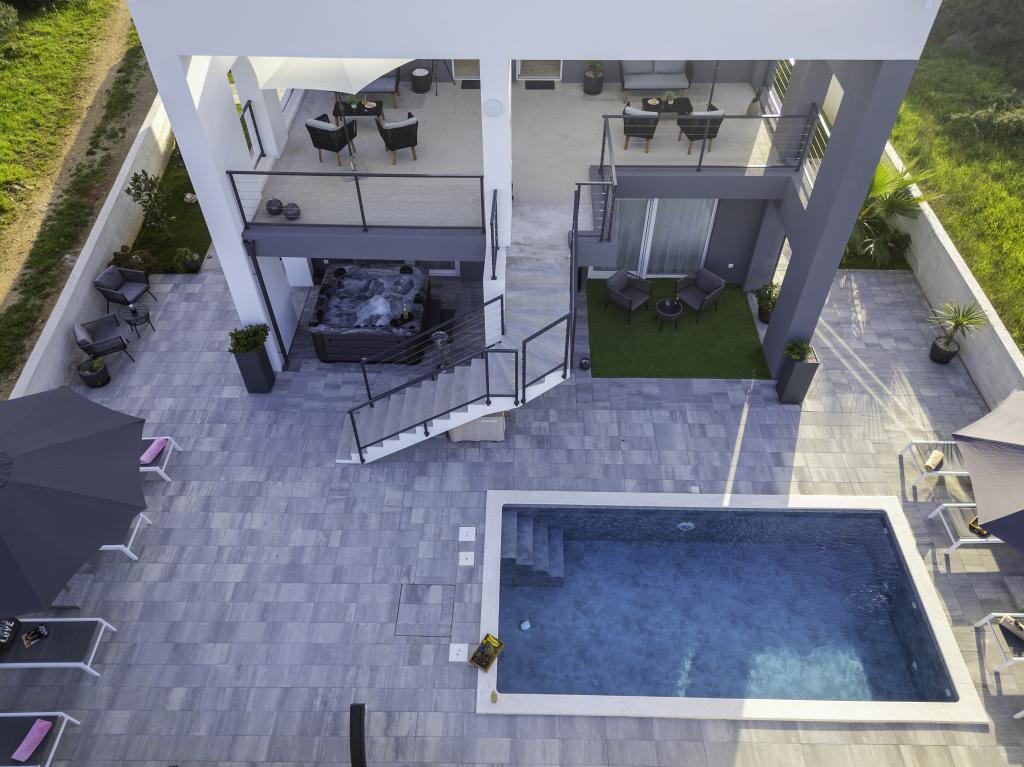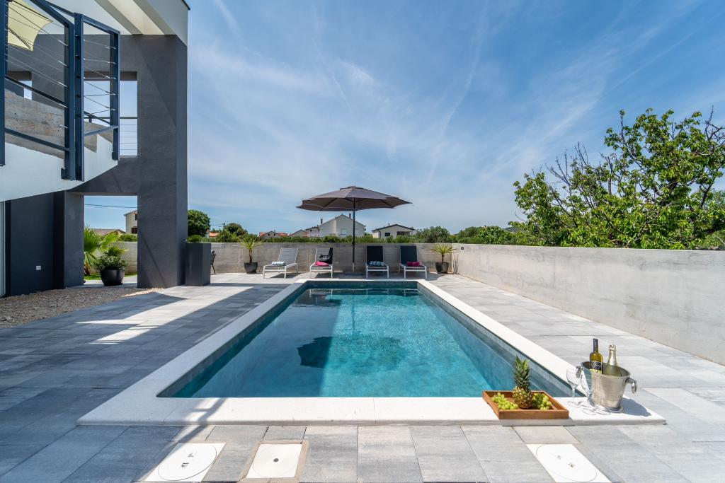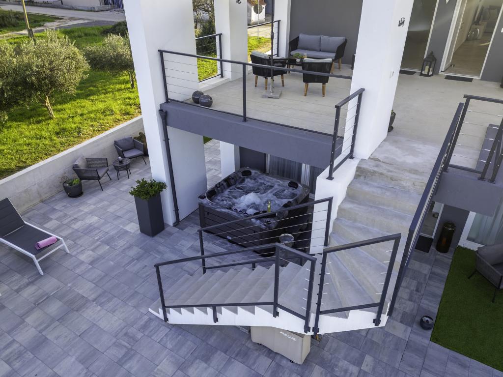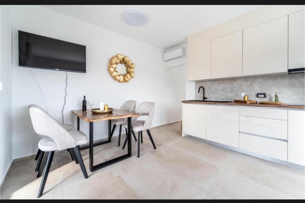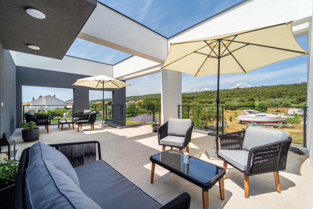 Dieses schöne Haus zur Miete befindet sich in der ruhigen und malerischen Umgebung von Sukošan und ist ideal für Familien und Paare, die einen Urlaub verbringen möchten. Das Apartment bietet geräumige und helle Zimmer, ein modern eingerichtetes Wohnzimmer, eine voll ausgestattete Küche sowie einen komfortablen Balkon und eine große Terrasse mit Blick in die Natur. Darüber hinaus bieten wir unseren Gästen, die in der Saison I für die Saison 2026 kommen, einen beheizten Swimmingpool. Wir möchten unseren lieben Gästen noch mehr Entspannung bieten - deshalb freuen wir uns, Ihnen mitteilen zu können, dass wir jetzt eine Massagewanne (Jacuzzi) anbieten! In der Nähe befinden sich Strände, Restaurants und Geschäfte, sodass dieser Ort ideal ist, um lokale Sehenswürdigkeiten zu erkunden. Alle notwendigen Annehmlichkeiten für einen angenehmen Aufenthalt sind vorhanden, darunter WLAN, Klimaanlage und Parkplatz. Kommen Sie und genießen Sie einen unvergesslichen Urlaub!