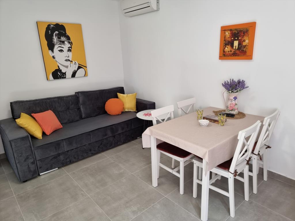 Apartments in bester Lage im Zentrum von Supetar, 100 Meter vom Strand und der Promenade (weniger als 5 Minuten Fußweg). Im Erdgeschoss, mit einer Terrasse und einem großen Garten. Vollständig möbliert.