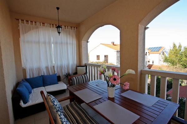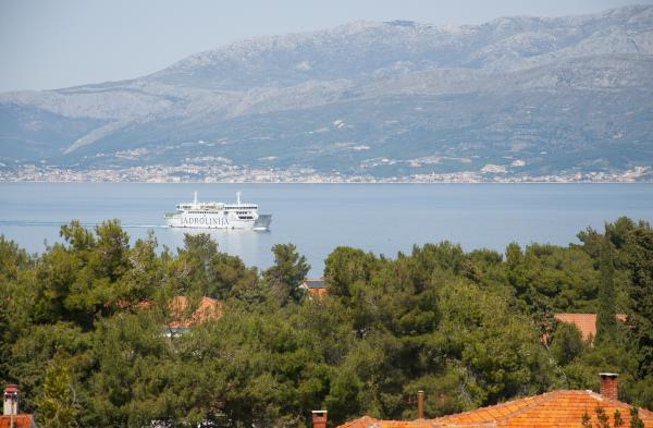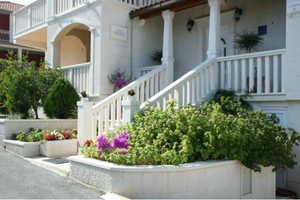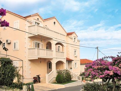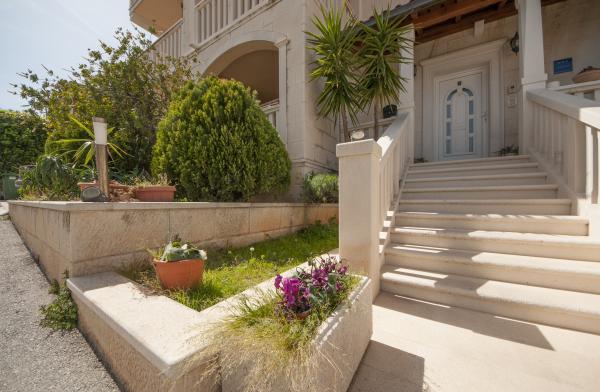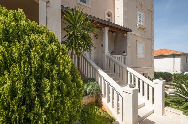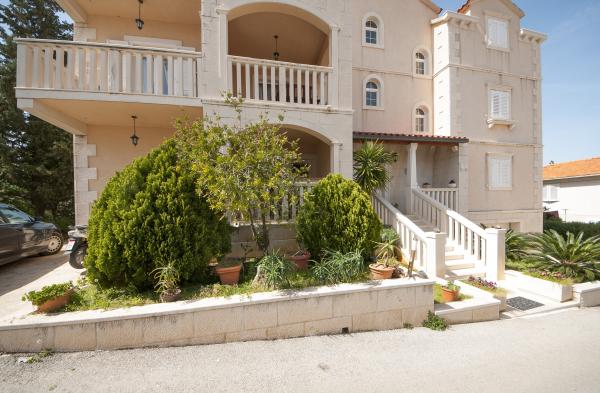 Das neue Haus Villa Maria mit insgesamt vier Apartments befindet sich im Wohn- und Erholungsgebiet Supetar, in unmittelbarer Nähe zum Zentrum mit seinen vielfältigen Sport- und Freizeitmöglichkeiten. Tennisplätze sind 150 m, Einkaufsmöglichkeiten 200 m, ein Kiesstrand und Restaurants ca. 350 m und das Stadtzentrum ca. 800 m entfernt. Das ca. 600 m² große Grundstück ist teilweise mit einer Steinmauer umzäunt und begrünt. Parkplätze stehen allen Gästen zur Verfügung. Jedes Apartment verfügt über eine überdachte Terrasse oder einen Balkon mit Gartenmöbeln, einige bieten Meerblick.