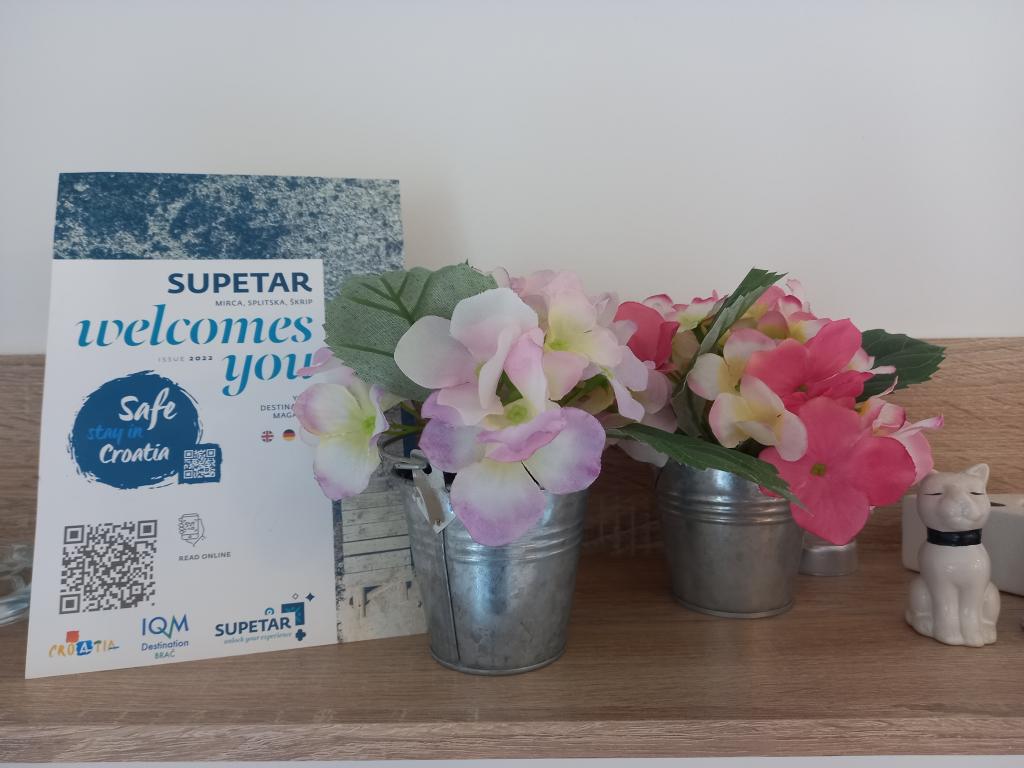 Die Apartments befinden sich in einem ruhigen Teil von Supetar. Sie sind nur 5 bis 10 Gehminuten von allen Annehmlichkeiten des Ortes entfernt (Restaurants, Strände, Geschäfte, Tennisplätze, Zentrum usw.). Die Apartments bestehen aus zwei Schlafzimmern, einem Badezimmer, einer Wohnküche, einem Wohnzimmer und einem überdachten Balkon mit Meerblick. Beide Apartments verfügen über Fernseher, WLAN, Klimaanlage und einen sicheren Parkplatz.