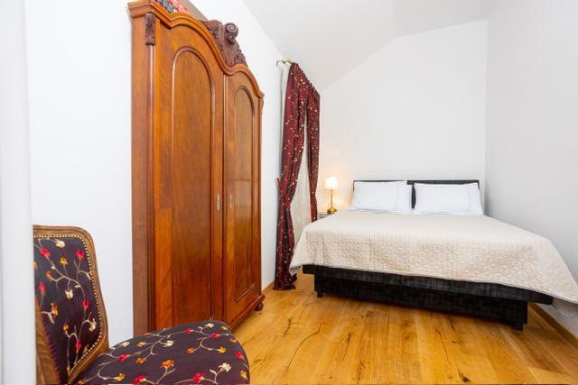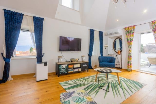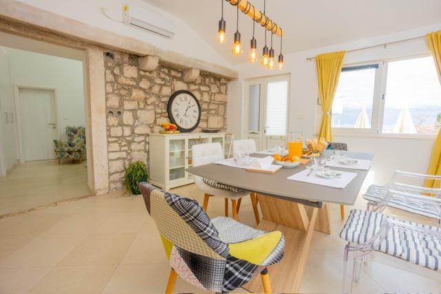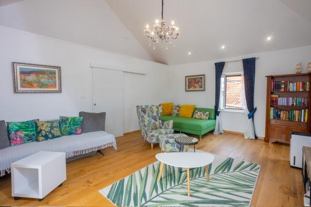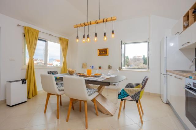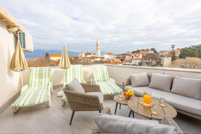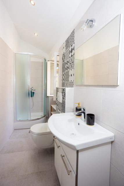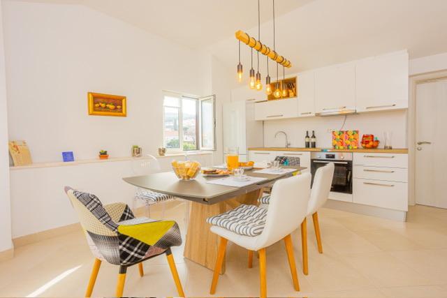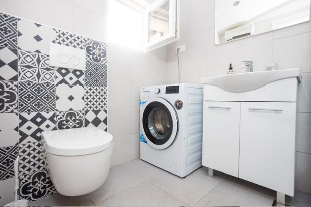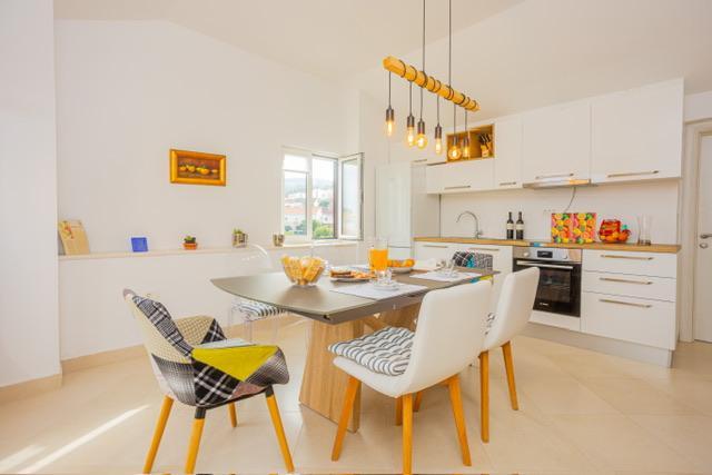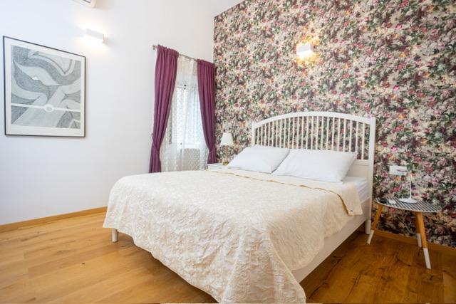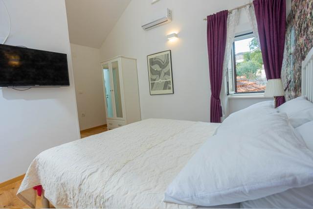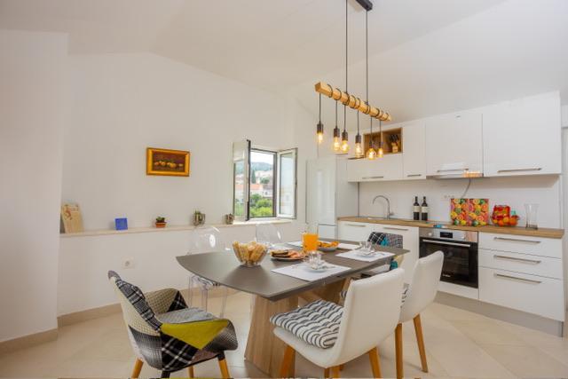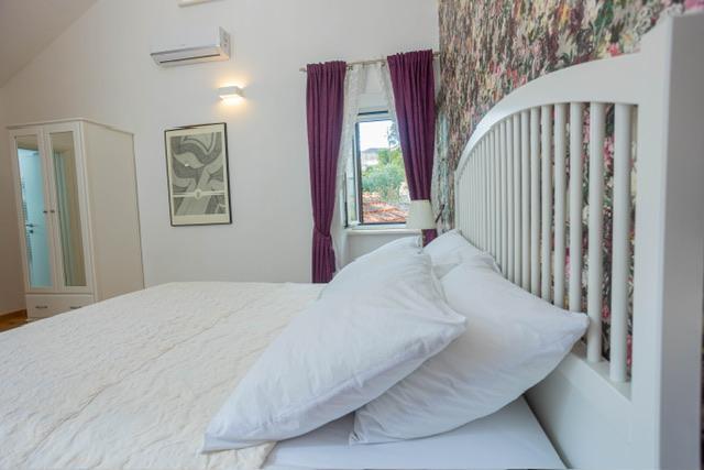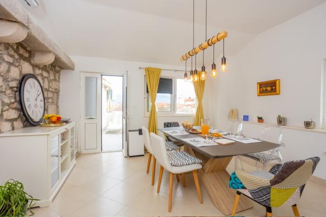 Die Wohnung befindet sich im Zentrum von Supetar, 100 Meter vom Ufer entfernt, in der Nähe aller Sehenswürdigkeiten der Stadt und 300 Meter vom ersten einer Reihe von Stadtstränden entfernt. Die Wohnung ist 100m2 groß: zwei Schlafzimmer mit jeweils einem Doppelbett (160x200), und jedes dieser Zimmer verfügt über ein voll ausgestattetes Badezimmer mit Dusche; Die Wohnung verfügt außerdem über ein großes Wohnzimmer mit 2 Zustellbetten (120x200 und 160x200), das auch über ein eigenes Badezimmer verfügt, dann über eine Küche und eine schöne Terrasse mit Blick auf die Stadt und den Hafen. Die Wohnung ist mit einer Waschmaschine, einem Geschirrspüler, 3 Klimaanlagen, 2 Fernsehern, WLAN und allen anderen Geräten ausgestattet, die Sie brauchen, um sich wie zu Hause zu fühlen und einen schönen und angenehmen Urlaub zu verbringen. Gratis Parkplätze. Zu Beginn des 20. Jahrhunderts lebte der kroatische expressionistische Maler Ignjata Job und schuf seine erfolgreichsten Werke in unserem Haus, im Bereich der heutigen Wohnung. Die Wohnung wurde im Jahr 2021 renoviert.