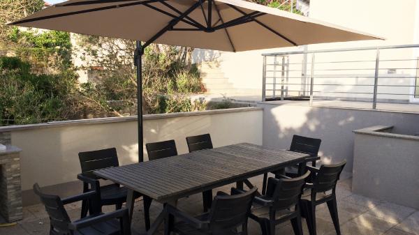 Das Aparthouse Penelope ist ein Haus mit 10 Apartments. Das Haus liegt in einem ruhigen Ort namens Supetarska Draga, nur 5 km von der Altstadt von Rab (5-10 Minuten mit dem Auto) entfernt. Ein idealer Ort für Familien, die einen erholsamen Urlaub am Meer verbringen möchten. Vor der Wohnung befindet sich eine große sonnige Terrasse (180m2) mit Blick auf das Meer und die Inseln. Vor der Wohnung (10m) liegt der erste Strand! Jede Wohnung verfügt über ein Zimmer, eine Küche und ein WC. Es ist mit TV und Klimaanlage ausgestattet. Allen unseren Gästen steht ein Grill zur Verfügung sowie eine Waschmaschine (nach Absprache). In der Nähe des Hauses (100 m) gibt es einen öffentlichen Parkplatz. Restaurants und Cafés befinden sich 30 m von den Apartments entfernt. In unserem Haus genießen Sie eine große ausgestattete Terrasse mit Meerblick, und wenn Sie sich erfrischen möchten, sind Sie ein paar Schritte und schon sind Sie im Meer!