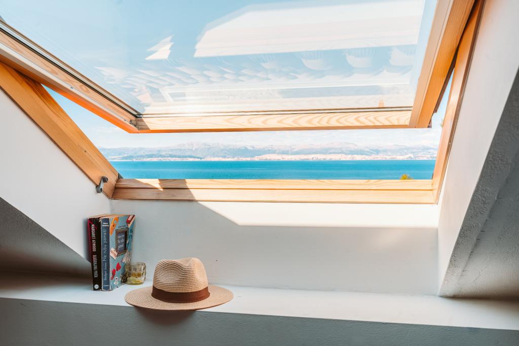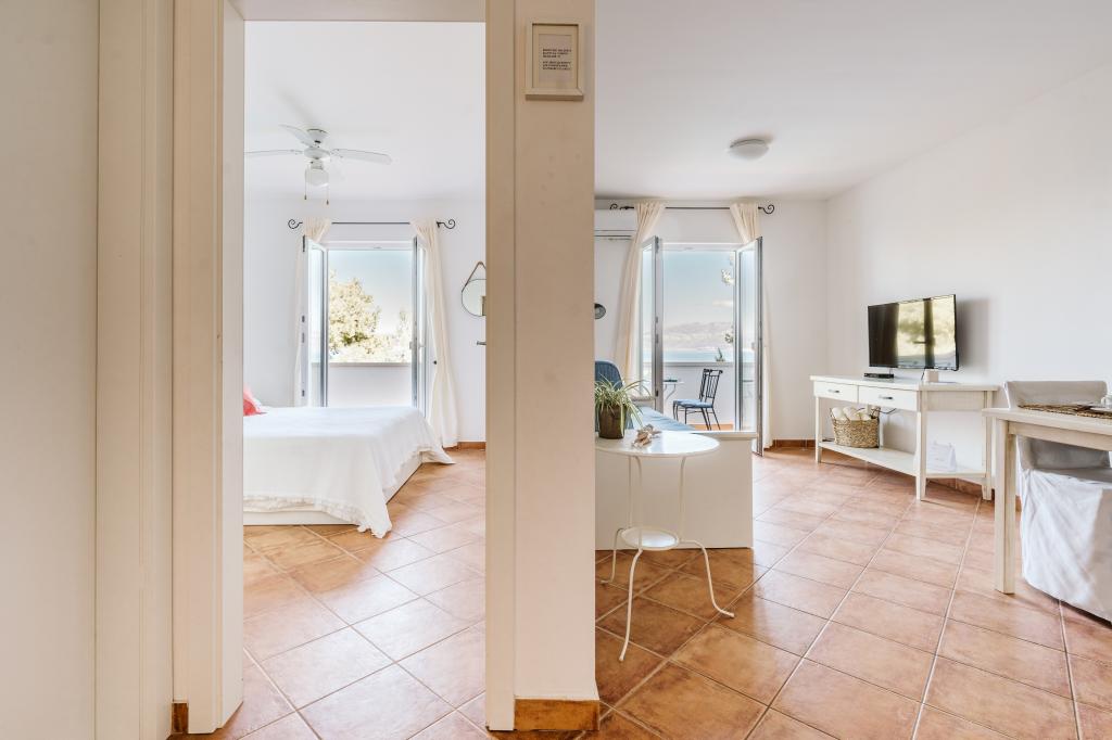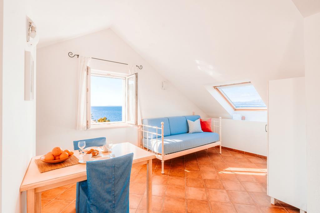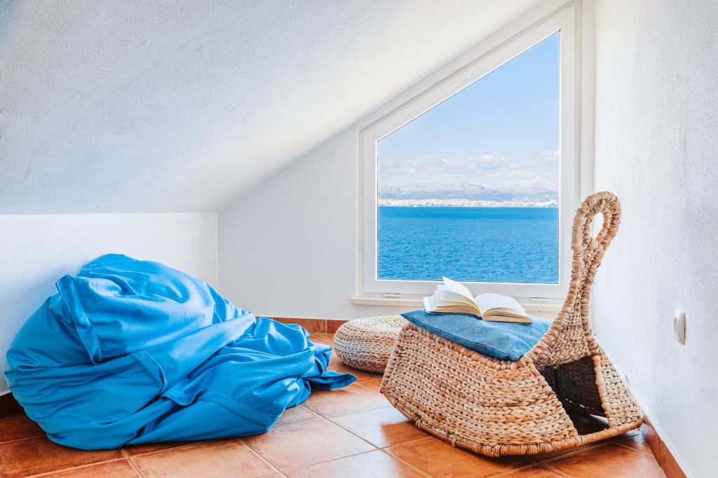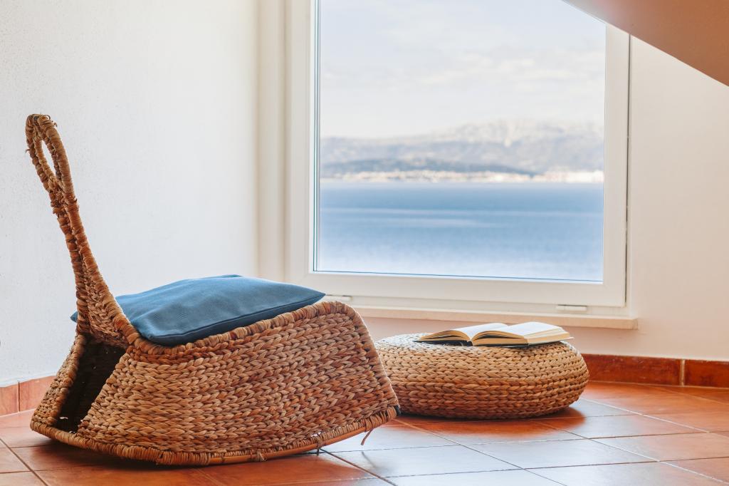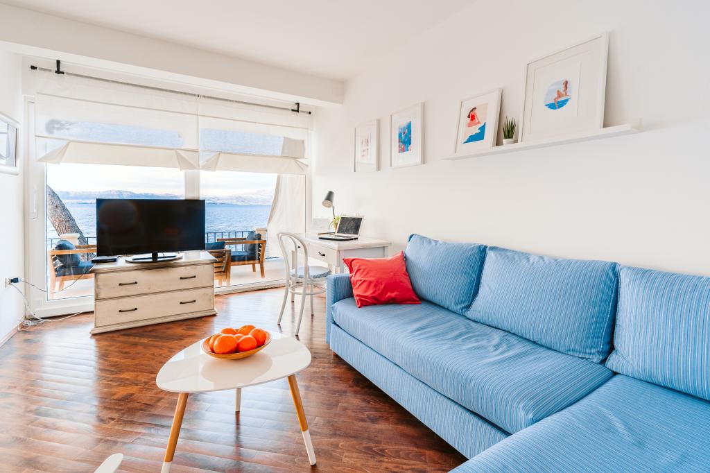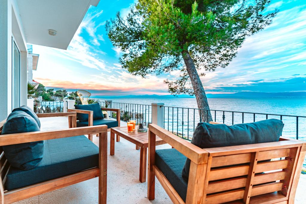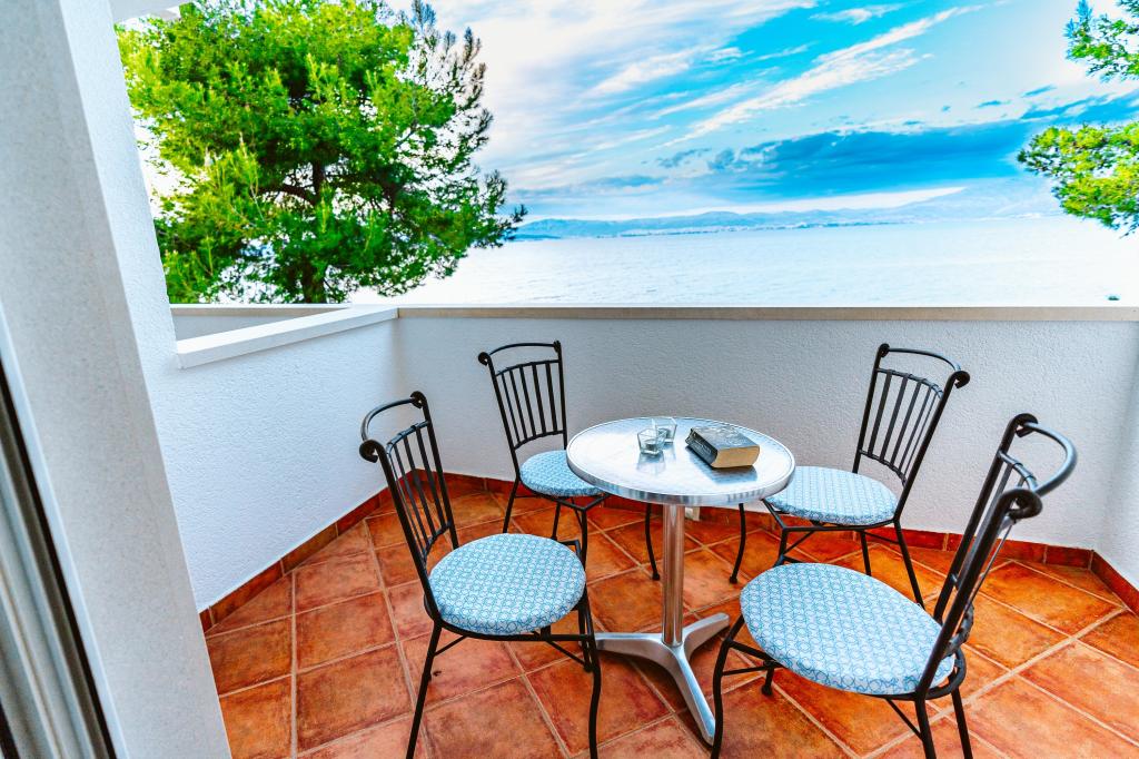 Apartment mit spektakulärem Blick auf das Meer, einen eigenen Eingang und Garten. Wake up, um den Geruch von Lavendel und Rosmarin und schlafen auf der Terrasse mit dem Rauschen des Meeres und dem Blick auf die glitzernden Lichter von Split an der Küste.
