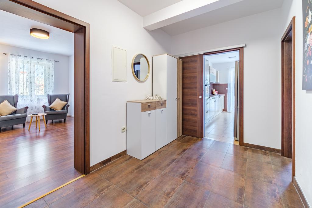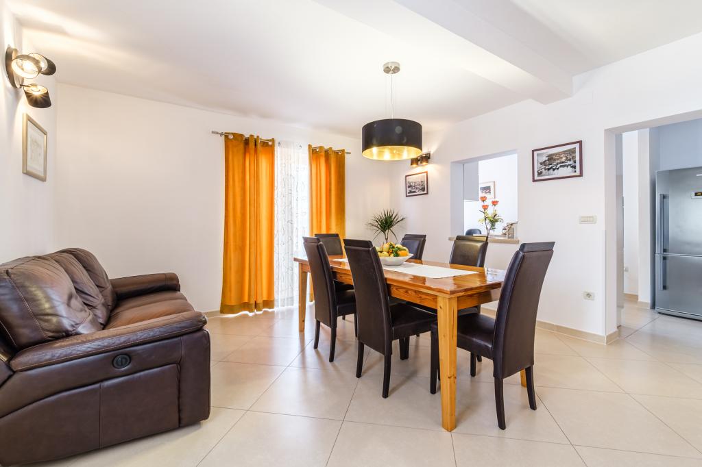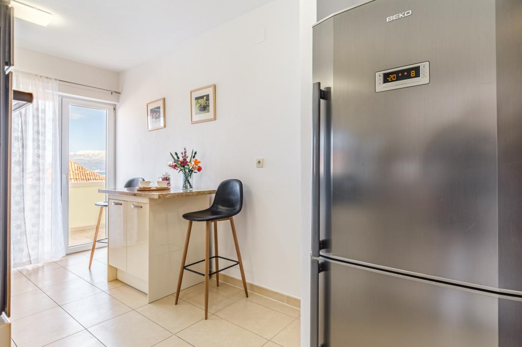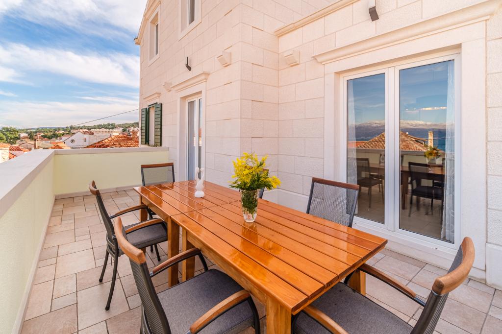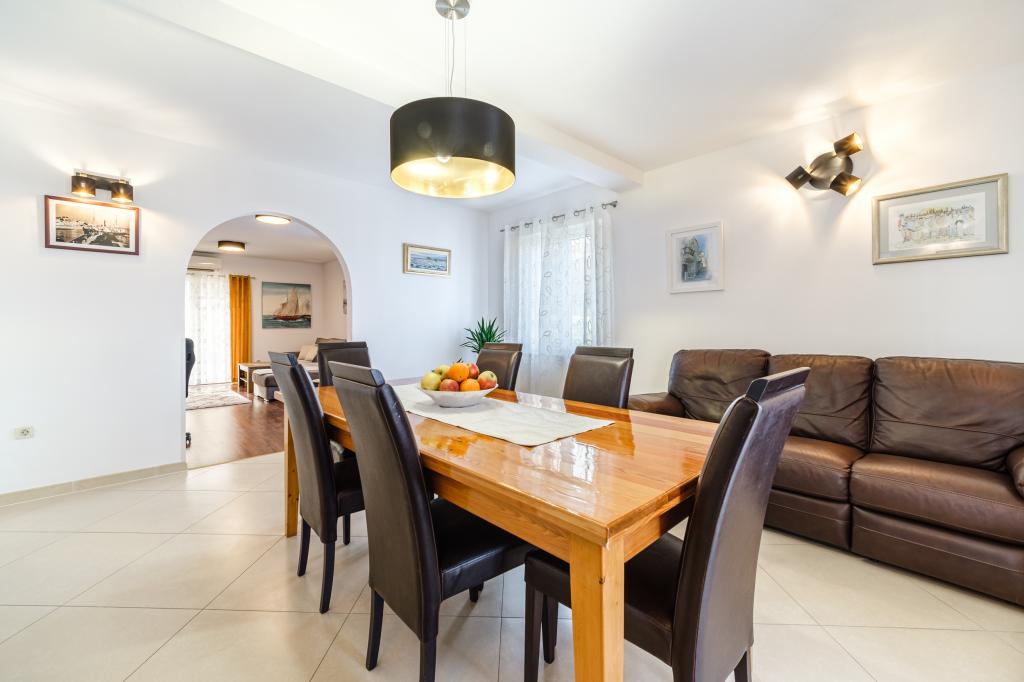 Vollständig und modern ausgestattete Wohnung in einem Luxushaus in einer ruhigen Gegend von Sutivan, direkt im Stadtzentrum, in zweiter Reihe zum Meer. Die Anlage ist 2 Gehminuten vom ersten Strand entfernt und befindet sich direkt im Stadtzentrum. Die Anlage bietet Unterkunftsmöglichkeiten in einem Apartment. Die Wohnung bietet Platz für 6 Personen, bei Bedarf können zwei weitere Personen auf einem Zustellbett übernachten. Zur Wohnung gehört ein Stellplatz in der Garage. Die Anlage bietet einen Grillservice mit speziell ausgestattetem Essbereich sowie eine Bar und ein Spülbecken. Zur Wohnung gehören zwei Terrassen, eine davon ist 20 m2 groß mit Meerblick, die andere auf der Südseite ist 8,5 m2 groß. Die Unterkunft verfügt über eine Waschküche. Die Wohnung verfügt über 3 Schlafzimmer, 2 Badezimmer und eine zusätzliche Toilette. Das Wohnzimmer und das Esszimmer bilden einen 50 m2 großen Raum.