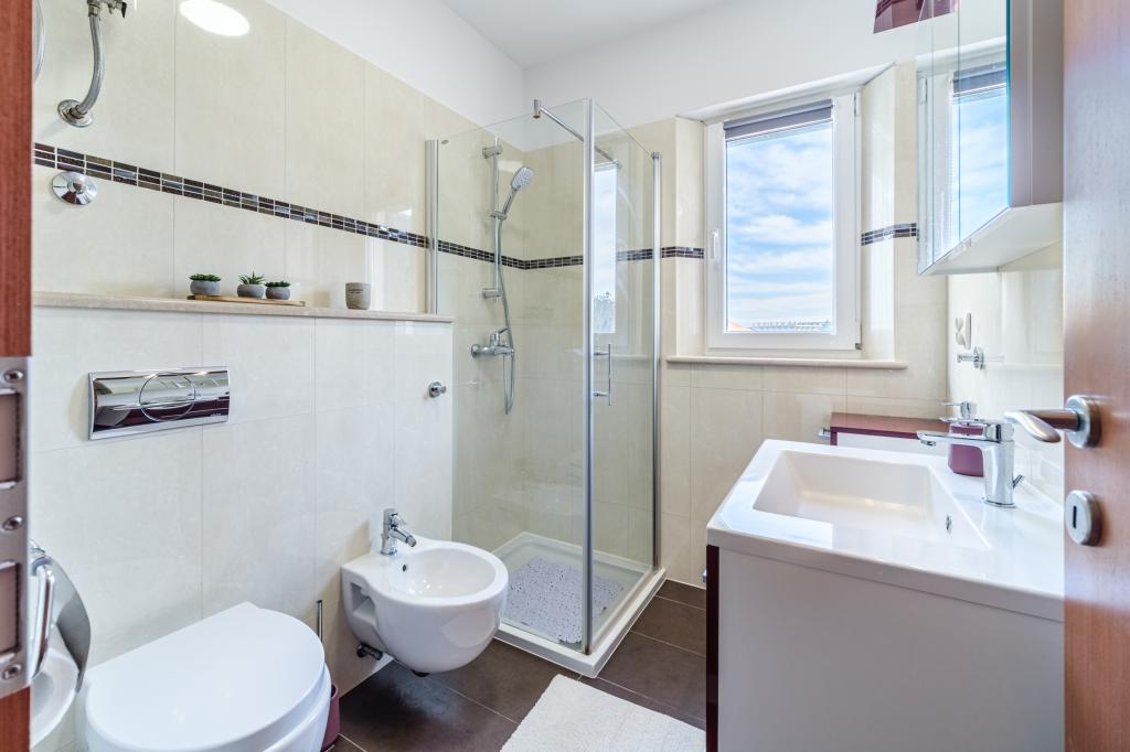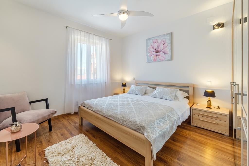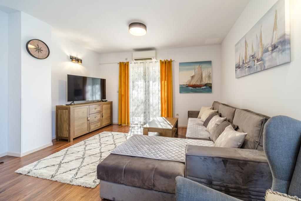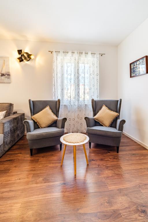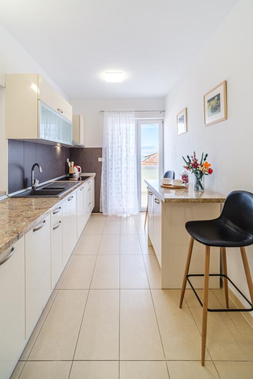 Vollständig und modern ausgestattete Wohnung in einem Luxushaus in einer ruhigen Gegend von Sutivan, direkt im Stadtzentrum, in zweiter Reihe zum Meer. Die Anlage ist 2 Gehminuten vom ersten Strand entfernt und befindet sich direkt im Stadtzentrum. Die Anlage bietet Unterkunftsmöglichkeiten in einem Apartment. Die Wohnung bietet Platz für 6 Personen, bei Bedarf können zwei weitere Personen auf einem Zustellbett übernachten. Zur Wohnung gehört ein Stellplatz in der Garage. Die Anlage bietet einen Grillservice mit speziell ausgestattetem Essbereich sowie eine Bar und ein Spülbecken. Zur Wohnung gehören zwei Terrassen, eine davon ist 20 m2 groß mit Meerblick, die andere auf der Südseite ist 8,5 m2 groß. Die Unterkunft verfügt über eine Waschküche. Die Wohnung verfügt über 3 Schlafzimmer, 2 Badezimmer und eine zusätzliche Toilette. Das Wohnzimmer und das Esszimmer bilden einen 50 m2 großen Raum.