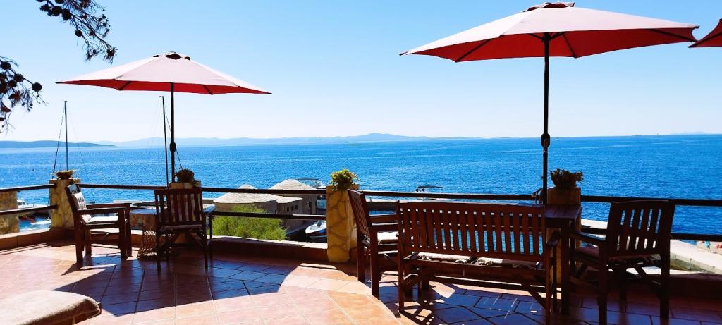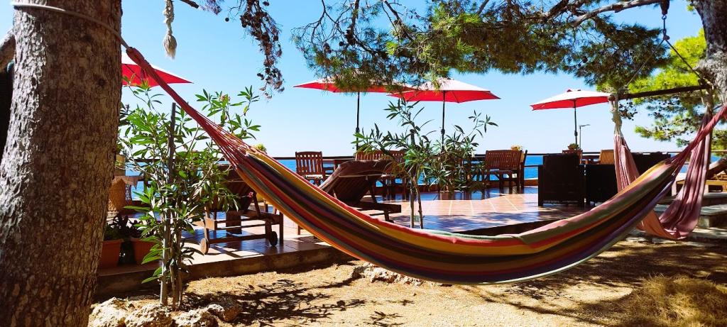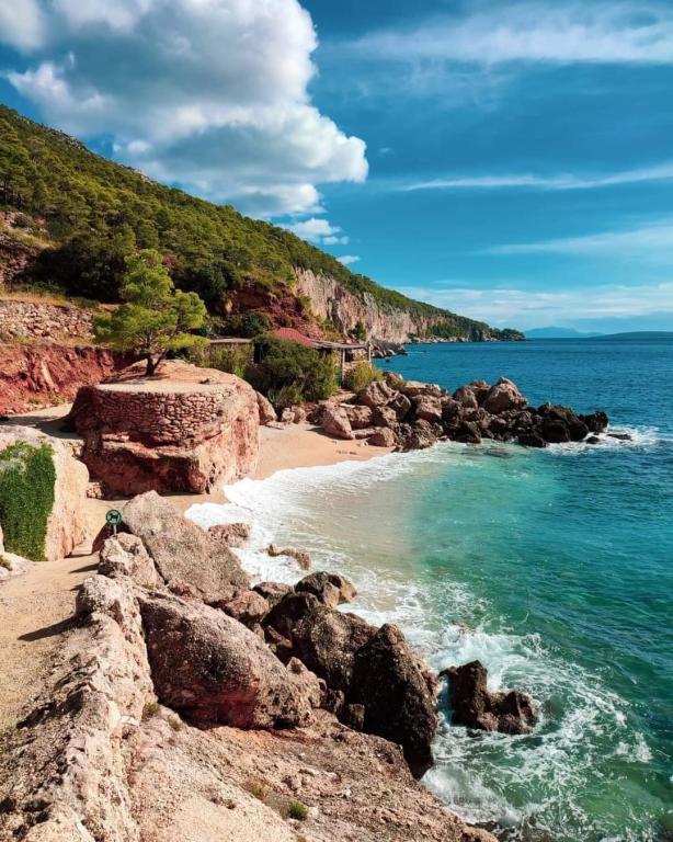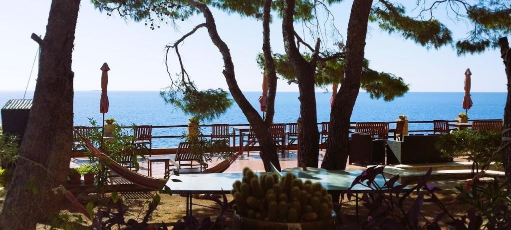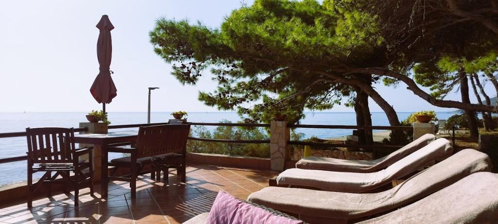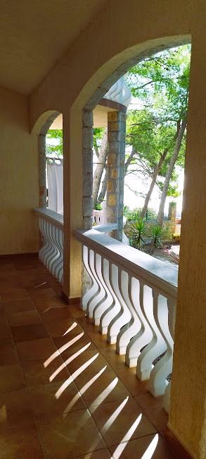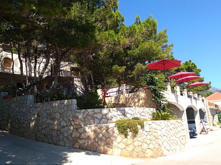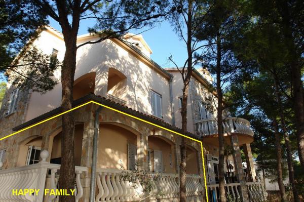 Unsere Villa liegt direkt am Meer (ca. 30 m) und ist über eine Asphaltstraße zu erreichen, die in der Nähe endet. Die Villa liegt freistehend in einem Pinienwald auf einem ca. Das Grundstück hat eine Fläche von ca. 900 m², am Fuße davon befindet sich eine Garage für sechs Autos, das Gebäude ist an die städtische Wasserversorgung und Drehstrom angeschlossen und befindet sich in Reichweite von GSM, Festnetztelefon und kostenlosem Highspeed-WLAN. Zwischen den Kiefern gibt es kaskadenförmige Plateaus für Tischtennis und andere Aktivitäten. Im Garten gibt es einen Grill zur kostenlosen Nutzung und zahlreiche Sonnenliegen und Schaukeln sowie Pfadfinder-/Seemannsnetze, Schach, Karten... jedes Zimmer hat ein eigenes Bad und eine eigene Loggia, Terrasse oder Balkon, alle Zimmer haben Meerblick, jedes Zimmer hat einen Kühlschrank, Sat-TV.