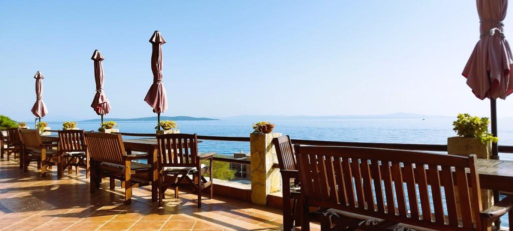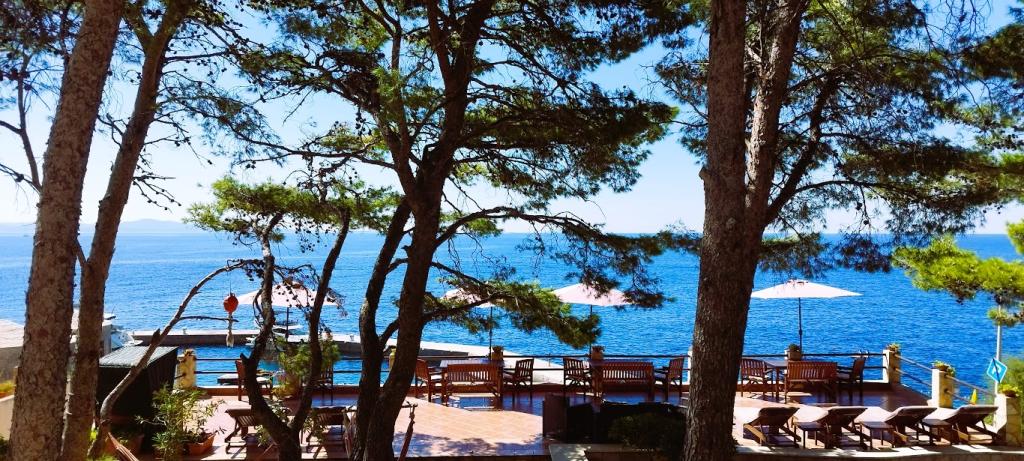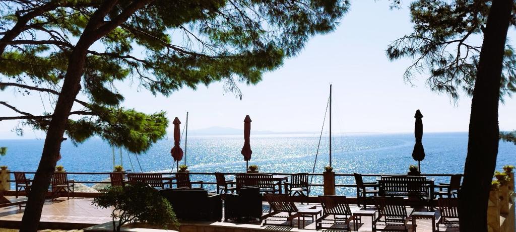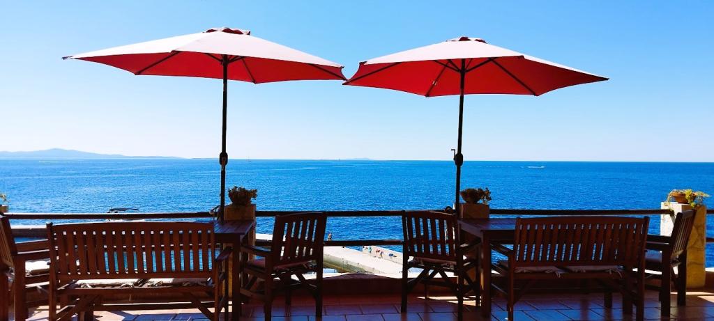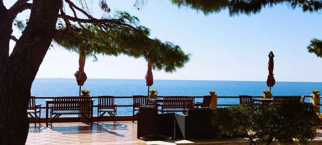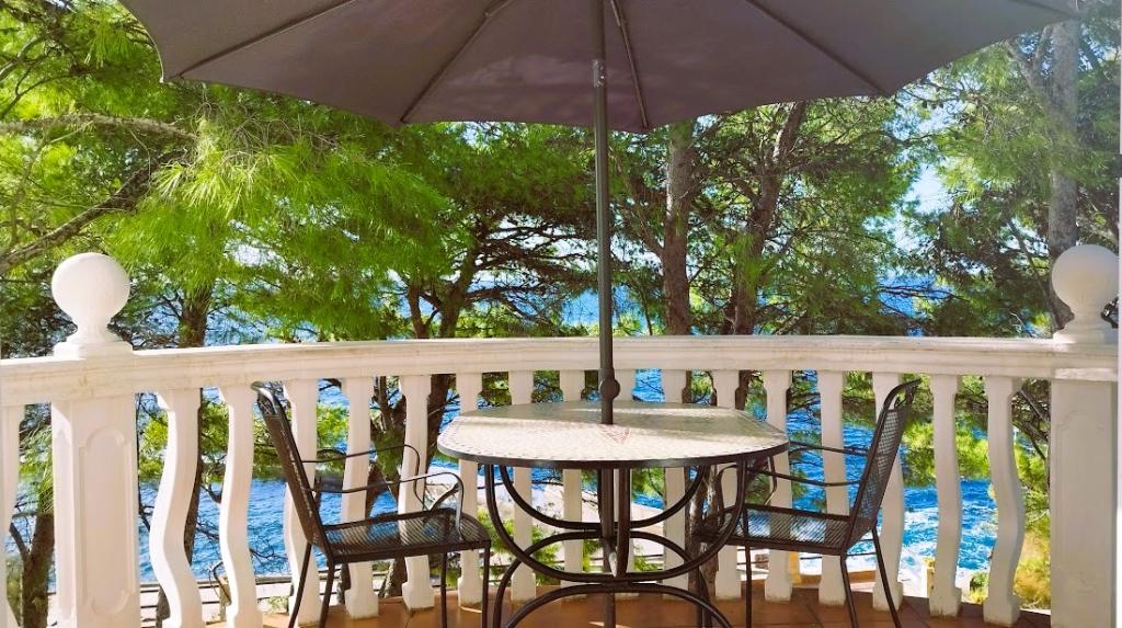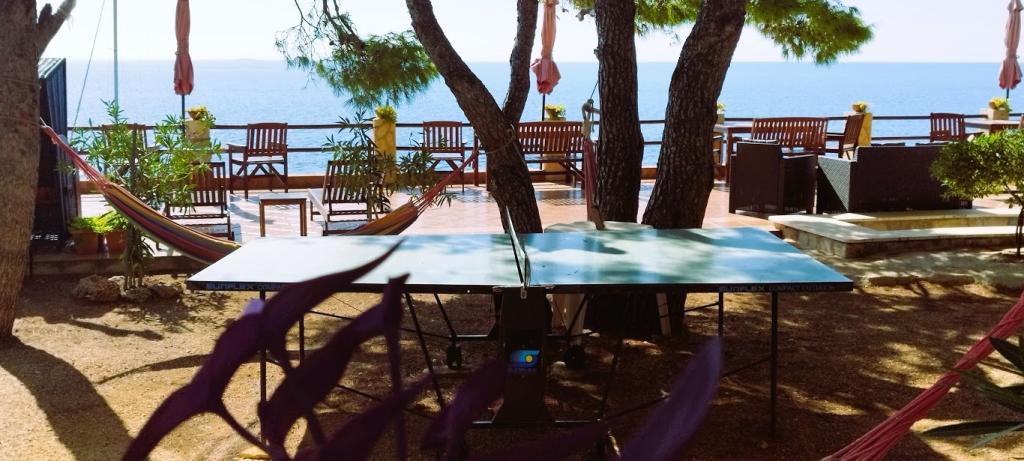 Unsere Villa liegt direkt am Meer (ca. 30 m) und ist über eine Asphaltstraße zu erreichen, die in der Nähe endet. Die Villa liegt freistehend in einem Pinienwald auf einem ca. Das Grundstück hat eine Fläche von ca. 900 m², am Fuße davon befindet sich eine Garage für sechs Autos, das Gebäude ist an die städtische Wasserversorgung und Drehstrom angeschlossen und befindet sich in Reichweite von GSM, Festnetztelefon und kostenlosem Highspeed-WLAN. Zwischen den Kiefern gibt es kaskadenförmige Plateaus für Tischtennis und andere Aktivitäten. Im Garten gibt es einen Grill zur kostenlosen Nutzung und zahlreiche Sonnenliegen und Schaukeln sowie Pfadfinder-/Seemannsnetze, Schach, Karten... jedes Zimmer hat ein eigenes Bad und eine eigene Loggia, Terrasse oder Balkon, alle Zimmer haben Meerblick, jedes Zimmer hat einen Kühlschrank, Sat-TV.