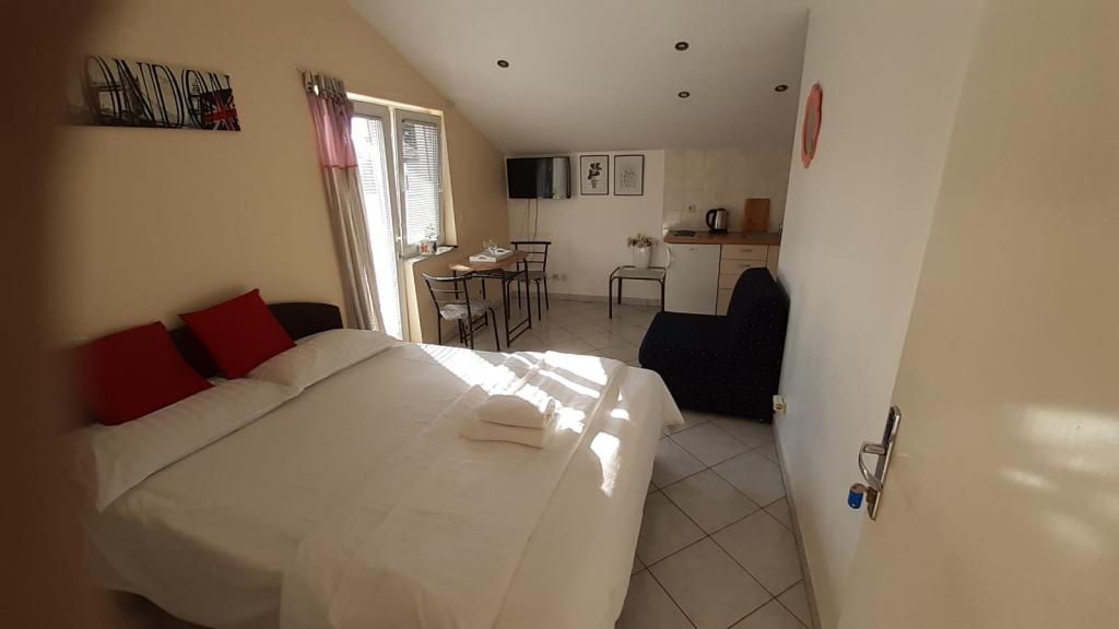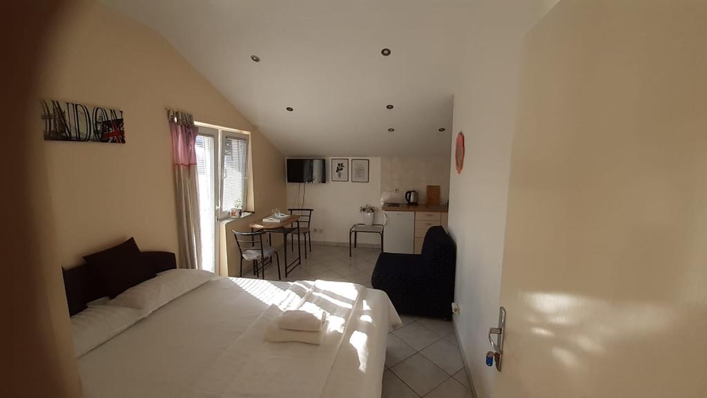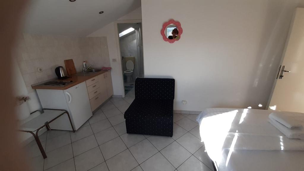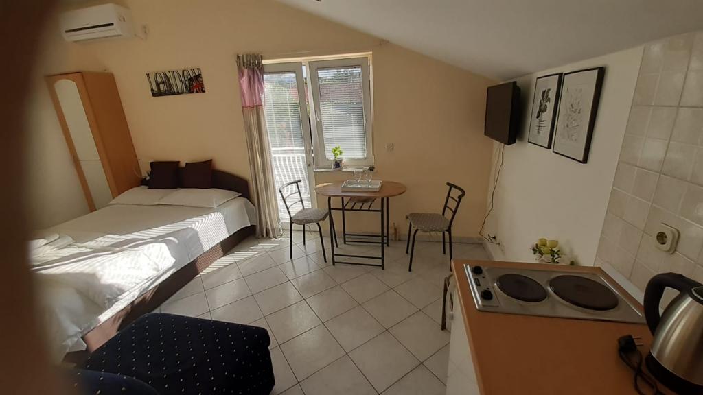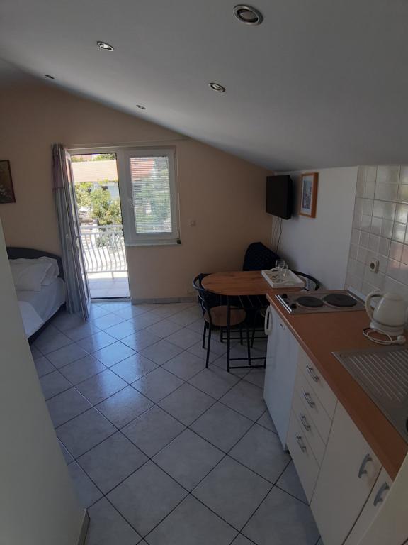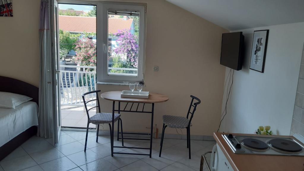 Die Wohnung befindet sich im ersten Stock eines Familienhauses im Zentrum einer kleinen Stadt. In 3-5 Minuten erreichen Sie die Uferpromenade, das Postamt, die Bank, die Kirche, die Ärzte und die Spielplätze für kleine Sportarten. Der Strand beginnt am Wasser und erstreckt sich nach links und rechts. Der Strand ist für alle Altersgruppen geeignet. Die Apartments verfügen über einen eigenen Parkplatz. Aufgrund der Nähe anderer Einrichtungen wird ein Auto in der Regel nicht benötigt. Die Apartments verfügen über kostenfreies Internet, Klimaanlage und sind mit einem neuen SMART TV ausgestattet.