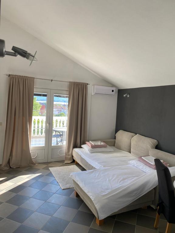 Mieten drei Wohnungen innerhalb obiteljsljske Haus in der Nähe der Stadt und Strand. Zwei Wohnungen für vier Personen sind auf dem Boden, die dritte Wohnung 110m2, 6 + 2 auf dem Boden kuće.Apartmani 2 +2 haben ein Schlafzimmer mit Doppelbett und zwei zusätzlichen Betten im Wohnzimmer, Küche, Terrasse mit Meerblick, Sat-TV und WLAN. Wohnung für acht Personen mit drei Schlafzimmern und zwei zusätzliche Betten im Wohnzimmer, Küche, Bad mit Dusche, WC, Terrasse mit Blick view.Apartment ist klimatisiert. Alle unsere Gäste haben Parkplätze im Hof, und der Zugang Wirless Netzwerk.