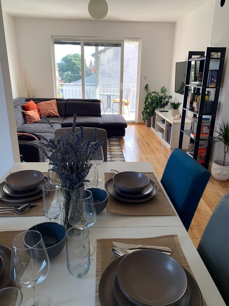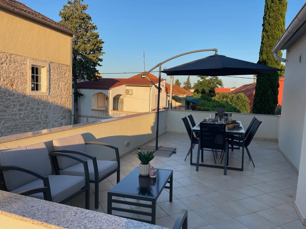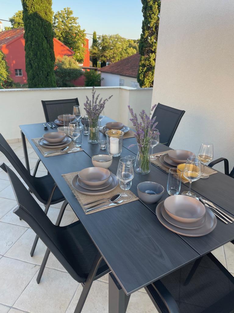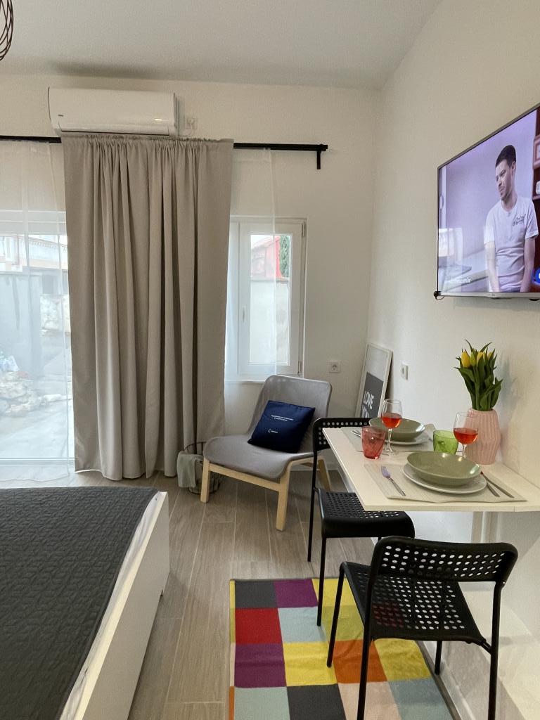 Ein voll ausgestattetes Studio-Apartment mit Terrasse befindet sich im Erdgeschoss eines Familienhauses im Zentrum von Sveti Filip i Jakov. Die Wohnung mit drei Schlafzimmern, komplett ausgestattet, mit großer Terrasse mit Gartenmöbeln befindet sich im ersten Stock des Hauses. Die Apartments befinden sich 5 Gehminuten vom nächsten Strand (Sie können zwischen Kies-, Sand- oder Betonstrand) sowie Restaurants, Geschäften, Postämtern, Sportanlagen, Café-Bars usw. entfernt. Parkplätze stehen vor dem Haus zur Verfügung und sind im Preis inbegriffen im Preis. Ein Grill steht den Gästen ebenfalls zur Verfügung...