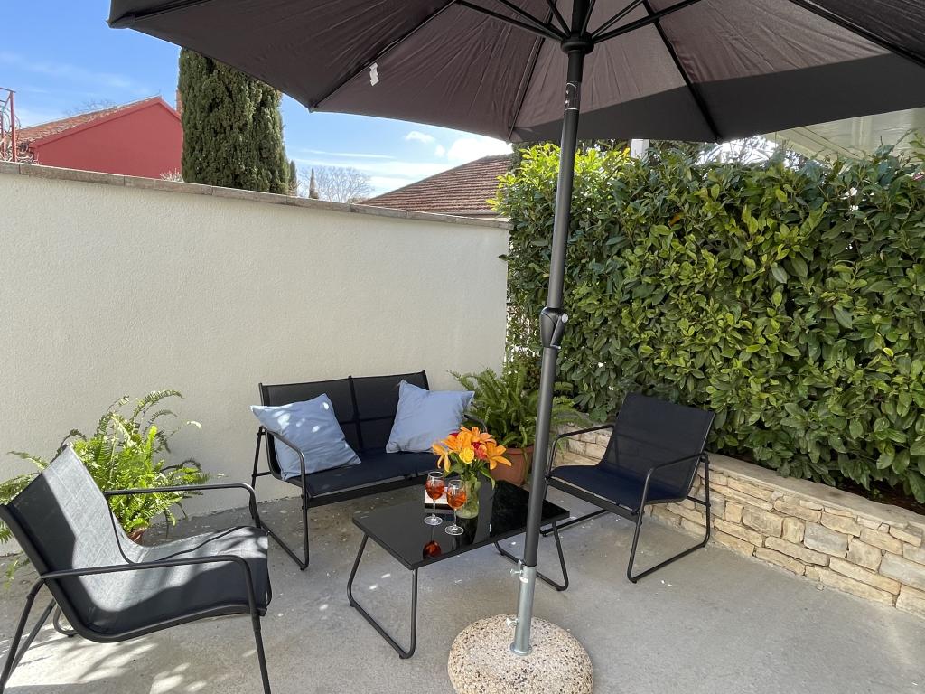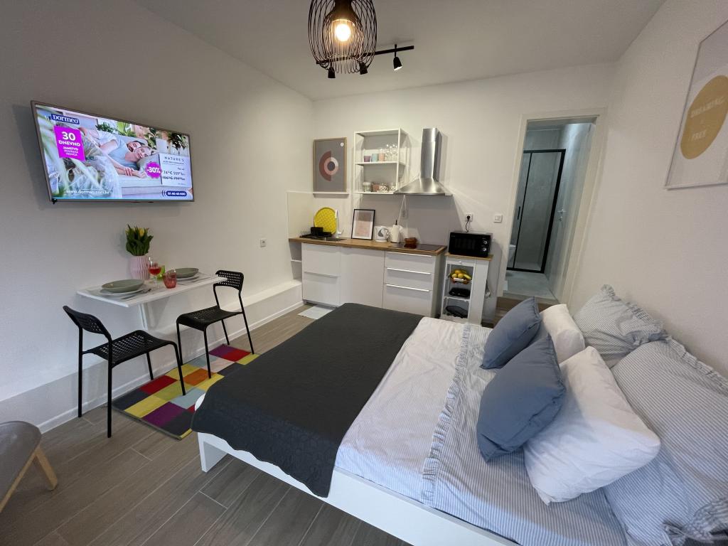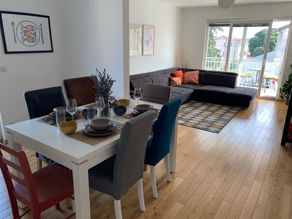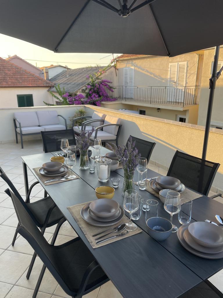 Ein voll ausgestattetes Studio-Apartment mit Terrasse befindet sich im Erdgeschoss eines Familienhauses im Zentrum von Sveti Filip i Jakov. Die Wohnung mit drei Schlafzimmern, komplett ausgestattet, mit großer Terrasse mit Gartenmöbeln befindet sich im ersten Stock des Hauses. Die Apartments befinden sich 5 Gehminuten vom nächsten Strand (Sie können zwischen Kies-, Sand- oder Betonstrand) sowie Restaurants, Geschäften, Postämtern, Sportanlagen, Café-Bars usw. entfernt. Parkplätze stehen vor dem Haus zur Verfügung und sind im Preis inbegriffen im Preis. Ein Grill steht den Gästen ebenfalls zur Verfügung...