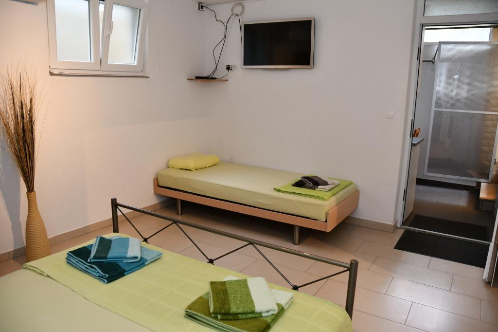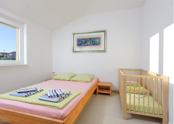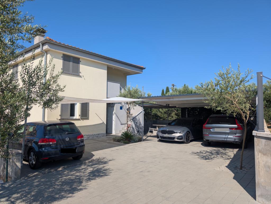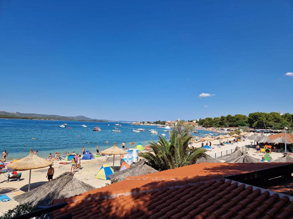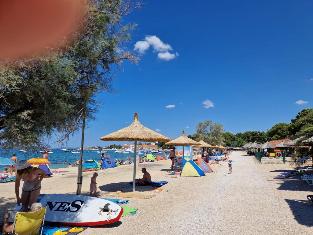 Zu vermieten ist das gesamte Obergeschoss eines Einfamilienhauses, mit Internet, Klimaanlage, TV, zwei Schlafzimmern mit Bad, Wohnzimmer mit Küche und Terrasse, überdachtem Parkplatz, Grill, Bushaltestelle im Zentrum von Filip i Jakov, 250 m Fußweg zum Strand, 100 m zu Geschäften, Restaurants, Apotheke, Einkaufszentrum 500 m. Der Strand ist sandig, teilweise feinsandig, kostenlos, es gibt verschiedene Aktivitäten für Jugendliche und Kinder sowie Restaurants. Nachtleben: Spaziergänge am Meer entlang, Musik in Restaurants oder an der Uferpromenade, für Kinder ein Vergnügungspark und die Eisenbahn „Tomica and Friends“, 3 km Biograd na Moru für noch mehr Spaß oder 26 km Zadar. Von Filip i Jakov aus besteht die Möglichkeit eines Tagesausflugs zu den Kornaten, den Krka-Wasserfällen, dem Vrana-See, der Altstadt von Zadar, dem Fun Park in Biograd und sogar den Plitvicer Seen usw. Sie brauchen kein Auto, um hier zu bleiben und zu entspannen, alles kann zu Fuß erledigt werden. Sie können mit dem Bus direkt zum Haus oder mit dem Flugzeug zum Flughafen Zemunik bei Zadar (25 km) kommen. Wenn unser Eigentümer nicht da ist, sind die Gäste in der Regel allein im Haus
