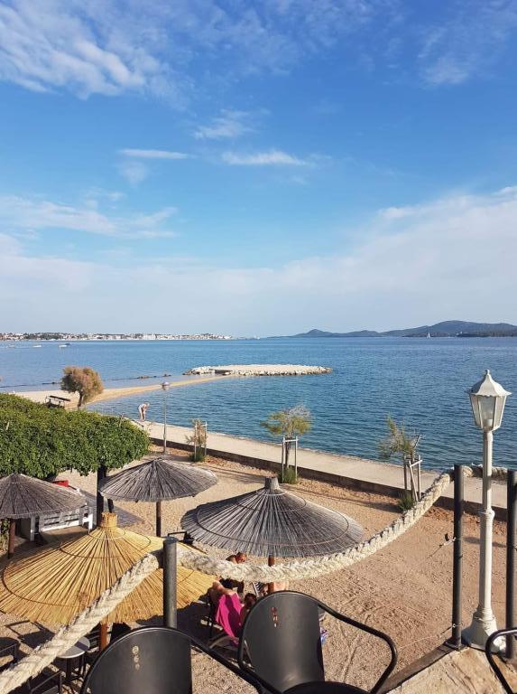 Die Anlage befindet sich in einem ruhigen Teil von Sveti Filip i Jakov, nur 10 Gehminuten vom Strand und dem Stadtzentrum entfernt. Die Apartments sind komplett möbliert, alle verfügen über eine Terrasse und zwei davon über einen Balkon mit einer Terrasse, von der aus man einen wunderschönen Blick auf das Stadtzentrum und die Kirche St. Michael, das ruhige Meer und den Pašman-Kanal mit seinen Inseln hat. Im Hof gibt es einen privaten überdachten Parkplatz und einen Grill, wo Sie sich entspannen und grillen können. Entfernung zu größeren Städten: Biograd 3 km, Zadar 20 km, Fun Park Dalmaland 5 km, Naturpark Vrana-See 10 km, Nationalpark Krka-Wasserfälle 50 km, Nationalpark Kornati, Abfahrt mit dem Boot von der Stadt oder Biograd