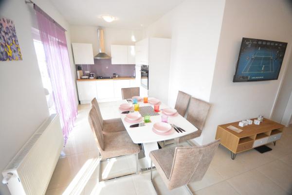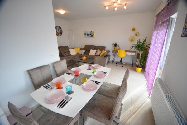 Die Wohnung hat neue, saubere, aufgeräumte neue Möbel und eine riesige Terrasse. Alle Annehmlichkeiten sind eine Küche. In der Nähe des Strandes, in ruhiger Lage. Paula und ihre Familie sind sehr nett. Danke, wir werden nächstes Jahr zurück sein! Hutvágner Familie aus Ungarn