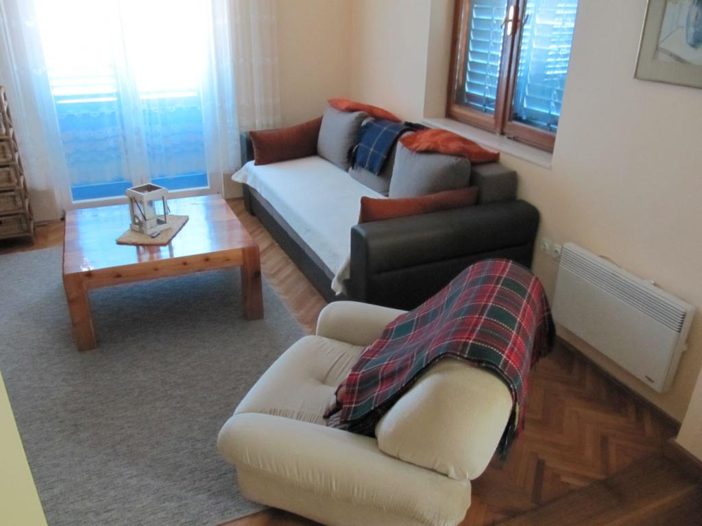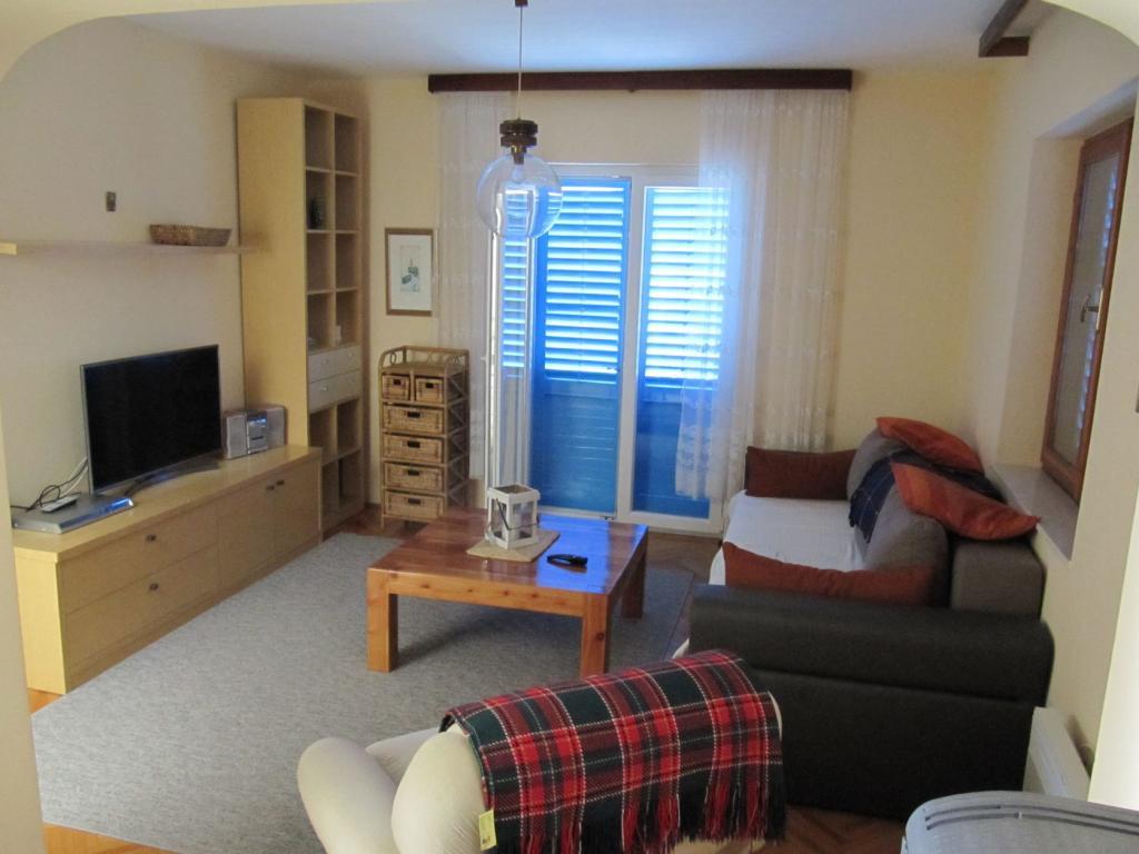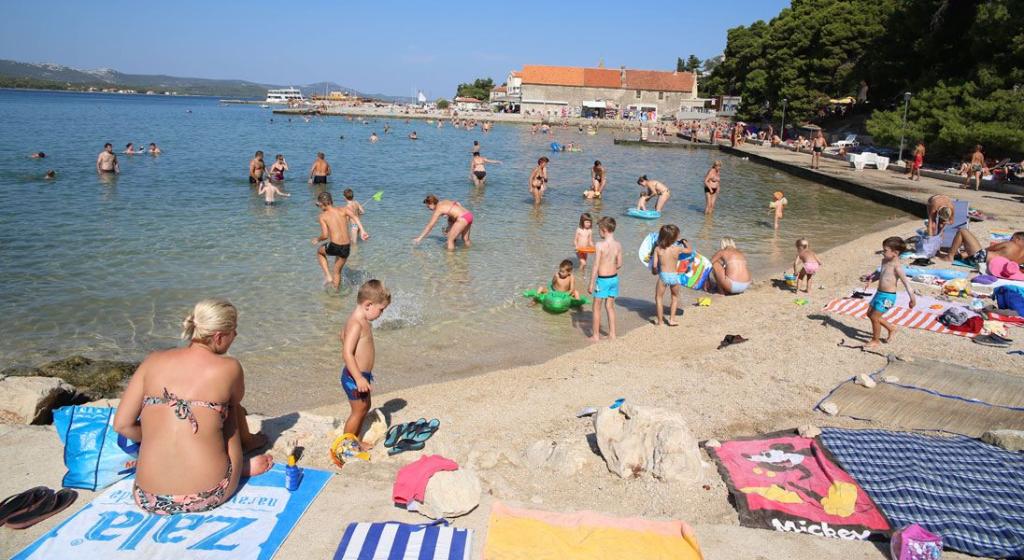 Geräumige und gemütliche Wohnung für eine große Familie im Stadtzentrum. Ein großer Garten mit duftenden mediterranen Kräutern und Obstbäumen vermittelt ein umfassendes Gefühl der dalmatinischen Umgebung. Die Terrasse mit Markise sorgt für Gemütlichkeit am Nachmittag. Die Wohnung ist 2 Minuten von der Küste entfernt.