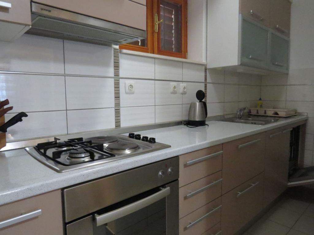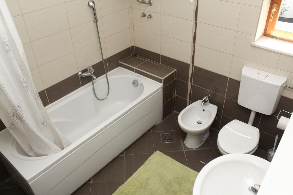 Sonnenliegen im Garten. Tische und Stühle auf der Terrasse. Zwei leistungsstarke Klimaanlagen. Verwendung eines gemauerten Grills im Garten. Begrüßungswein im Kühlschrank. Seifen, Toilettenpapier. Die Möglichkeit, ein Boot zu mieten und detaillierte Anweisungen für den Besuch der nahegelegenen Inseln und Einrichtungen bei der Agentur „Love Story“ zu erhalten, 100 m von der Wohnung entfernt.