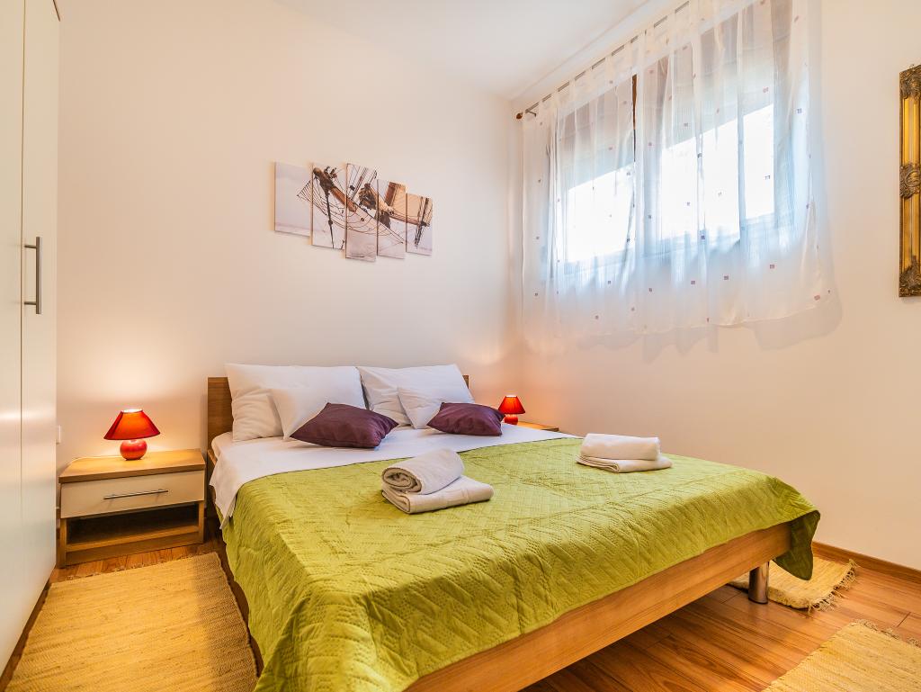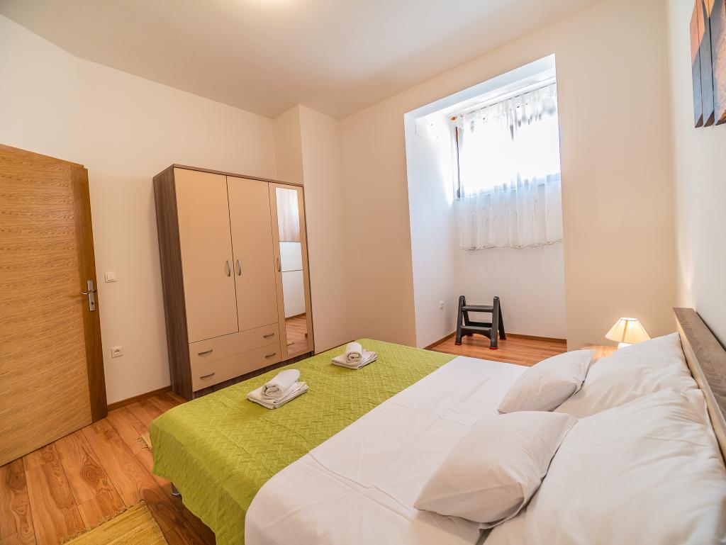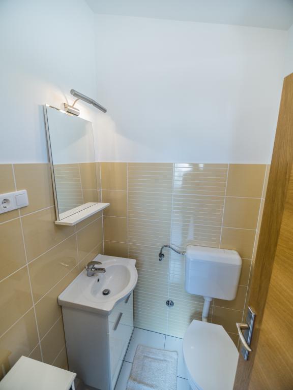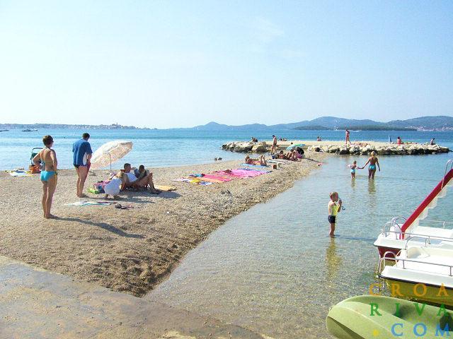 Wohnung in einer schönen und ruhigen Gegend in Sv. Filip i Jakov, erste Reihe zum Meer, Sandstrand ca. 100 Meter entfernt, und es gibt auch Kiesstrände. Die Wohnung ist an ein Einfamilienhaus angeschlossen, das Gebäude verfügt über einen eigenen Garten und Parkplatz. Das Stadtzentrum sowie wichtige Einrichtungen wie ein Geschäft, ein Postamt, ein Sportplatz und ein Arzt sind nur 5 Gehminuten entfernt.