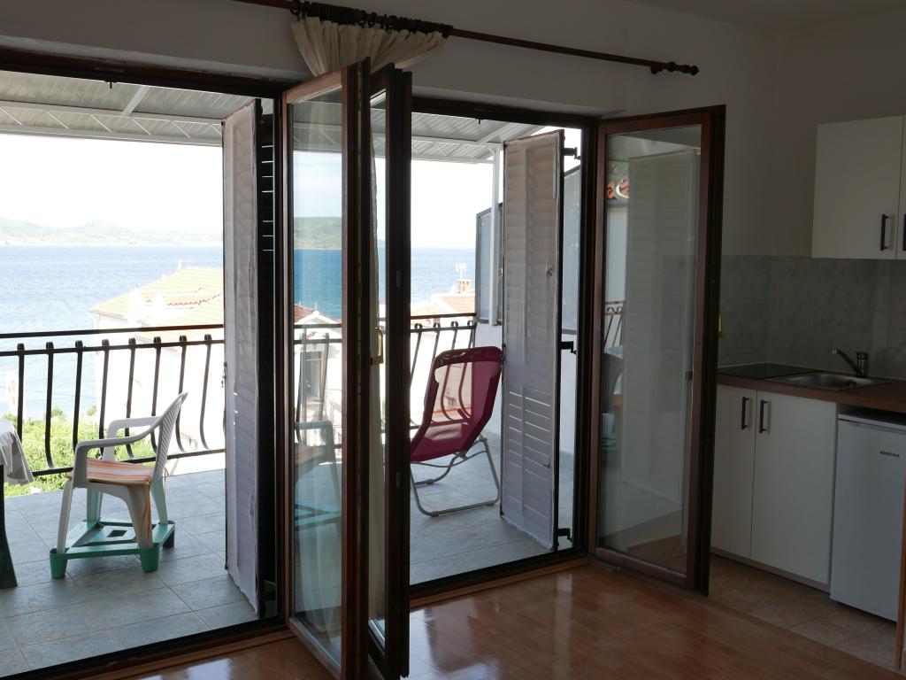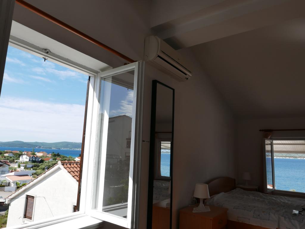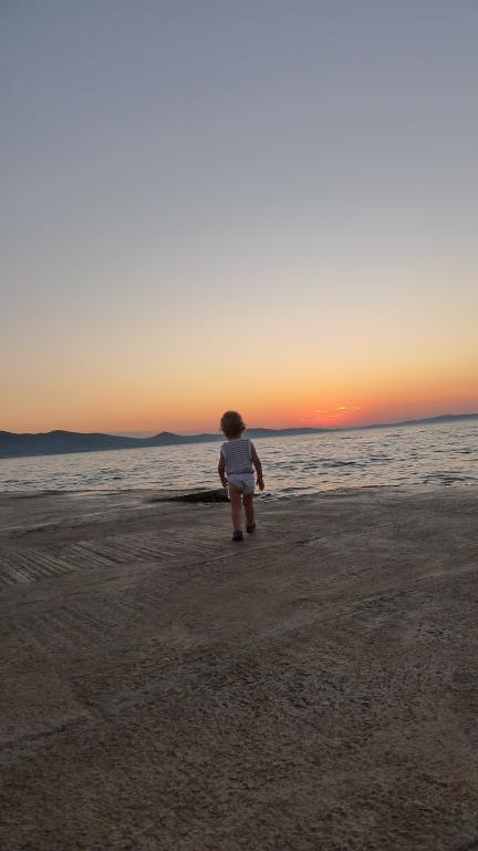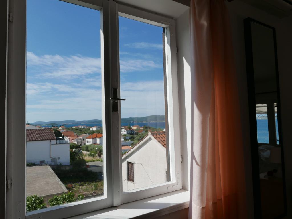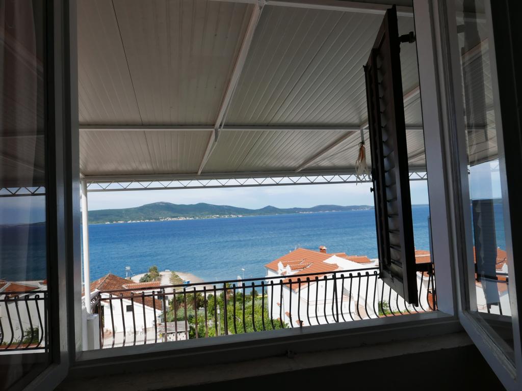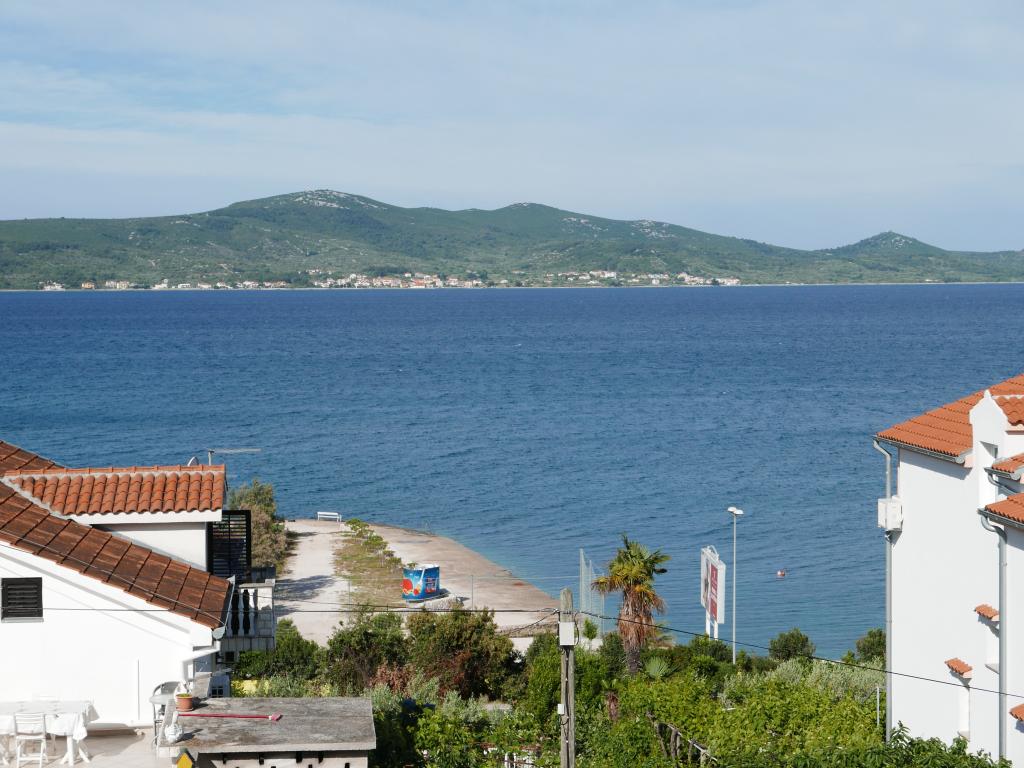 Einfamilienhaus, zwei Gehminuten zum Meer. Ein sehr schönes und friedliches Touristenziel. Die Dachgeschosswohnung (S2+1) besteht aus einem großen Zimmer mit einem Doppelbett, einem Schlafsofa und einem Fernseher. Es verfügt über eine Küche mit Essbereich. Es verfügt über ein großes Badezimmer mit Dusche und Bidet. Die Fläche beträgt 26m2. Von der großen Terrasse (25 m²) bietet sich ein Blick auf die Inseln Pašman und Ugljan. Das Studio-Apartment (S2) besteht aus einem großen Zimmer mit kleiner Küche und Badezimmer. Es verfügt über ein Doppelbett und einen Fernseher. Es verfügt über eine große Terrasse mit Blick auf das Meer und die Insel Pašman. Das Studio ist 20 m² groß und die Terrasse 14 m². Das Apartment mit einem Schlafzimmer (A2) besteht aus einem Schlafzimmer mit Doppelbett und Fernseher, einer Küche mit Essbereich und einem großen Badezimmer. Die Wohnung verfügt über eine kleinere Terrasse und liegt seitlich am Haus. Die Wohnung ist 25 m² groß und die Terrasse 3 m². Gekocht wird mit Strom. Bettwäsche wird gestellt. Für jeden Gast steht ein Parkplatz zur Verfügung. Der Grill wird gemeinschaftlich genutzt. In der Nähe befinden sich mehrere Nationalparks und Naturparks, ideal für einen Tagesausflug.