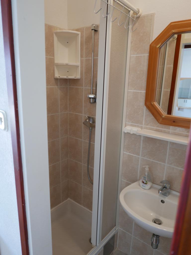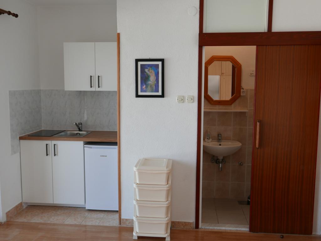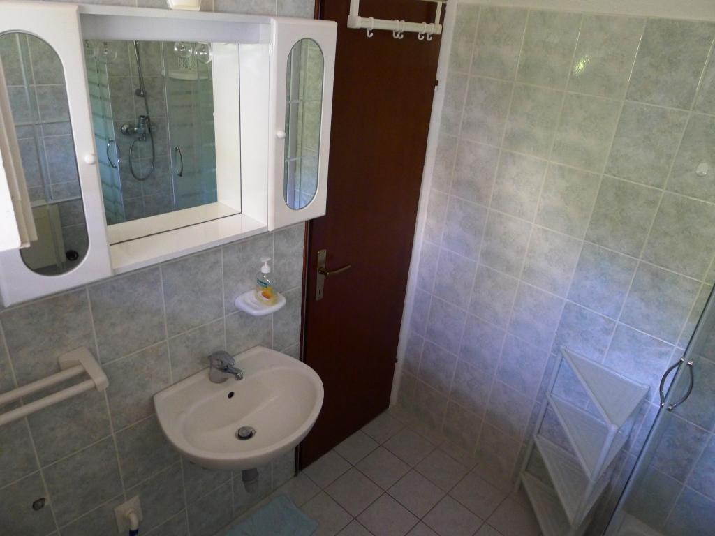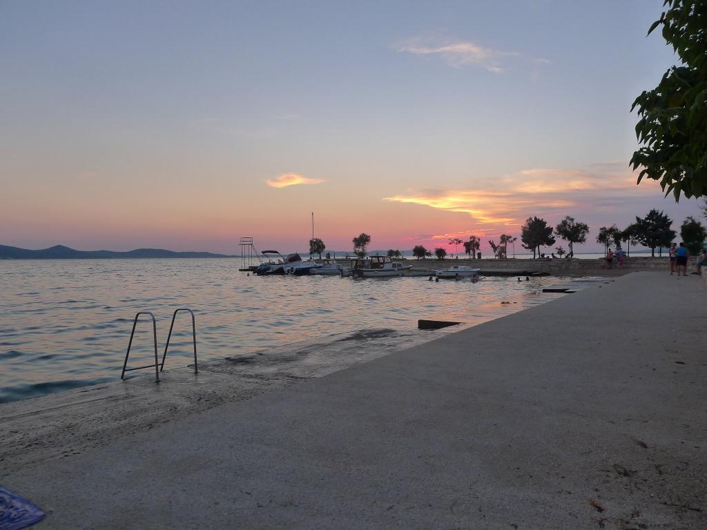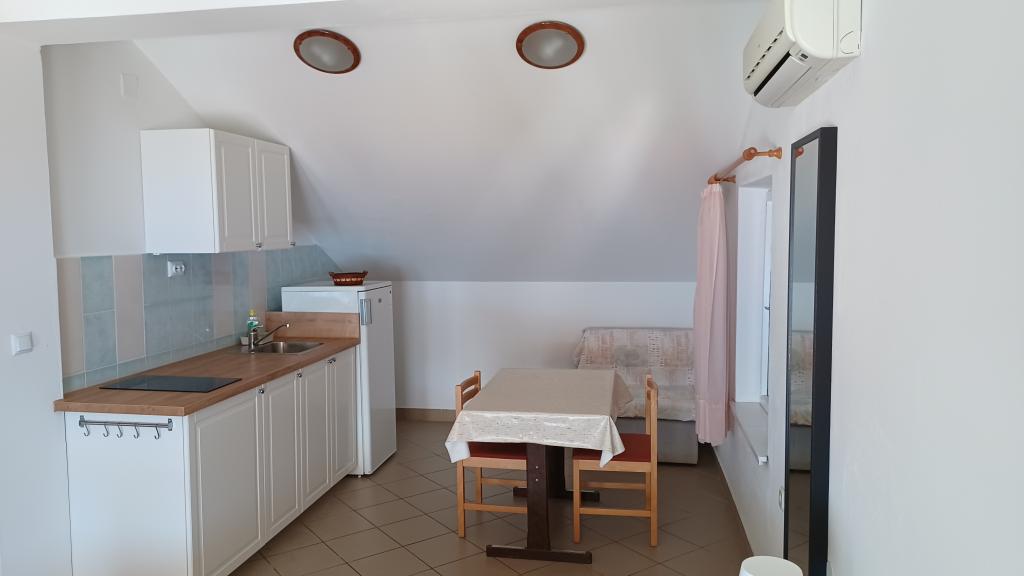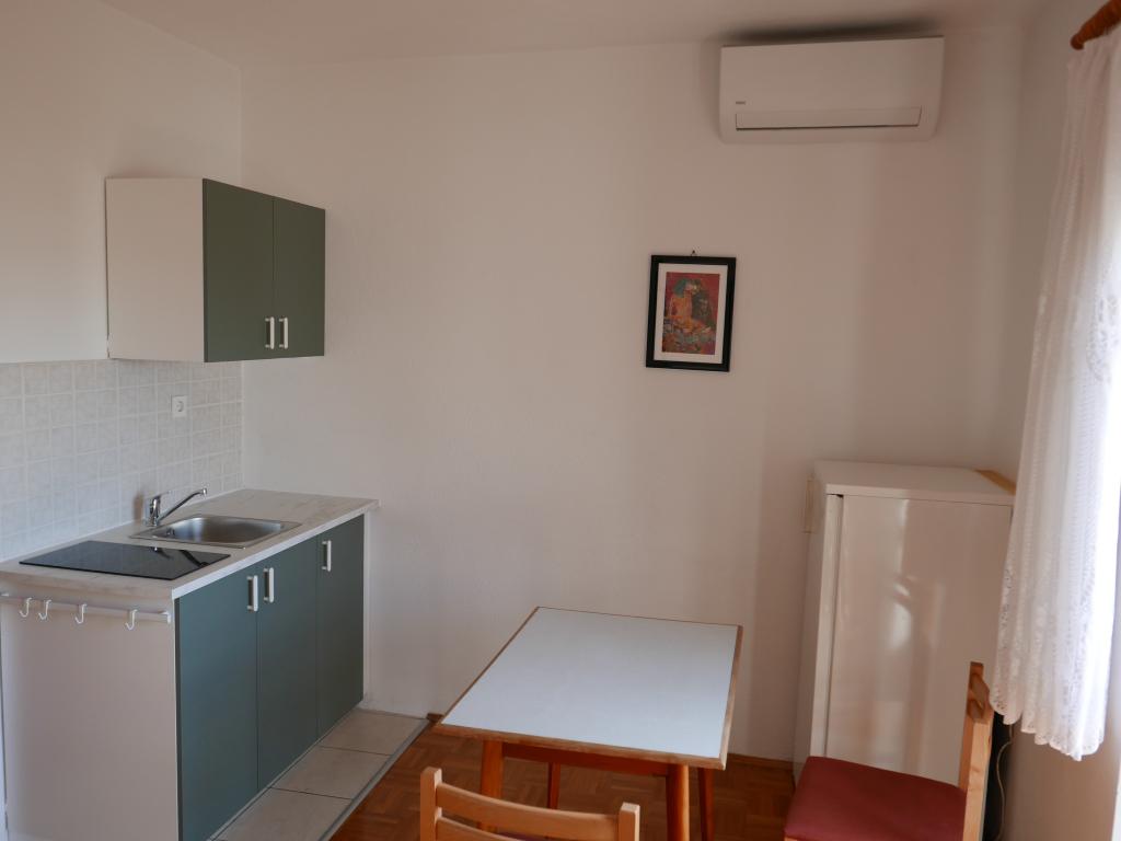 Einfamilienhaus, zwei Gehminuten zum Meer. Ein sehr schönes und friedliches Touristenziel. Die Dachgeschosswohnung (S2+1) besteht aus einem großen Zimmer mit einem Doppelbett, einem Schlafsofa und einem Fernseher. Es verfügt über eine Küche mit Essbereich. Es verfügt über ein großes Badezimmer mit Dusche und Bidet. Die Fläche beträgt 26m2. Von der großen Terrasse (25 m²) bietet sich ein Blick auf die Inseln Pašman und Ugljan. Das Studio-Apartment (S2) besteht aus einem großen Zimmer mit kleiner Küche und Badezimmer. Es verfügt über ein Doppelbett und einen Fernseher. Es verfügt über eine große Terrasse mit Blick auf das Meer und die Insel Pašman. Das Studio ist 20 m² groß und die Terrasse 14 m². Das Apartment mit einem Schlafzimmer (A2) besteht aus einem Schlafzimmer mit Doppelbett und Fernseher, einer Küche mit Essbereich und einem großen Badezimmer. Die Wohnung verfügt über eine kleinere Terrasse und liegt seitlich am Haus. Die Wohnung ist 25 m² groß und die Terrasse 3 m². Gekocht wird mit Strom. Bettwäsche wird gestellt. Für jeden Gast steht ein Parkplatz zur Verfügung. Der Grill wird gemeinschaftlich genutzt. In der Nähe befinden sich mehrere Nationalparks und Naturparks, ideal für einen Tagesausflug.