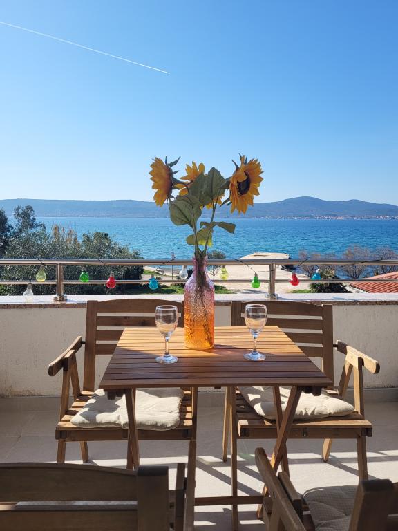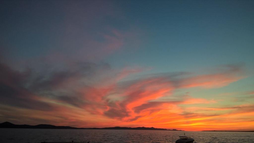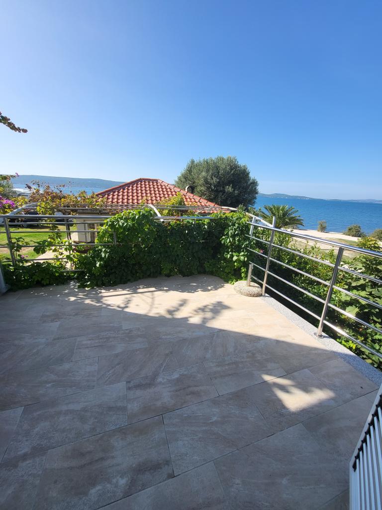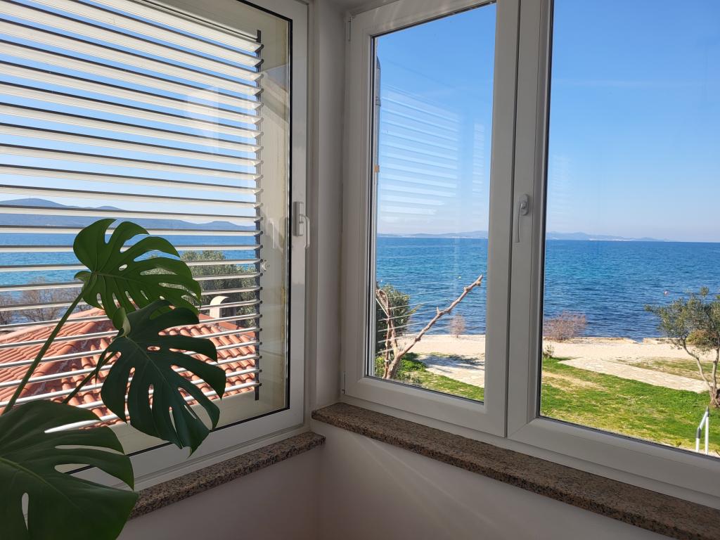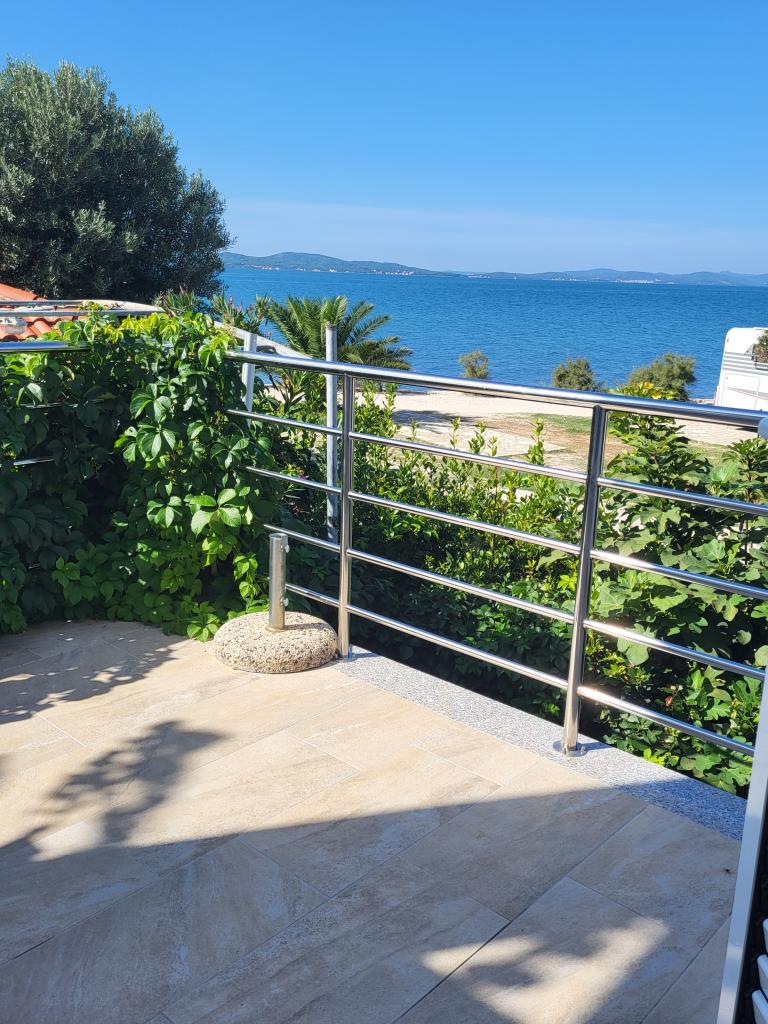 Die Wohnung befindet sich in einem Einfamilienhaus direkt am Meer. Sie haben alles, was Sie für einen Familienurlaub brauchen, und dazu noch eine wunderschöne Aussicht von der Terrasse auf einen der schönsten Sonnenuntergänge der Welt. Zwei Schlafzimmer plus Sofa mit Queensize-Bett, das mit Hilfe einer Matratzenauflage in ein bequemes Bett für einen Erwachsenen verwandelt werden kann. Das Badezimmer verfügt über eine Dusche und ein weiteres, zusätzliches WC, separat. Vor dem Haus haben Sie einen wunderschönen Kieselstrand mit Bäumen neben dem auch Sonnenliegen für unsere Gäste bereitstehen. Wir haben im Haus einen Familiencampingplatz mit angeschlossenen Toiletten und Duschen, die Sie nutzen können, während Sie am Strand sind. Nur 5 Gehminuten vom Haus entfernt entlang der Strandpromenade befinden sich eine Pizzeria und eine Strandbar, wo Sie einen Kaffee oder einen Cocktail genießen können. Die Anlage liegt in einem Gebiet, in dem sich überwiegend private Familiencampingplätze befinden, daher ist es recht ruhig und keinesfalls überlaufen. Wir sind kein Neuling in der Branche, wenn Sie also an Bewertungen unserer Einrichtung interessiert sind, finden Sie diese gerne unter „Buchung“. Zudem besteht die Möglichkeit, ein bis zu 6 m langes Boot zu Wasser zu lassen und an einer Boje festzumachen.
