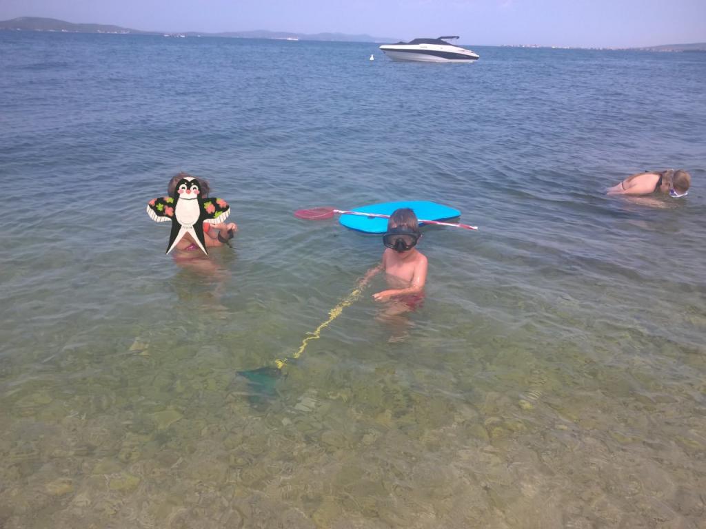 Vor dem Haus befindet sich ein geschlossener Pavillon mit Grill, wo Sie jederzeit grillen können, Sie müssen es lediglich im Voraus anmelden. Näher an unserem Haus, 5 Gehminuten entfernt, gibt es Stände mit frischem Obst und Gemüse, eine Bäckerei und einen Supermarkt. In unserer Kleinstadt gibt es alles, was man braucht und einmal pro Woche kommt sogar ein Mann auf unseren Campingplatz und verkauft frischen Fisch. Wir befinden uns zwischen 2 Städten; Zadar und Biograd sind beide etwa 15 Minuten entfernt und neben Biograd gibt es den kroatischen Vergnügungspark Fun Park und Aquapark, dessen Besuch ich empfehle. Für Naturliebhaber gibt es den 1 Autostunde entfernten Nationalpark Krka und den Nationalpark Kornati, aber Sie müssen nicht in die Nationalparks fahren, um die Natur zu genießen. Von uns aus führt ein Radweg nach Biograd, sodass Radsportbegeisterte die Straße nicht mit Autos verstopfen müssen. Wenn Sie Ihr Boot mitnehmen möchten, haben Sie die Möglichkeit, es ins Meer zu lassen (es gibt einen Eingang, eine Rampe), Sie können auch einen Liegeplatz bekommen oder es an einer Boje festmachen.