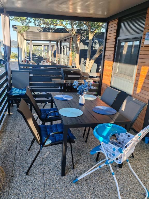 Das neue voll ausgestattete Mobilheim befindet sich im neu renovierten Camp Tamaris. Das Haus ist komplett mit allen Annehmlichkeiten für einen angenehmen Urlaub ausgestattet. Der Vorteil des Hauses ist die Nähe zum wunderschönen Strand, der nur 15 Meter entfernt ist. Beschreibung des Hauses: - 2 Schlafzimmer mit Doppelbetten (140x200 und 160x200) und Bettwäsche - Küche mit Wohnzimmer (ausziehbarer Tisch, Schlafsofa) - Badezimmer (Handtücher und Haartrockner) - große geräumige Terrasse (Tisch + 6 Stühle, Möbel und Stühle zum Sitzen, Gasgrill mit zusätzlichem Brenner zum Kochen)