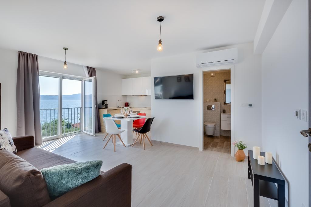 Neue Wohnungen in hervorragender Lage direkt am Meer. Nur ein Garten voller Olivenbäume trennt Sie vom Meer. Alle Wohnungen verfügen über eine Terrasse mit wunderschönem Blick auf das Meer. Sie verfügen über eine voll ausgestattete Küche (einschließlich Induktionsherd, Backofen, Geschirrspüler, Kaffeemaschine), jedes Zimmer verfügt über ein Moskitonetz und eine Klimaanlage. Großer 50-Zoll-Fernseher. Die Badezimmer verfügen über eine ebenerdige Dusche. Genießen Sie das Schwimmen im Meer und ruhen Sie sich anschließend auf den Liegestühlen im Schatten der Olivenbäume aus. Machen Sie nachts einen Spaziergang entlang der Küste oder besuchen Sie nahegelegene Städte (Zadar, Biograd, Šibenik...).