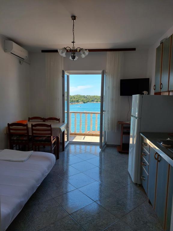 Schöne Wohnungen mit Meerblick in Tisno! Genießen Sie einen erholsamen Urlaub in unseren modernen und komfortablen Apartments, nur 50 Meter von der Adria entfernt. Jede Wohnung bietet: Geräumige Terrasse mit Aussicht, voll ausgestattete Küche, Wohnzimmer mit TV, kostenloses WLAN, Klimaanlage und eigenes Bad. Wir bieten auch einen kostenlosen Liegeplatz für Boote am Ufer direkt unterhalb der Wohnung an. Tisno ist ein malerischer Ort mit einer großen Auswahl an Restaurants, Cafés und Geschäften. Außerdem gibt es in der Nähe zahlreiche Nationalparks und Inseln, die Sie erkunden können. Buchen Sie Ihren Aufenthalt bei uns und genießen Sie einen unvergesslichen Urlaub an der Adria!