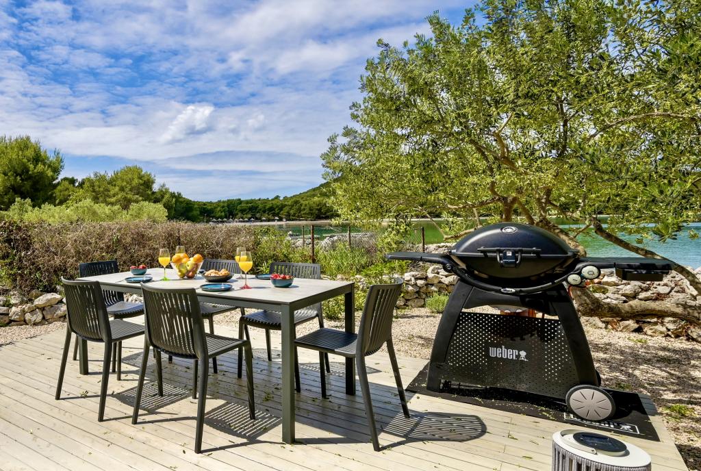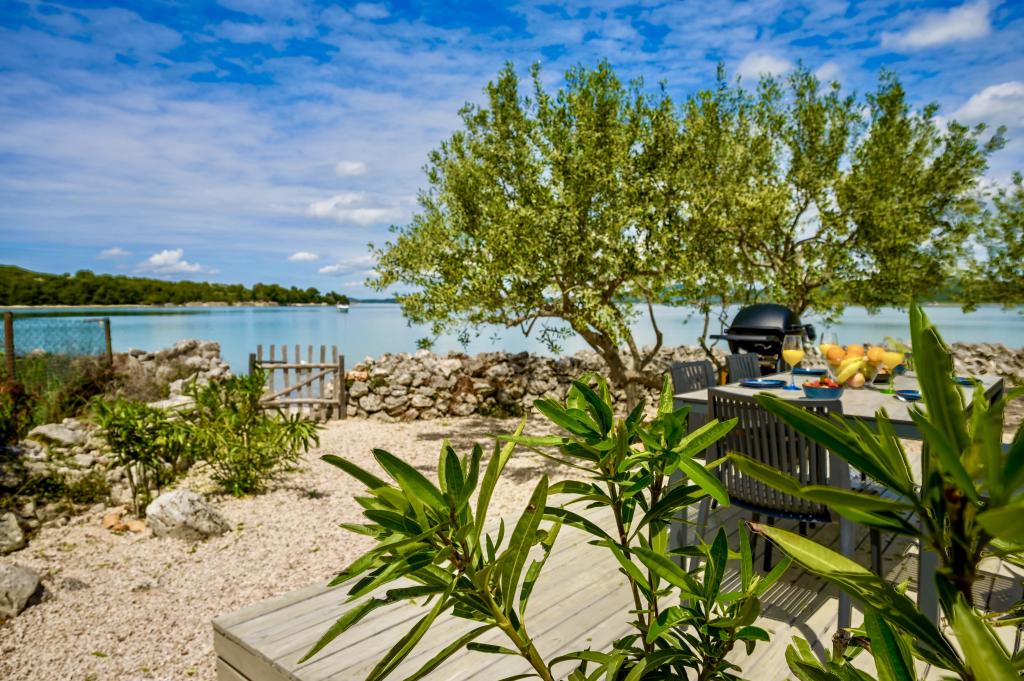 Das Mobilheim liegt nur wenige Schritte vom Meer entfernt. Die moderne Einrichtung der Wohnung trifft auf typisches Dalmatien. Umgeben von weißen Kieselsteinen und grünen Olivenbäumen und davor nur endloses Blau. Meer, Sonne und Wind erzeugen ein unbeschreibliches Spiel, das alle Sinne erfreut. Egal ob Sie in einem der beiden Schlafzimmer schlafen, Sie können das Blau des Meeres und die Glut der Sonne am Morgen genießen. Und von der voll ausgestatteten Küche mit allem, was Sie brauchen (einschließlich Geschirrspüler und Gefrierschrank) und dem geräumigen Esstisch bietet sich ein unbeschreiblicher Blick auf die Terrasse und all die Reize, die Sonne und Meer bieten. Egal ob Sie in der Küche eine Mahlzeit zubereiten oder auf der Terrasse grillen, absolute Ruhe und Privatsphäre sind Ihnen garantiert. Das Ziel eines jeden Urlaubs ist es, den Alltag und die Routine hinter sich zu lassen und genau das bietet unsere Anlage. Obwohl Sie von 8 ähnlichen Gebäuden umgeben sind, genießen Sie absolute Privatsphäre und Ruhe, da Ihnen alle den Rücken freihalten. Die einzigen Grenzen vor Ihnen sind der Himmel und das Meer.