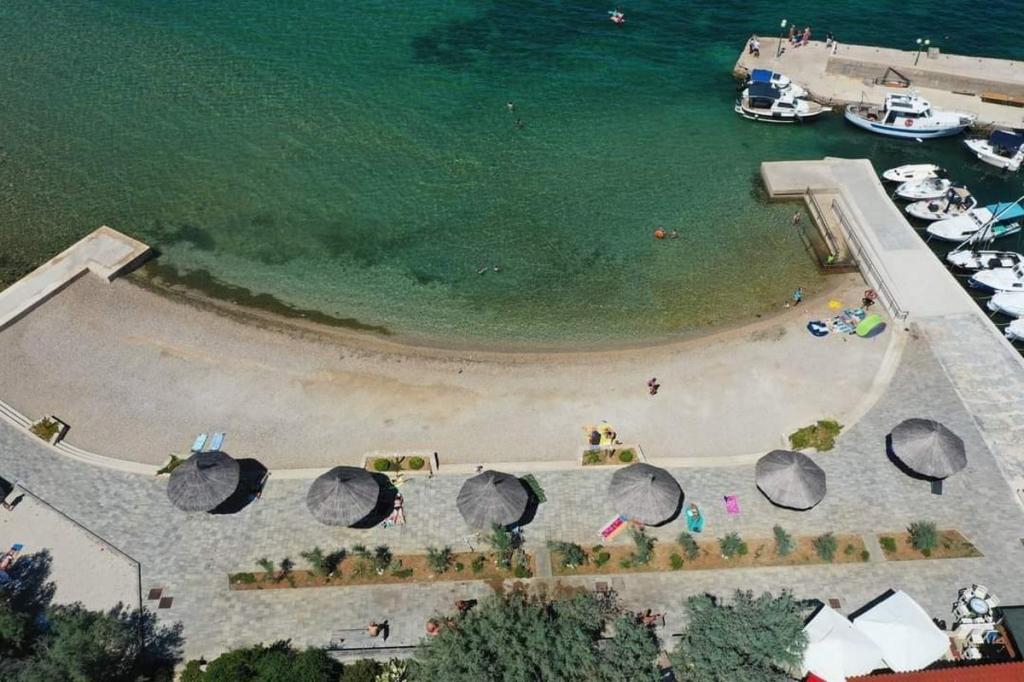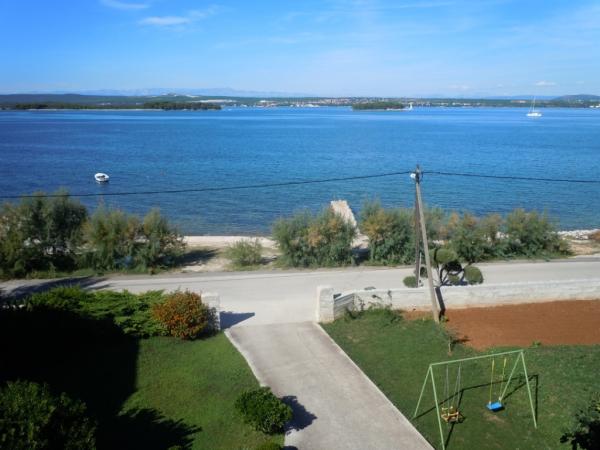 Die schöne Landschaft der kleinen dalmatinischen Stadt, unberührte Natur und ganz in der Nähe zum Meer sind nur einige der Gründe, die einen ruhigen und erholsamen Urlaub in Ugrinić auf der Insel Pasman weg von der Hektik zu verbringen, nicht weit von Tkon,. Haus mit drei getrennten Wohnungen befindet sich nur wenige Schritte vom Strand von grünen Wiesen, Oliven-und Tamarisken umgeben; bietet Ihnen die ideale Umgebung für Ruhe und Entspannung, während die Gäste auf der Suche nach Abenteuer vielen Wanderwege, die das Innere der Insel zum Radfahren und Wandern und die Landschaft zu genießen und die Schönheit unserer Insel kreuz und quer geeignet verbringen können. Im Garten gibt es einen Grillplatz, Liegewiese, Kinderspielplatz und Parkplätze. Die perfekte Wahl für Familien und Freunde, weil sie in einer ruhigen Gegend ist, doch in der Nähe des Zentrums.
