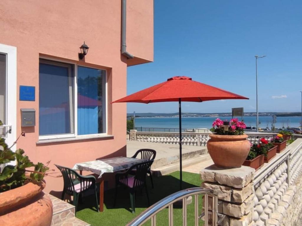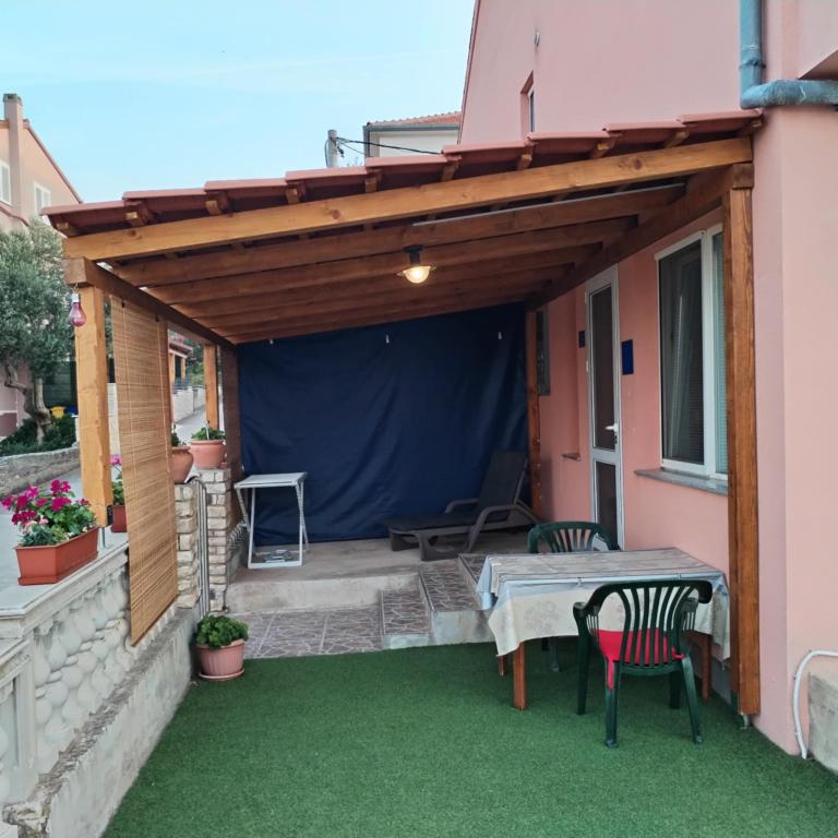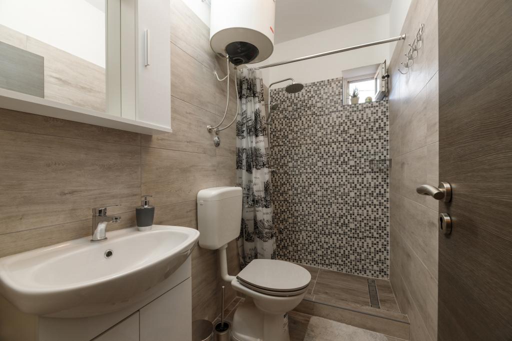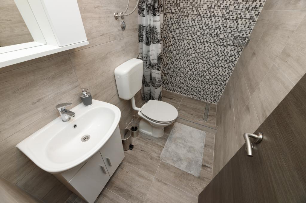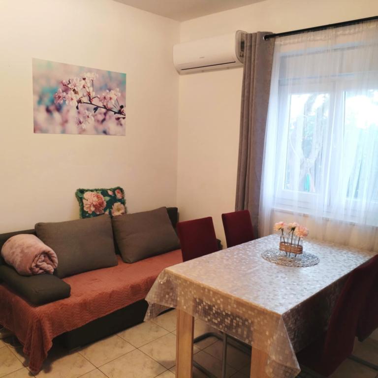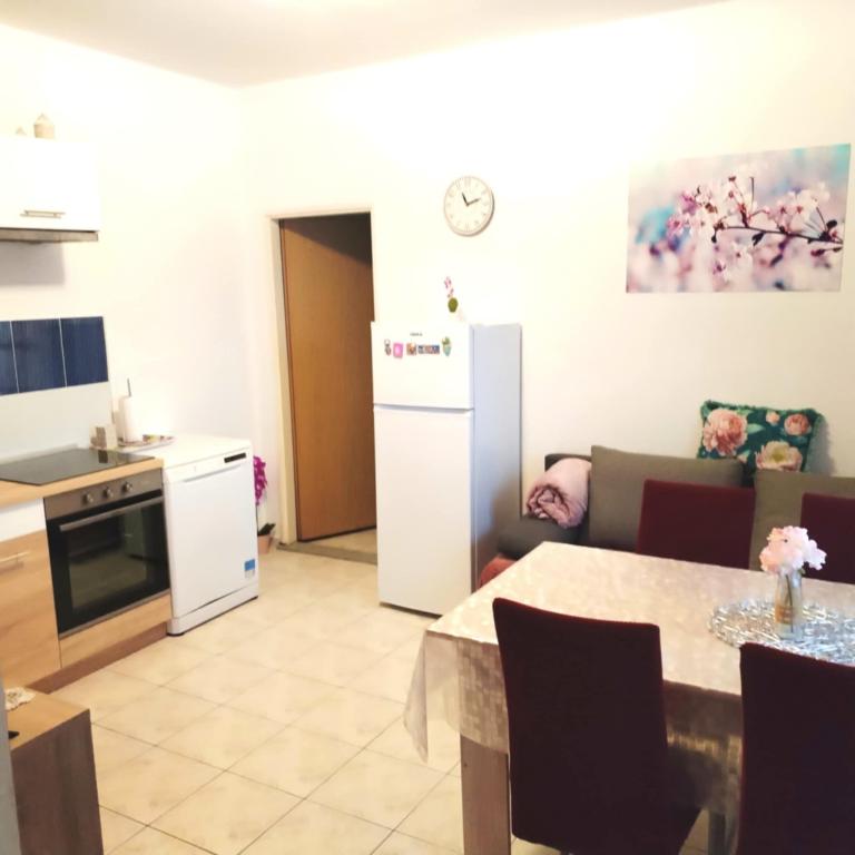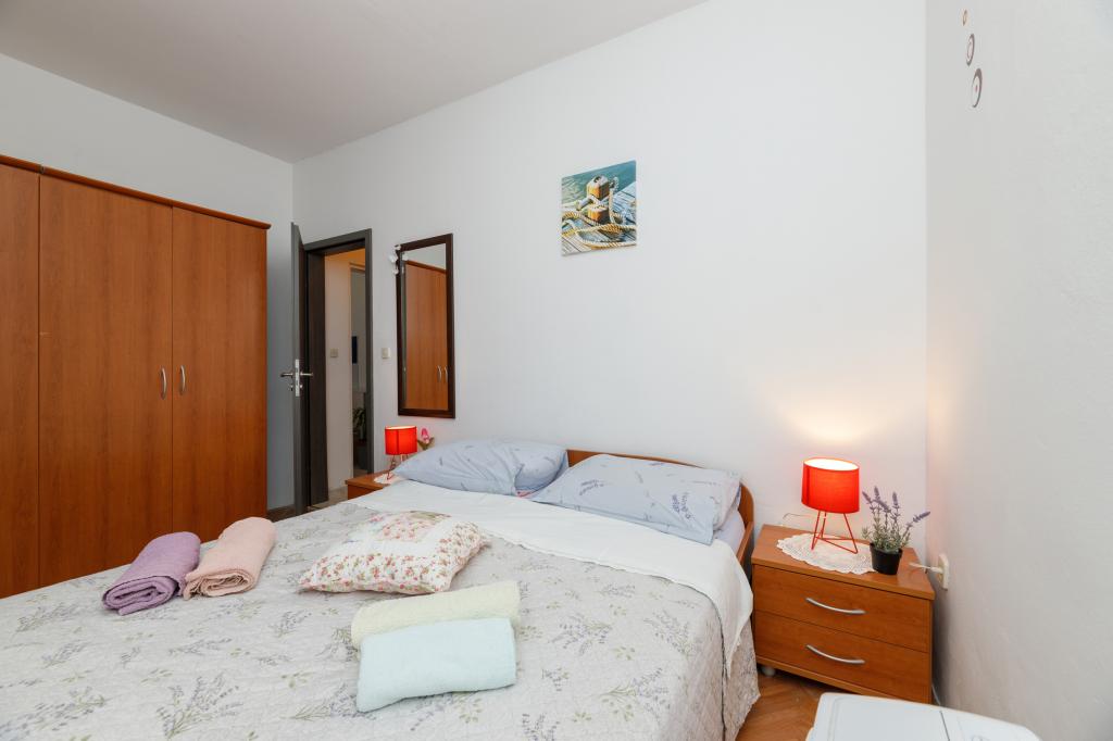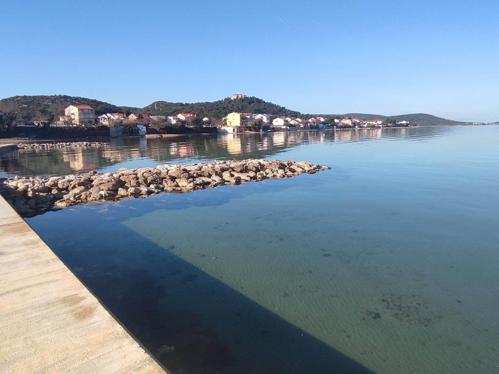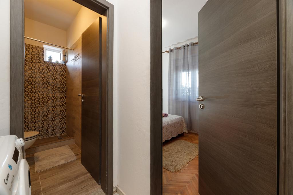 Ein Apartment mit einem Schlafzimmer in Tkon auf der Insel Pasman, 20 m vom Sandstrand und 50 m vom Zentrum von Tkon entfernt, befindet sich im Erdgeschoss. Es verfügt über ein Zimmer mit einem Doppelbett für zwei Personen und einem Schlafsofa für zwei Personen. Badezimmer mit Dusche, Waschmaschine, Küche mit Backofen und Geschirrspüler. Die Wohnung ist komplett ausgestattet, verfügt über TV, Internet, Klimaanlage, Parkplatz, Grill. Es verfügt über eine Terrasse mit Meerblick. In der Nähe der Wohnung befinden sich alle notwendigen Einrichtungen, Geschäfte, Restaurants, Tavernen, Cafés, Bäckerei, Konditorei, Metzgerei, Apotheke, Klinik. In Tkon können die Gäste die zahlreichen Sandstrände in den Buchten genießen, auf den Radwegen entlang der Insel Fahrrad fahren, im Sommer verschiedene Veranstaltungen und Feste besuchen und den nahe gelegenen Kornati-Nationalpark mit einem organisierten Boot von Tkon aus besuchen. Sie können auch den Naturpark Vrana Lake besuchen.