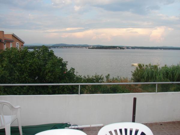 Haus in ruhiger Lage in Tkon auf der Insel Pašman. Die Anreise nach Tkon erfolgt mit der Fähre, die bei Bedarf stündlich, von Biograd aus auch häufiger verkehrt. Das Haus mit den Apartments liegt in erster Reihe, nur 10 Meter vom Meer entfernt. Die Apartments haben eine Fläche von 130 m² und sind in 10 Minuten zu Fuß im Zentrum. Vor dem Haus befindet sich ein großer Parkplatz. Die Apartments sind komplett ausgestattet und verfügen über WLAN, Klimaanlage, TV, Außendusche und Grill. Sie bieten drei Schlafzimmer, ein Kinderzimmer, ein Badezimmer mit WC, ein separates WC, eine große Terrasse mit Meerblick, eine Küche und ein geräumiges Wohnzimmer. Die überdachte Terrasse zum Sonnenbaden und Entspannen ist direkt an die Küche angeschlossen und bietet einen herrlichen Blick auf das Meer und die Umgebung. Die Apartments werden ausschließlich vermietet, das gesamte Haus kann jedoch ebenfalls gemietet werden. Ideal für Familien.