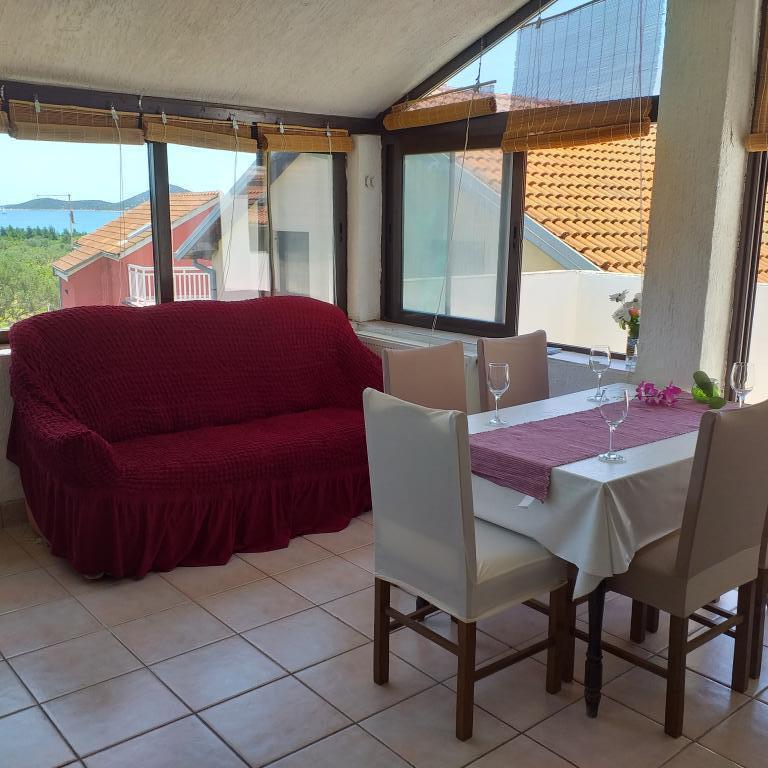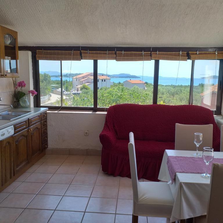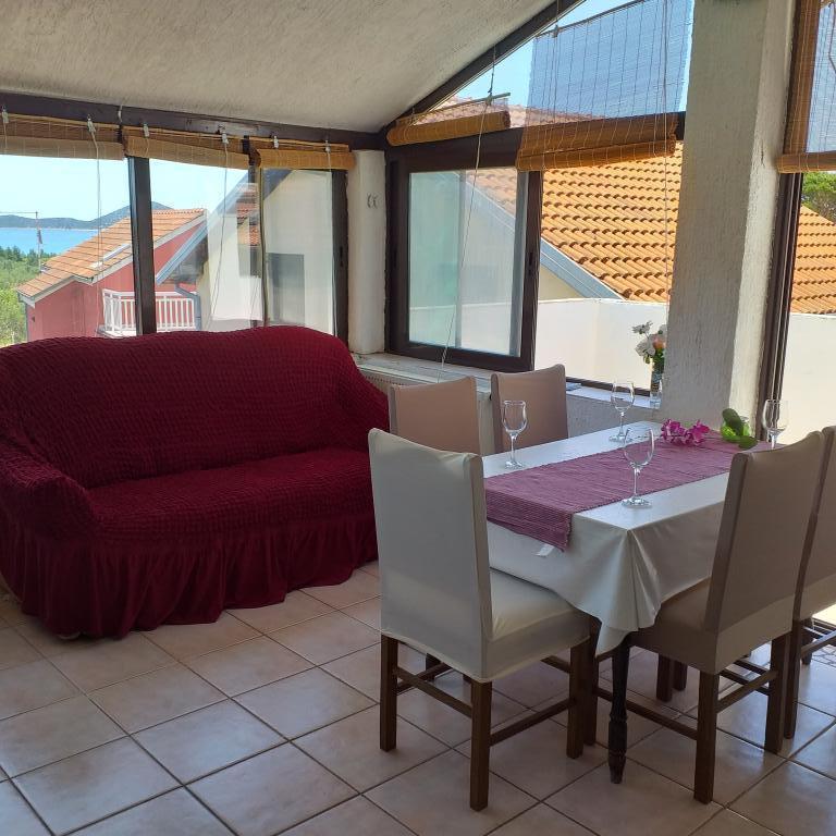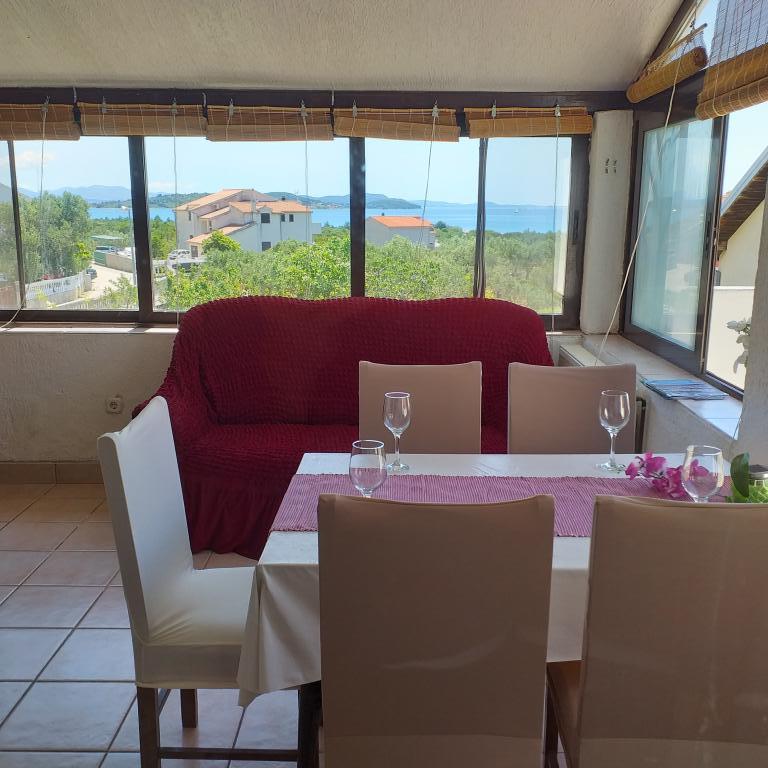 Die Villa Antonela liegt in einem ruhigen und wunderschönen Teil von Tribunj auf einem 2500 m² großen Privatgrundstück. Die Apartments mit zwei Schlafzimmern bieten einen traumhaften Blick auf unseren Weinberg, Olivenhain, das Meer und die Schären. Umgeben von Natur pur – Weinreben und Olivenbäume – bietet die Villa drei Apartments mit zwei Schlafzimmern (3xA4) und Terrasse mit Meerblick sowie zwei Apartments mit einem Schlafzimmer (A2). Alle Apartments verfügen über eine Terrasse oder einen Balkon. Für größere Gruppen stehen vor dem Haus schattige Tische bereit, und der umzäunte Garten bietet Kindern einen sicheren Spielplatz. Die Apartments sind komplett ausgestattet mit Sat-LCD-TV, Klimaanlage, Internet (WLAN), Zentralheizung und Parkplatz. Ein großer privater Parkplatz, ein Grill und ein umzäunter, schattiger Garten mit Tisch und Stühlen laden zum Verweilen und Spielen ein. Wir verkaufen regionale Produkte wie Olivenöl. Herzlich willkommen!