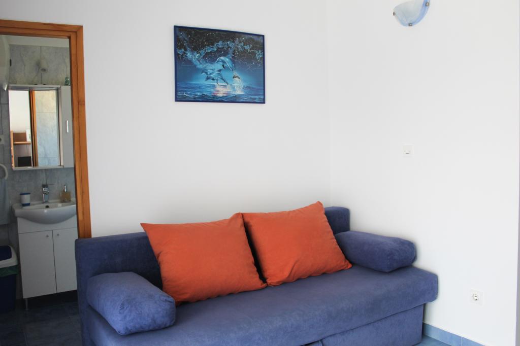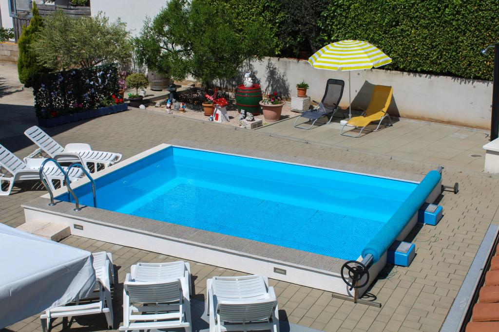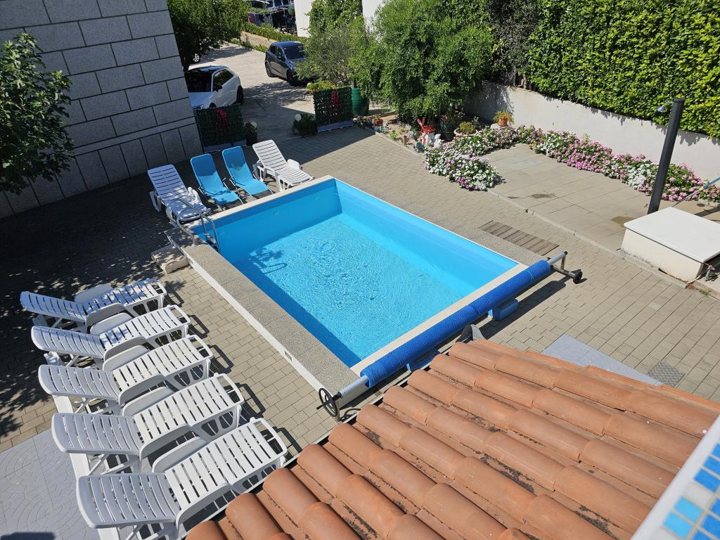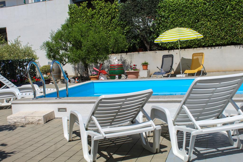 Ein Swimmingpool steht allen Gästen zur Verfügung. WOHNUNG A1 (Klimaanlage) – befindet sich im Erdgeschoss und besteht aus einer Küche, zwei Bädern, zwei Schlafzimmern für vier Personen, einem Wohnzimmer, SAT-TV, WLAN, einem kleinen Balkon mit Terrasse und einem Parkplatz. WOHNUNG A2 (Klimaanlage) – befindet sich im ersten Stock und besteht aus einer Küche, einem Badezimmer, einem Schlafzimmer mit einem kleinen Balkon, einem Wohnzimmer mit einem Schlafsofa für zwei Personen, SAT-TV, WLAN, einer großen Terrasse und einem Parkplatz. WOHNUNG A3 – befindet sich im ersten Stock und besteht aus einer Küche, einem Badezimmer, einem Schlafzimmer mit einem kleinen Balkon, einem Wohnzimmer mit einem Schlafsofa für zwei Personen, SAT-TV, WLAN, einer großen Terrasse und einem Parkplatz.