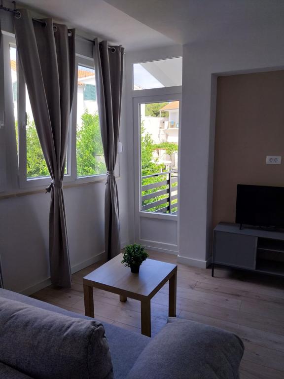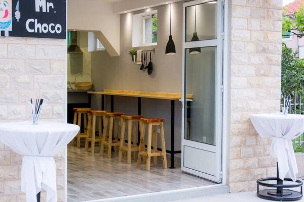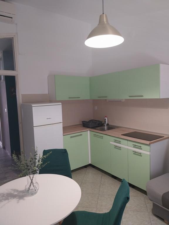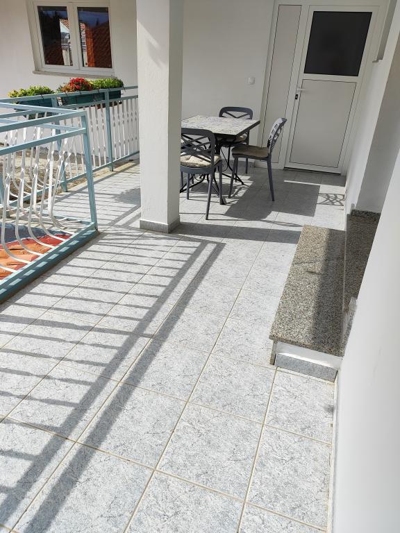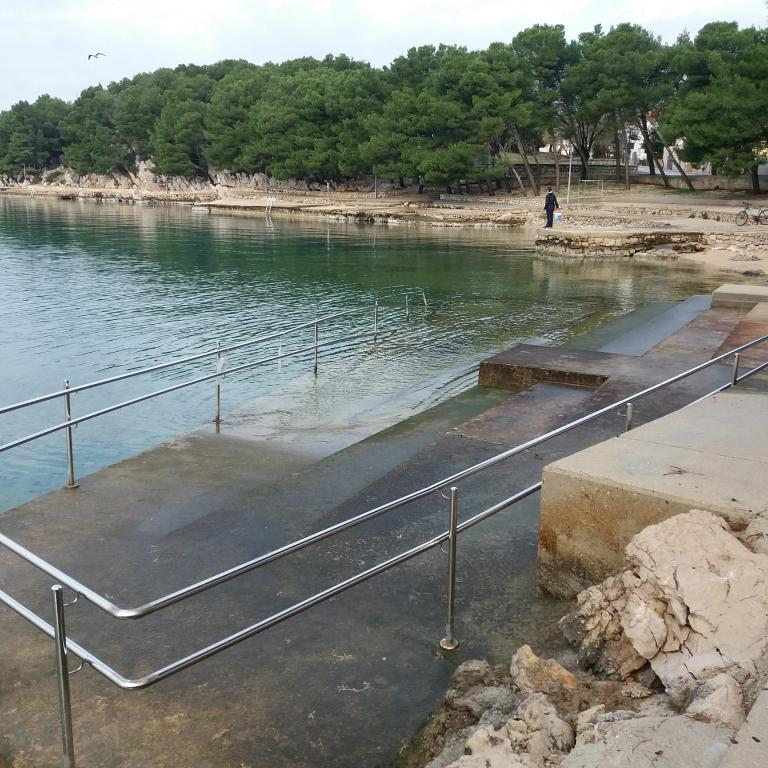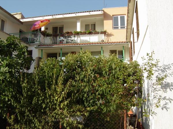 Das Haus liegt 50 m vom Hauptstrand entfernt. Es besteht aus zwei Apartments mit zwei Schlafzimmern und drei Apartments mit einem Schlafzimmer und bietet Platz für insgesamt 16 Personen. Es befindet sich in einer ruhigen Straße. In der Nähe finden Sie Restaurants, Geschäfte, eine Bäckerei und eine Pizzeria. Parkplätze sind vorhanden.