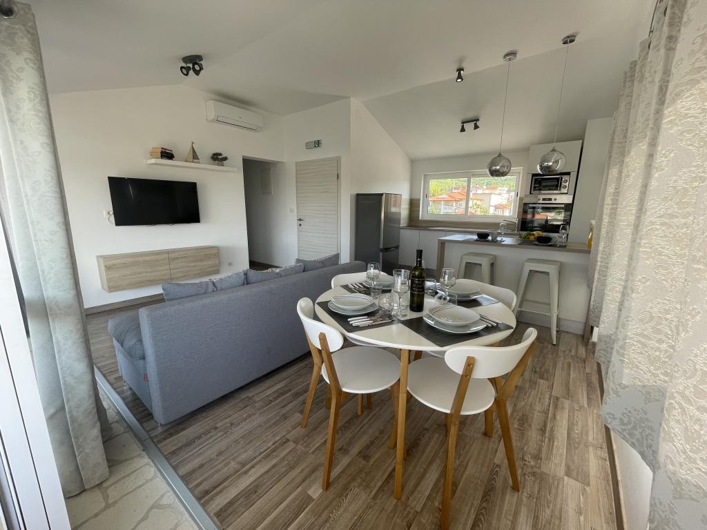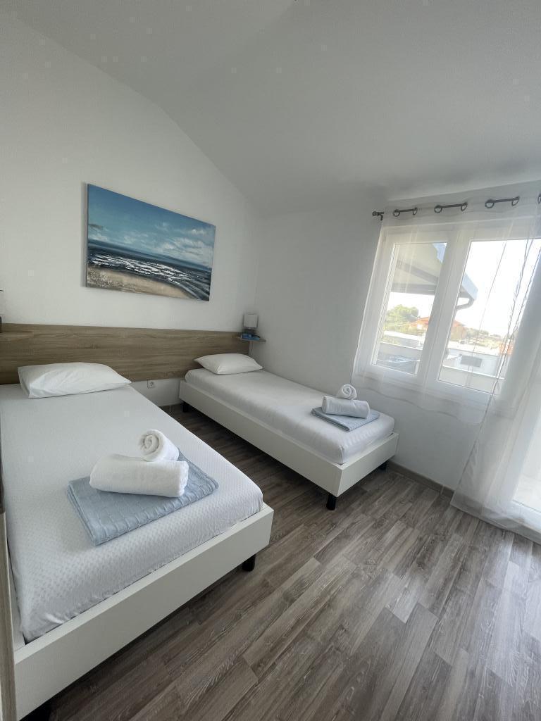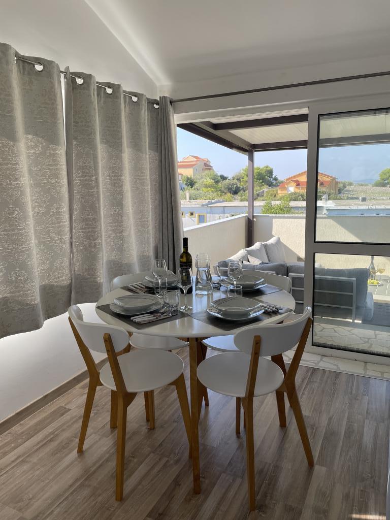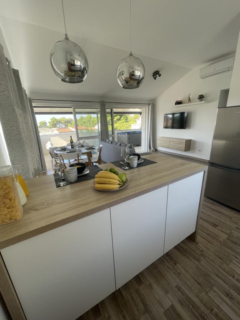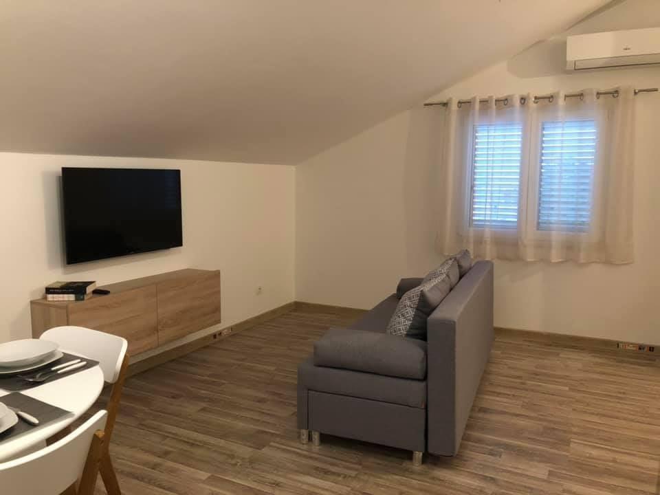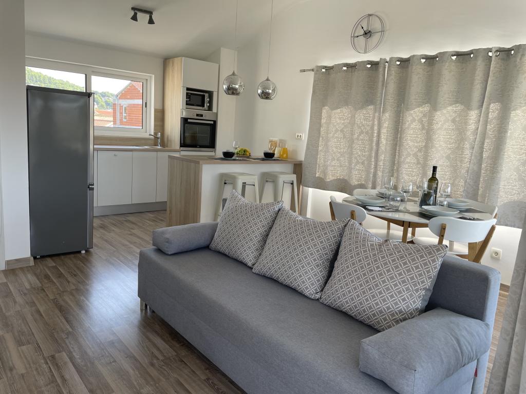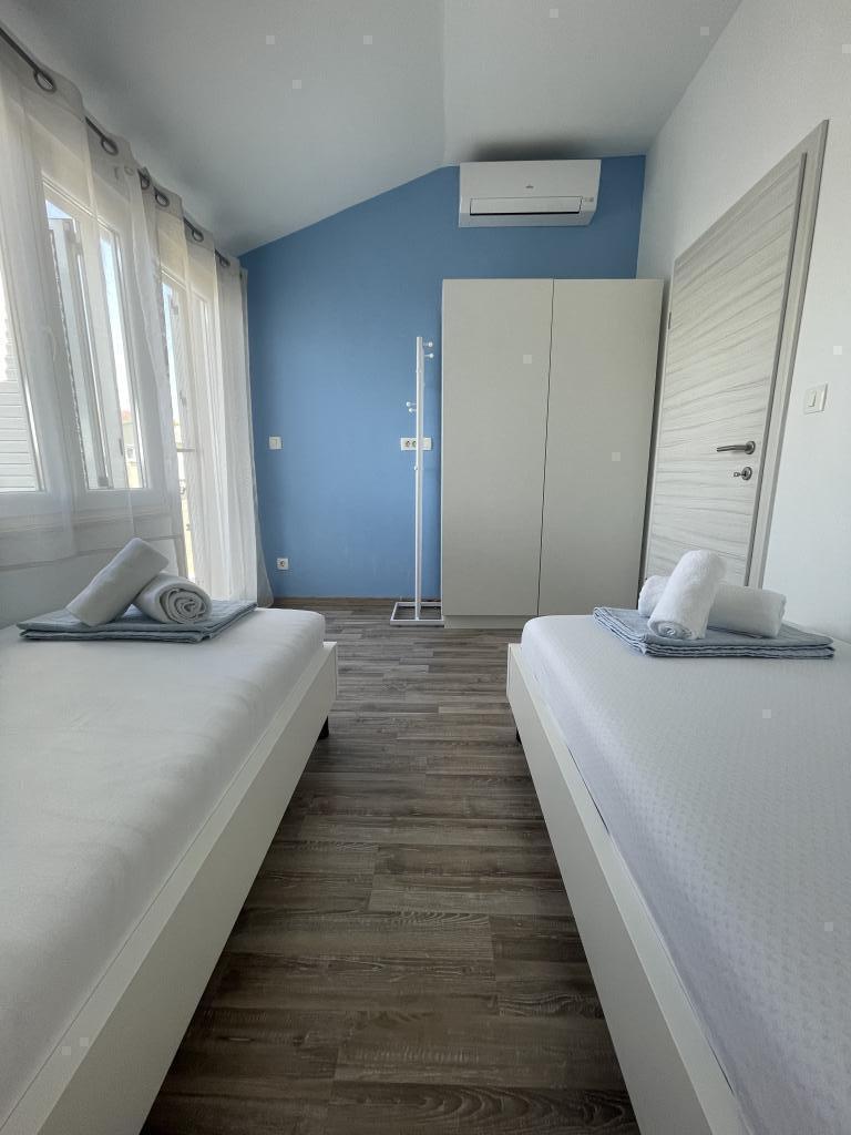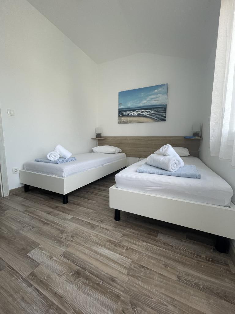 Vollständig und modern ausgestattete Apartments in ruhiger Lage, nur 300 m vom Strand mit vielen Annehmlichkeiten entfernt. Die Apartments befinden sich im zweiten Stock eines Einfamilienhauses. Im umzäunten Garten lädt ein überdachter Bereich mit Sommerküche und Grill zum Verweilen ein. Private Parkplätze stehen vor dem Haus zur Verfügung. Eine Bushaltestelle ist 50 m und das nächste Geschäft 200 m vom Haus entfernt. Das Stadtzentrum erreichen Sie nach 800 m über die Straße oder die Strandpromenade. Wir lieben Tiere, erlauben aber keine Haustiere.