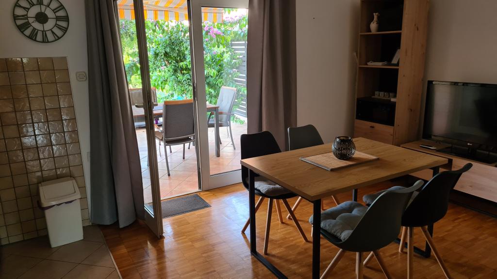 Wir hatten das große Vergnügen, wunderschöne 13 Tage in der Wohnung 2 + 2 zu verbringen. Fantastisch, sehr schön und zuvorkommende Gastgeber, sehr saubere (auf einer Skala von 10 gebe ich 20) und geschmackvoll eingerichtete Wohnung. Das Auto steht dank des überdachten Parkplatzes im Schatten. Zu Fuß zum Strand (ca. 5 Minuten mit Hund), ein charmantes, ruhiges Städtchen, kristallklares Wasser im Meer. Das Wichtigste ist, dass es dank der geringen Anzahl an Mietwohnungen (3) ruhig und freundlich ist. In den Apartments finden Sie alles, was Sie brauchen: Handtücher, Haartrockner, Bügeleisen, Mikrowelle, Toaster, Wäschetrockner, Waschmaschine und sogar einen Erste-Hilfe-Kasten. Wir begrüßen Mera und Dragan herzlich und empfehlen von ganzem Herzen, in Ihren Apartments zu bleiben. Iwona und Jan und unser Hund Psotek POLSKA