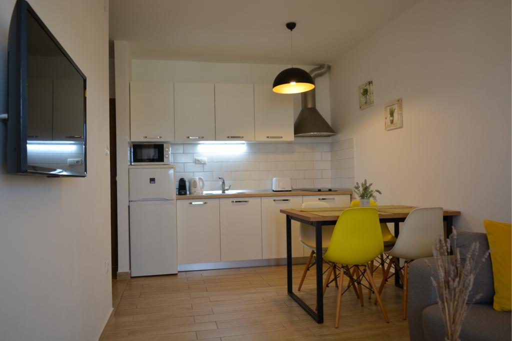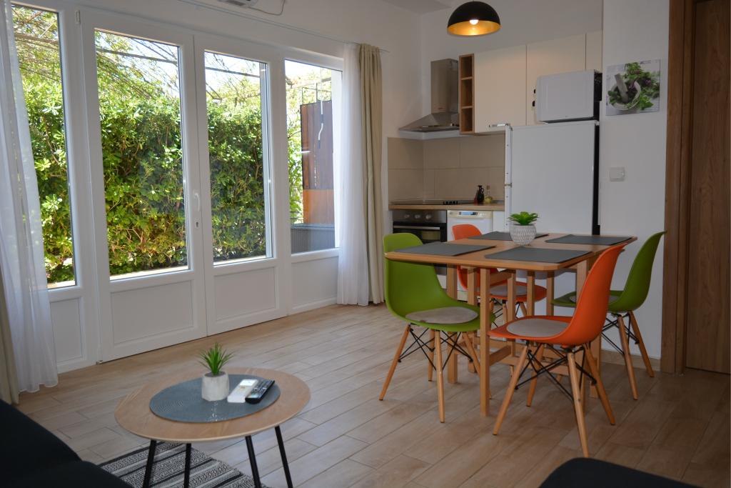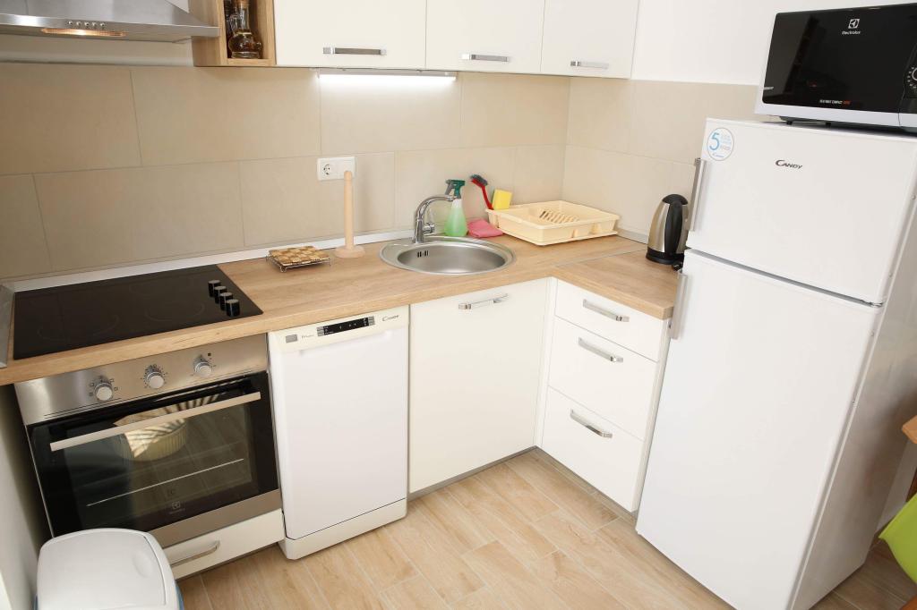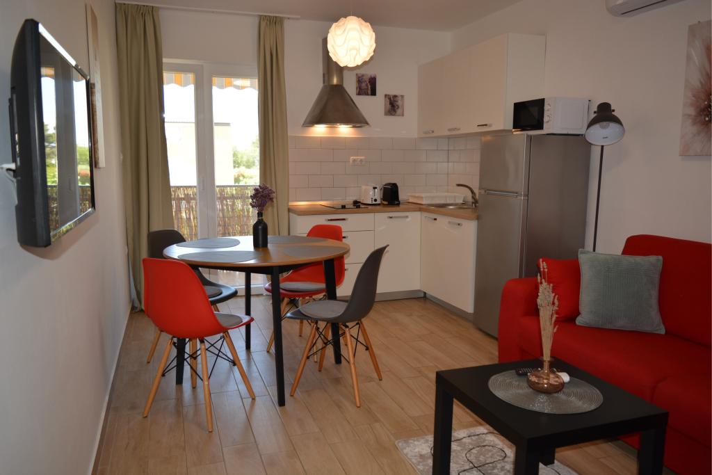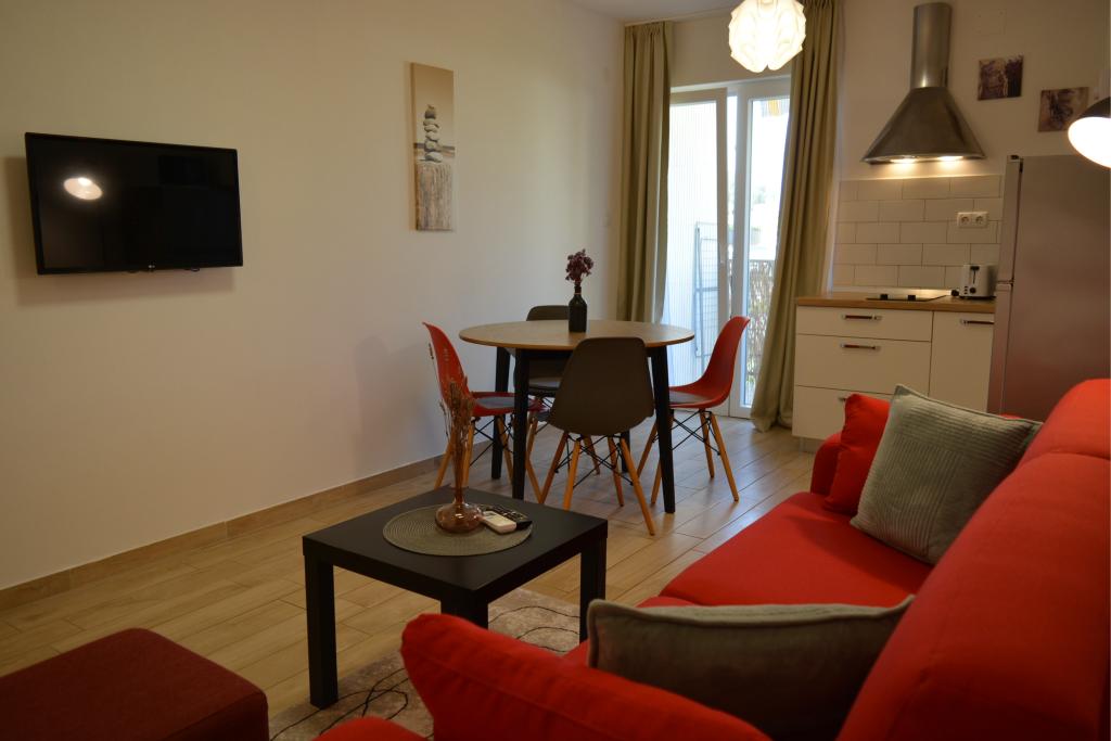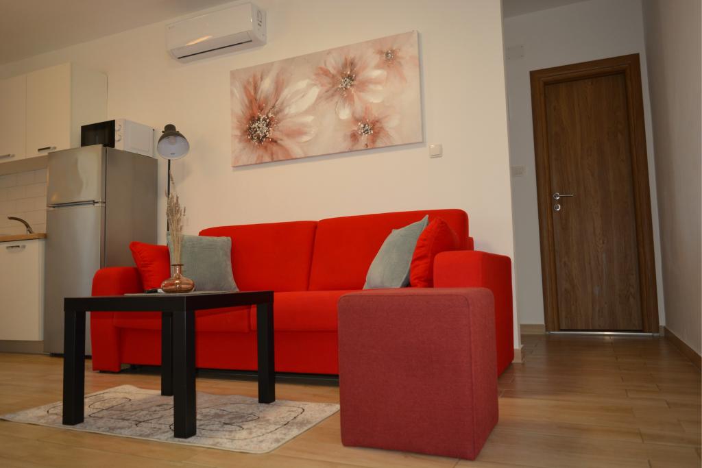 4 komplett neu renovierte Wohnungen zur Miete in Tribunj, 5 km von Vodice und 12 km von Šibenik entfernt. Die Apartments befinden sich in attraktiver Lage, nur 150 m vom Hauptstrand der Stadt entfernt. In unmittelbarer Nähe der Wohnung befinden sich Restaurants, Cafés, Geschäfte und eine Apotheke. 3 Appartements (2+2) bestehen aus einem Schlafzimmer mit großem Doppelbett, einer Küche, einem Wohnzimmer mit ausziehbarem Sofa (Qualitätssofa mit Matratze), einem Badezimmer und einem Balkon mit Meerblick. Das Studio-Apartment ist für zwei Personen gedacht. Es verfügt über eine Küche, ein Doppelbett, ein Badezimmer und einen Balkon mit Meerblick. Alle Apartments sind klimatisiert, verfügen über einen Haartrockner, Smart-TV und kostenfreies WLAN. Gesicherter Parkplatz vor der Wohnung.