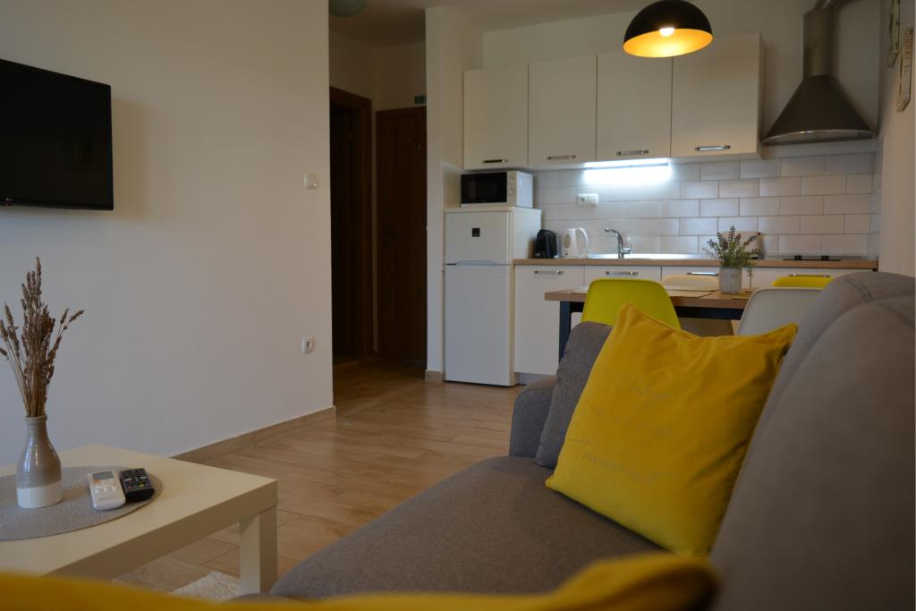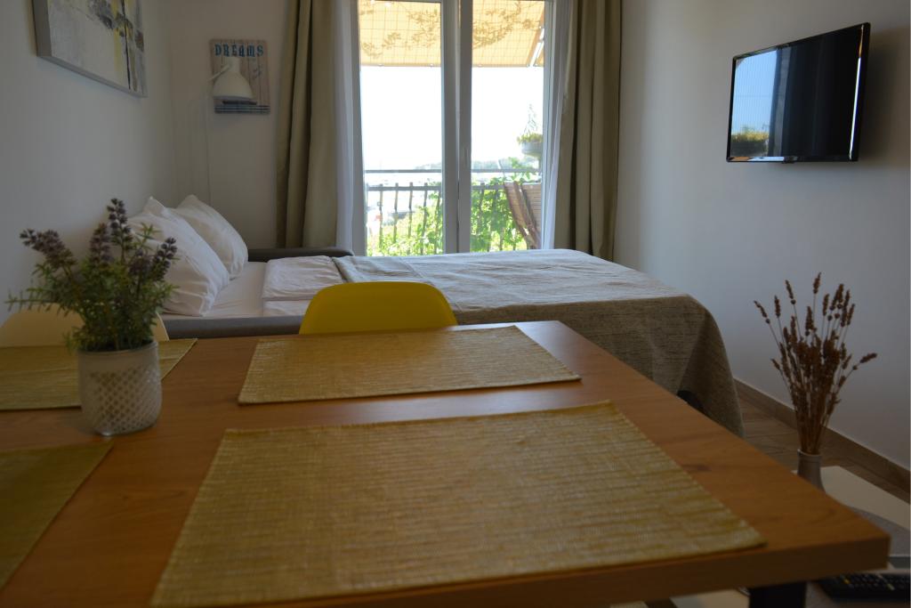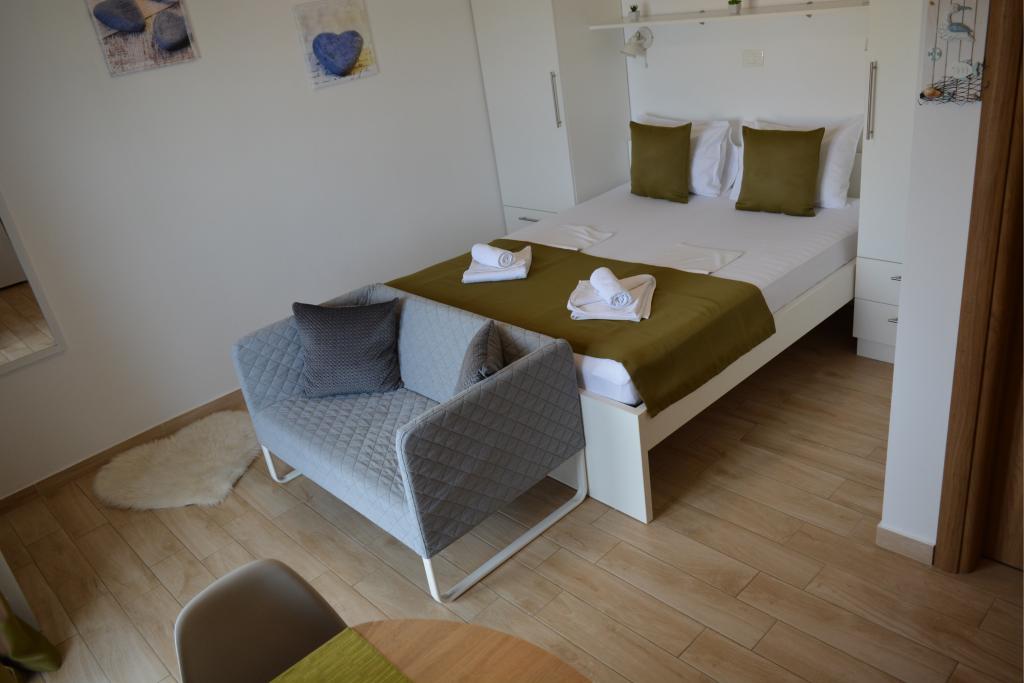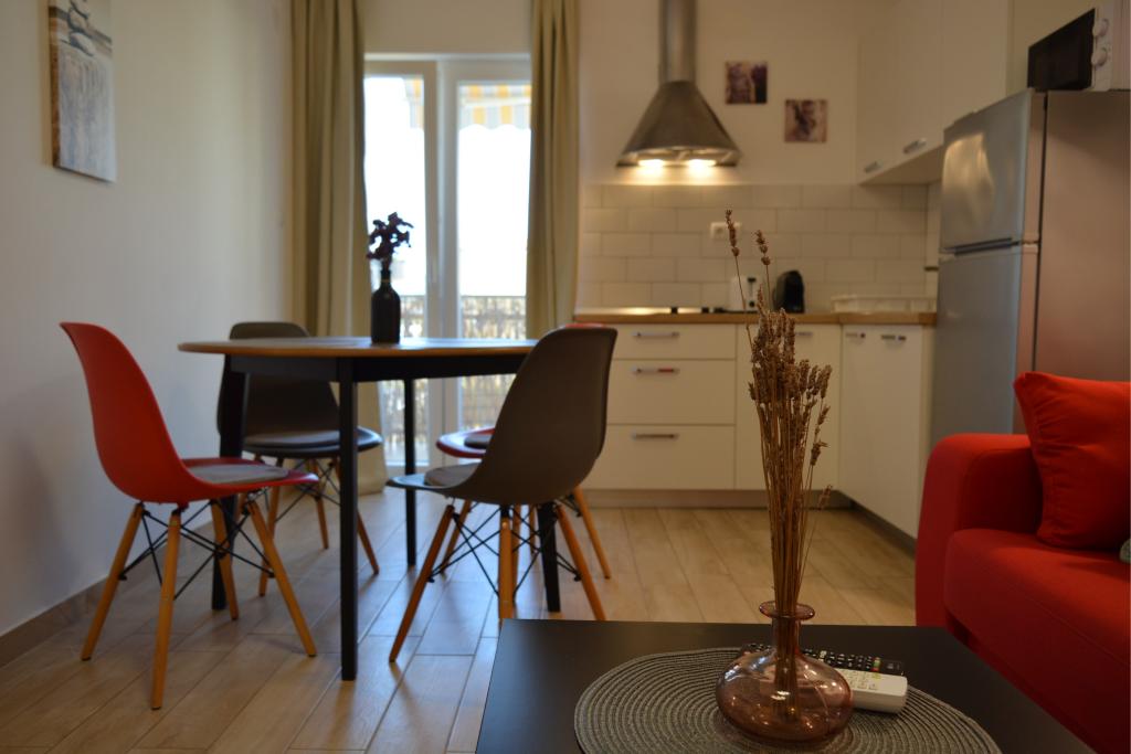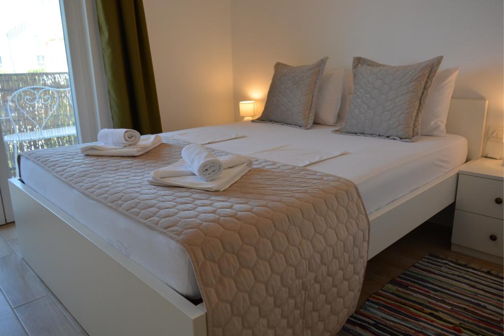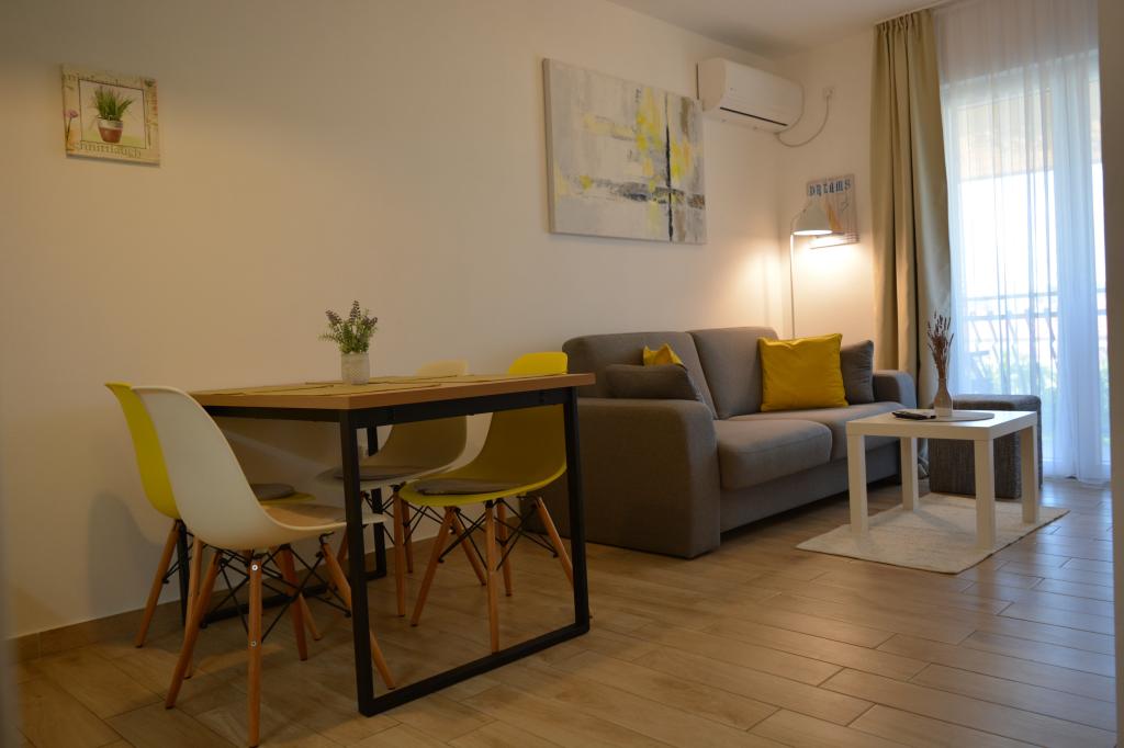 4 komplett neu renovierte Wohnungen zur Miete in Tribunj, 5 km von Vodice und 12 km von Šibenik entfernt. Die Apartments befinden sich in attraktiver Lage, nur 150 m vom Hauptstrand der Stadt entfernt. In unmittelbarer Nähe der Wohnung befinden sich Restaurants, Cafés, Geschäfte und eine Apotheke. 3 Appartements (2+2) bestehen aus einem Schlafzimmer mit großem Doppelbett, einer Küche, einem Wohnzimmer mit ausziehbarem Sofa (Qualitätssofa mit Matratze), einem Badezimmer und einem Balkon mit Meerblick. Das Studio-Apartment ist für zwei Personen gedacht. Es verfügt über eine Küche, ein Doppelbett, ein Badezimmer und einen Balkon mit Meerblick. Alle Apartments sind klimatisiert, verfügen über einen Haartrockner, Smart-TV und kostenfreies WLAN. Gesicherter Parkplatz vor der Wohnung.