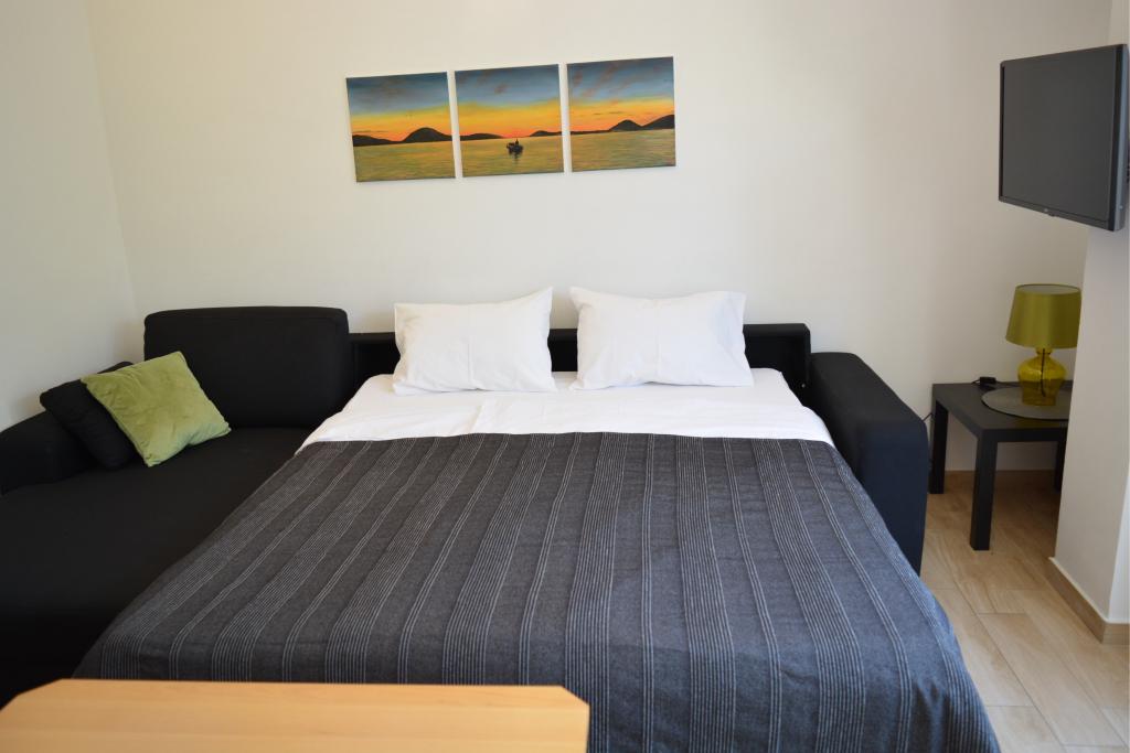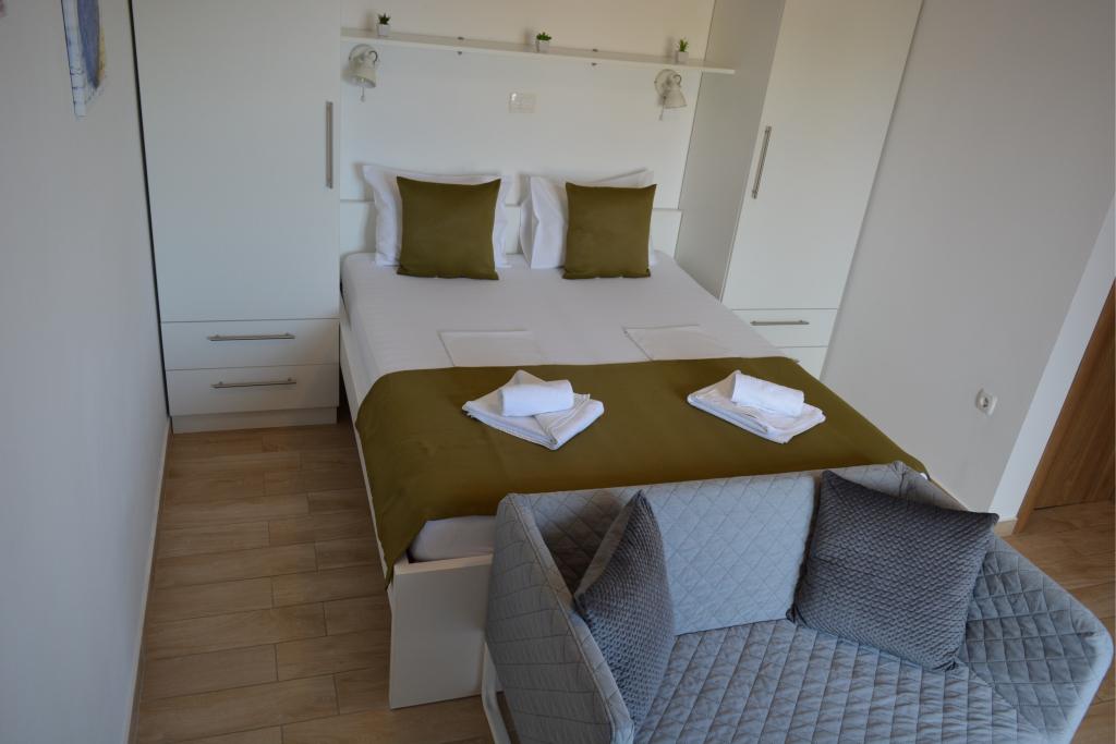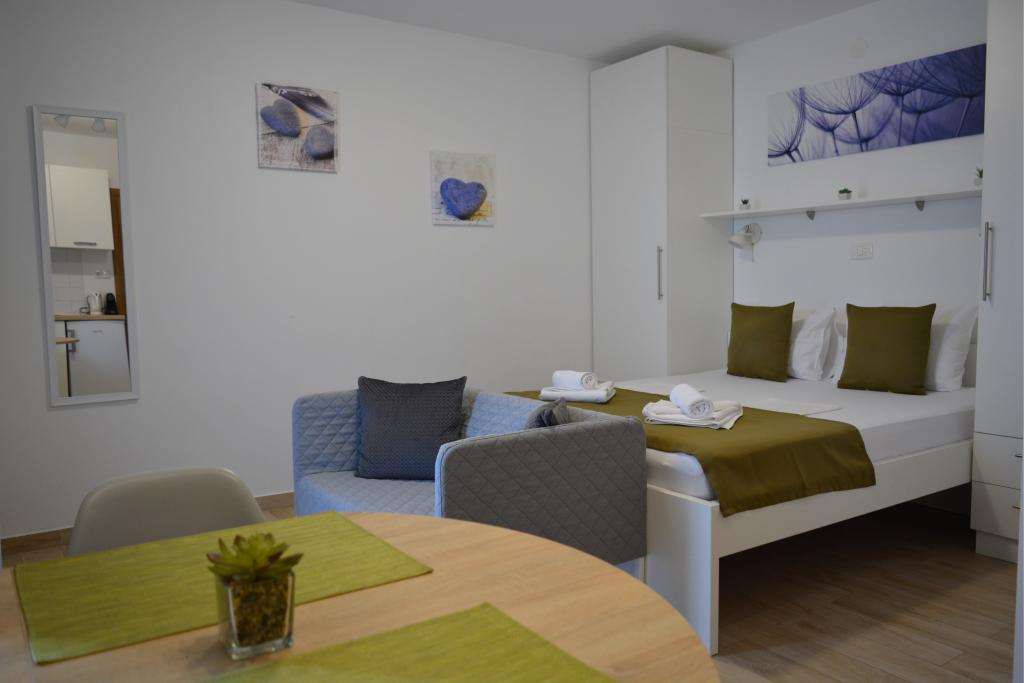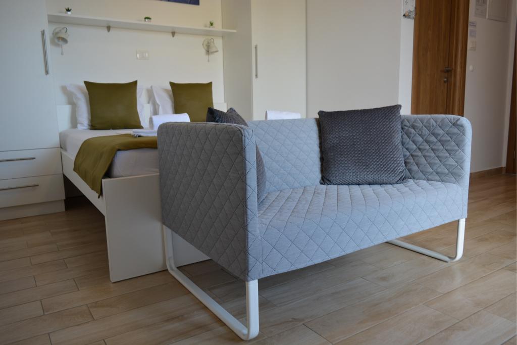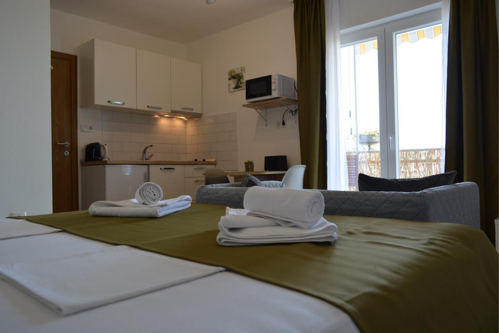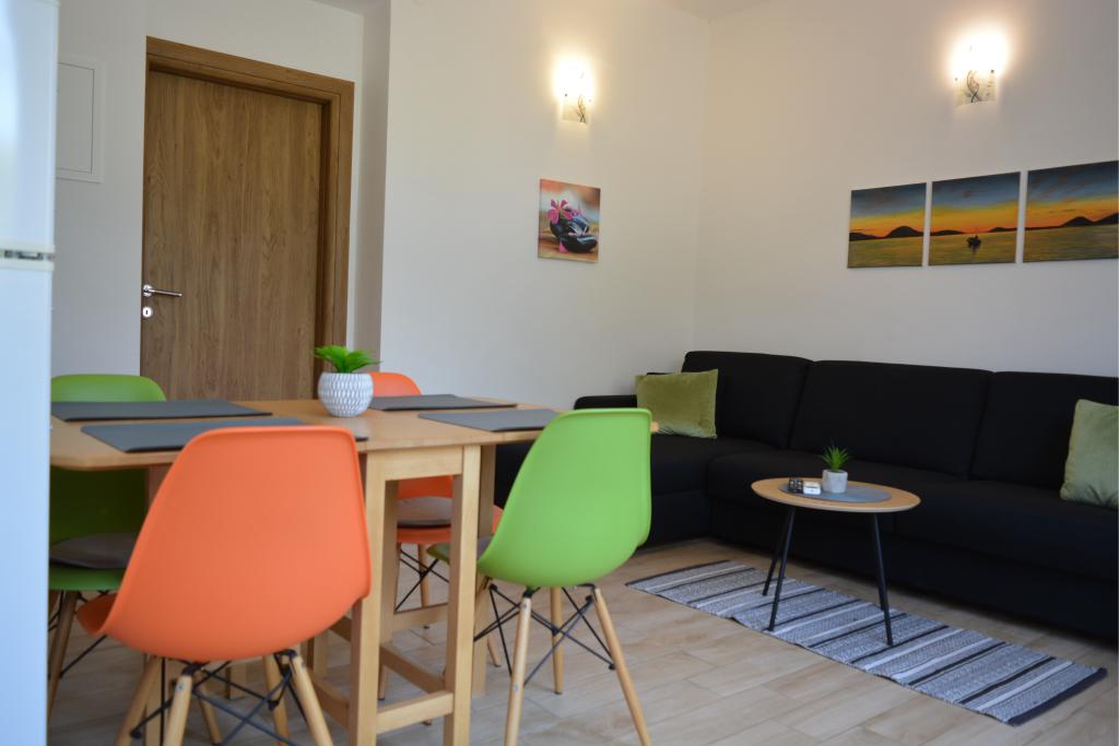 4 komplett neu renovierte Wohnungen zur Miete in Tribunj, 5 km von Vodice und 12 km von Šibenik entfernt. Die Apartments befinden sich in attraktiver Lage, nur 150 m vom Hauptstrand der Stadt entfernt. In unmittelbarer Nähe der Wohnung befinden sich Restaurants, Cafés, Geschäfte und eine Apotheke. 3 Appartements (2+2) bestehen aus einem Schlafzimmer mit großem Doppelbett, einer Küche, einem Wohnzimmer mit ausziehbarem Sofa (Qualitätssofa mit Matratze), einem Badezimmer und einem Balkon mit Meerblick. Das Studio-Apartment ist für zwei Personen gedacht. Es verfügt über eine Küche, ein Doppelbett, ein Badezimmer und einen Balkon mit Meerblick. Alle Apartments sind klimatisiert, verfügen über einen Haartrockner, Smart-TV und kostenfreies WLAN. Gesicherter Parkplatz vor der Wohnung.